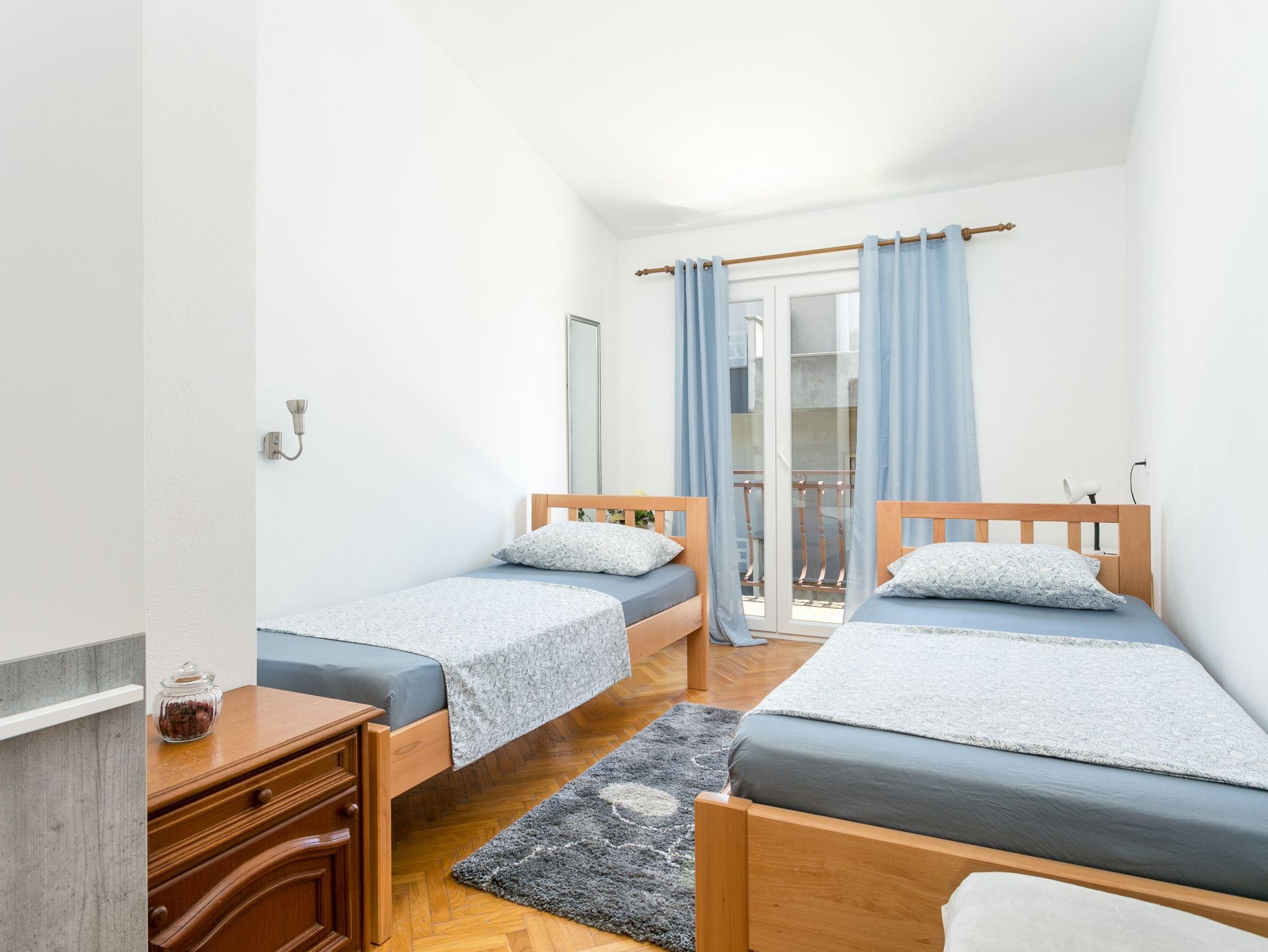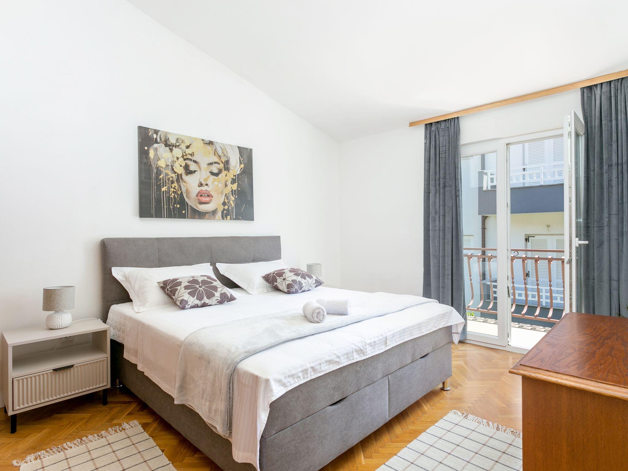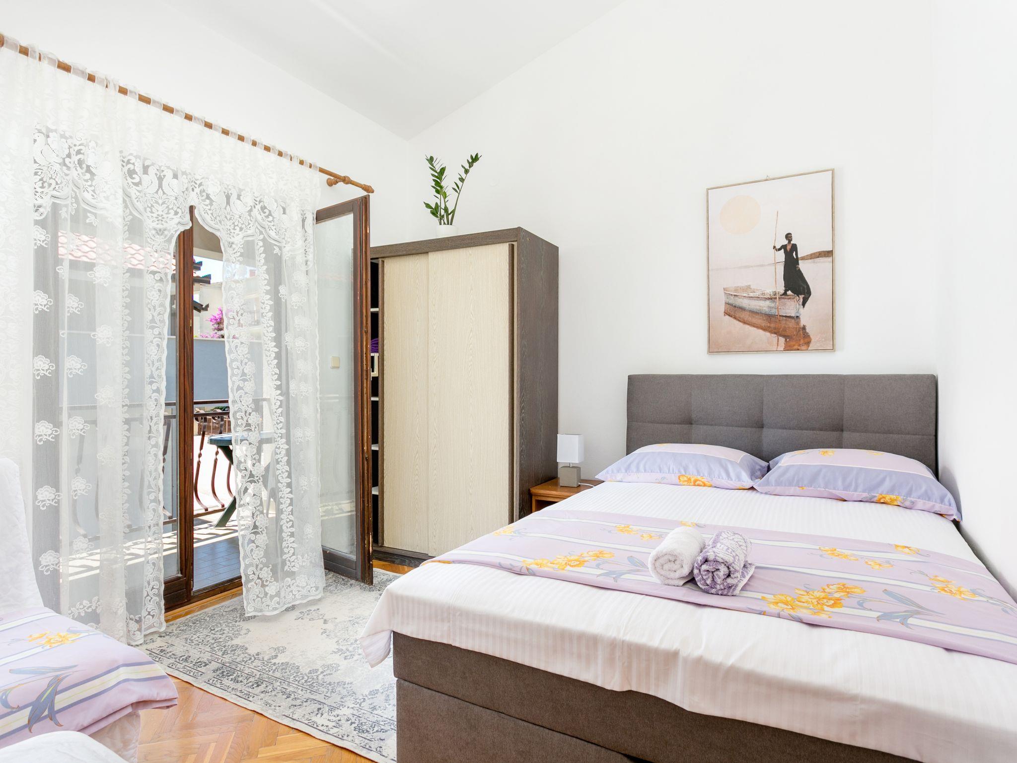 Ferienwohnung bietet Platz für 8 Gäste. Die Betten sind in Schlafzimmern, die es 3 gibt, und in Wohnzimmer, innerhalb einer Gesamtfläche von 77m2, angeordnet. Die Gäste haben einen eigenen Balkon zur Verfügung, auf der sie in warmen Sommernächten genießen können. Räume der gebuchten Unterkunftseinheit werden nicht in eine Ganze verbunden. IM PREIS INBEGRIFFEN: Kurtaxe, Endreinigung, Klimatisierung, Parkplatz, Internet, Bügeleisen, Bügelbrett, Föhn. VERBINDLICHE ZUSÄTZLICHE KOSTEN: Aufzahlung für Kurzaufenthalte (prozentualer Zuschlag pro Nächtigungsanzahl: 30% - 1, 20% - 2, 10% - 3). Die Verfügbarkeit zusätzlicher Dienstleistungen in Ihrem reservierten Termin und die Preise derselben (falls nicht aufgeführt) müssen im Voraus überprüft werden. Zusätzliche Dienstleistungen die in der Zahlungsaufforderung nicht aufgeführt sind werden direkt beim Vermieter bezahlt, angenommen der Gast nutzt auch diese.