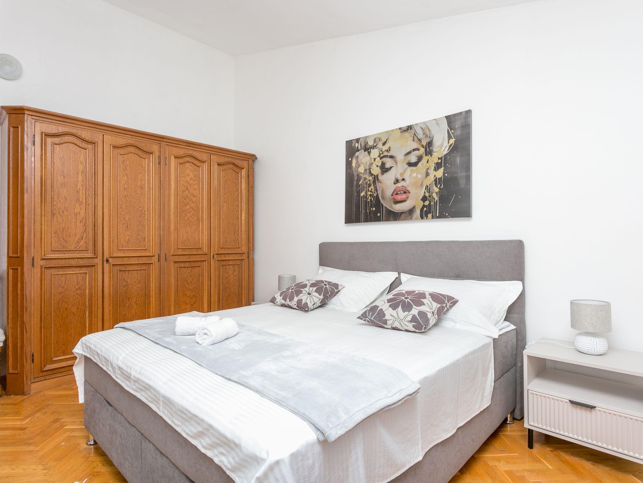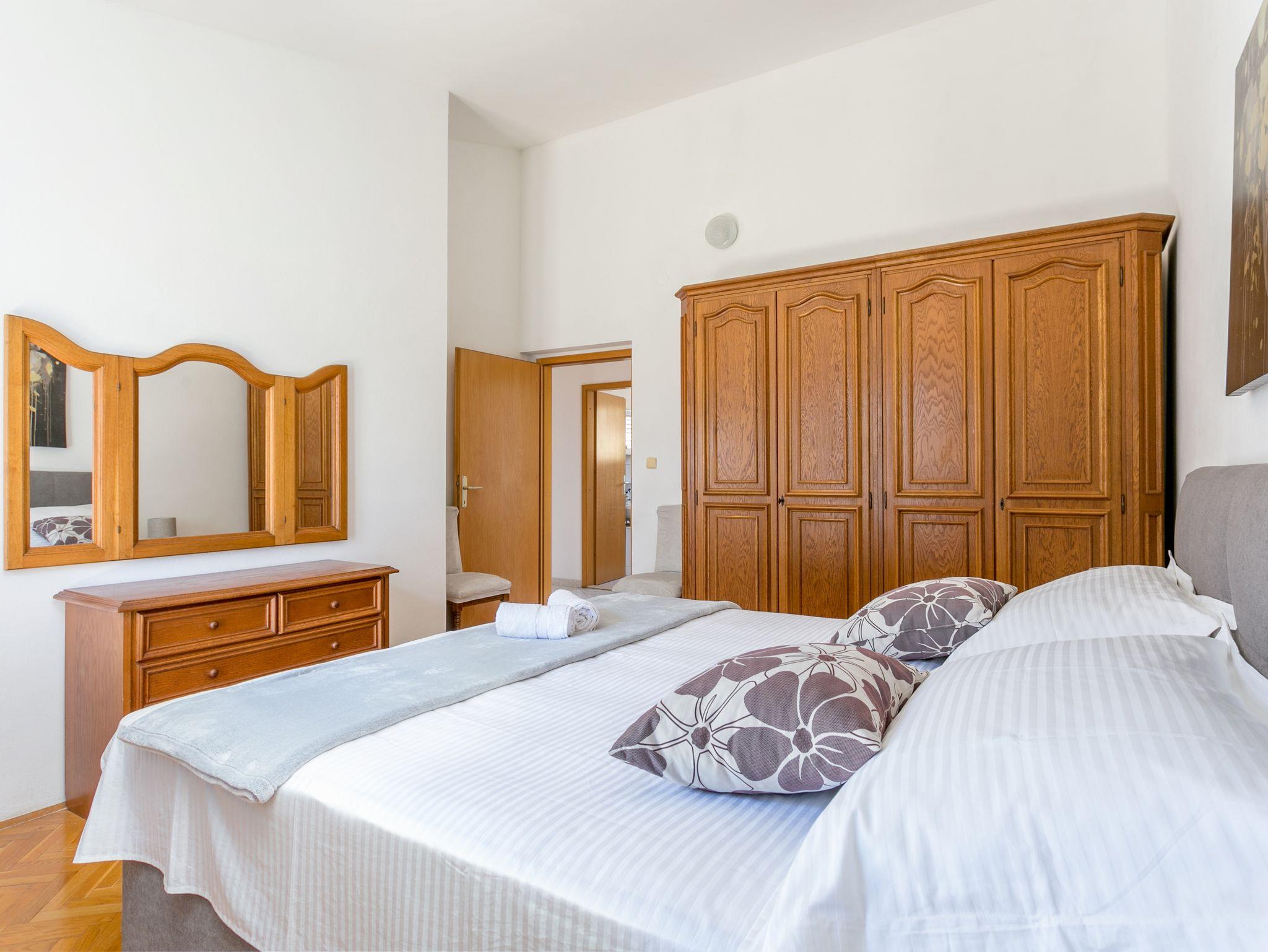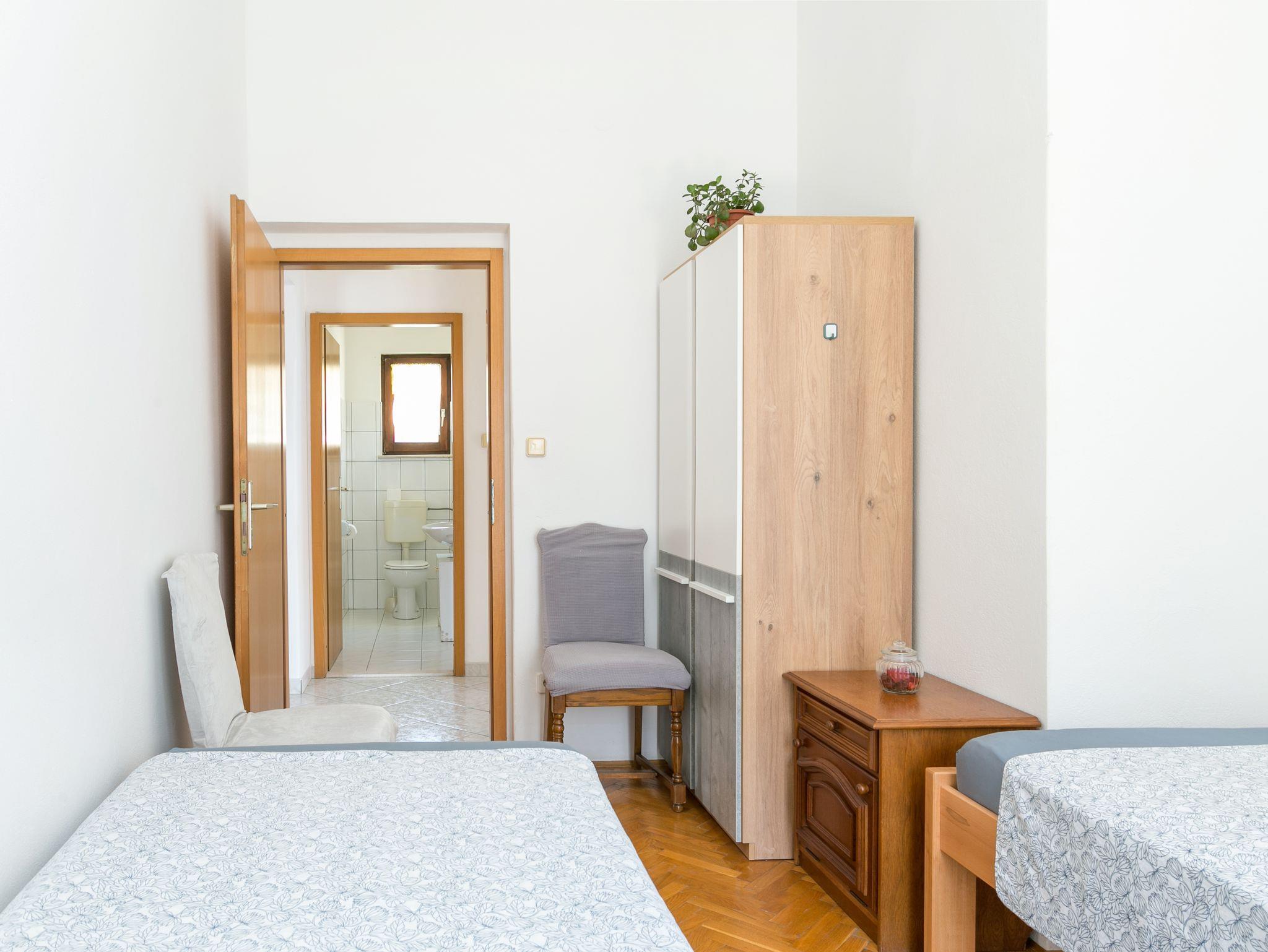 Ferienwohnung bietet Platz für 8 Gäste. Die Betten sind in Schlafzimmern, die es 3 gibt, und in Wohnzimmer, innerhalb einer Gesamtfläche von 77m2, angeordnet. Die Gäste haben einen eigenen Balkon zur Verfügung, auf der sie in warmen Sommernächten genießen können. Räume der gebuchten Unterkunftseinheit werden nicht in eine Ganze verbunden. IM PREIS INBEGRIFFEN: Kurtaxe, Endreinigung, Klimatisierung, Parkplatz, Internet, Bügeleisen, Bügelbrett, Föhn. VERBINDLICHE ZUSÄTZLICHE KOSTEN: Aufzahlung für Kurzaufenthalte (prozentualer Zuschlag pro Nächtigungsanzahl: 30% - 1, 20% - 2, 10% - 3). Die Verfügbarkeit zusätzlicher Dienstleistungen in Ihrem reservierten Termin und die Preise derselben (falls nicht aufgeführt) müssen im Voraus überprüft werden. Zusätzliche Dienstleistungen die in der Zahlungsaufforderung nicht aufgeführt sind werden direkt beim Vermieter bezahlt, angenommen der Gast nutzt auch diese.