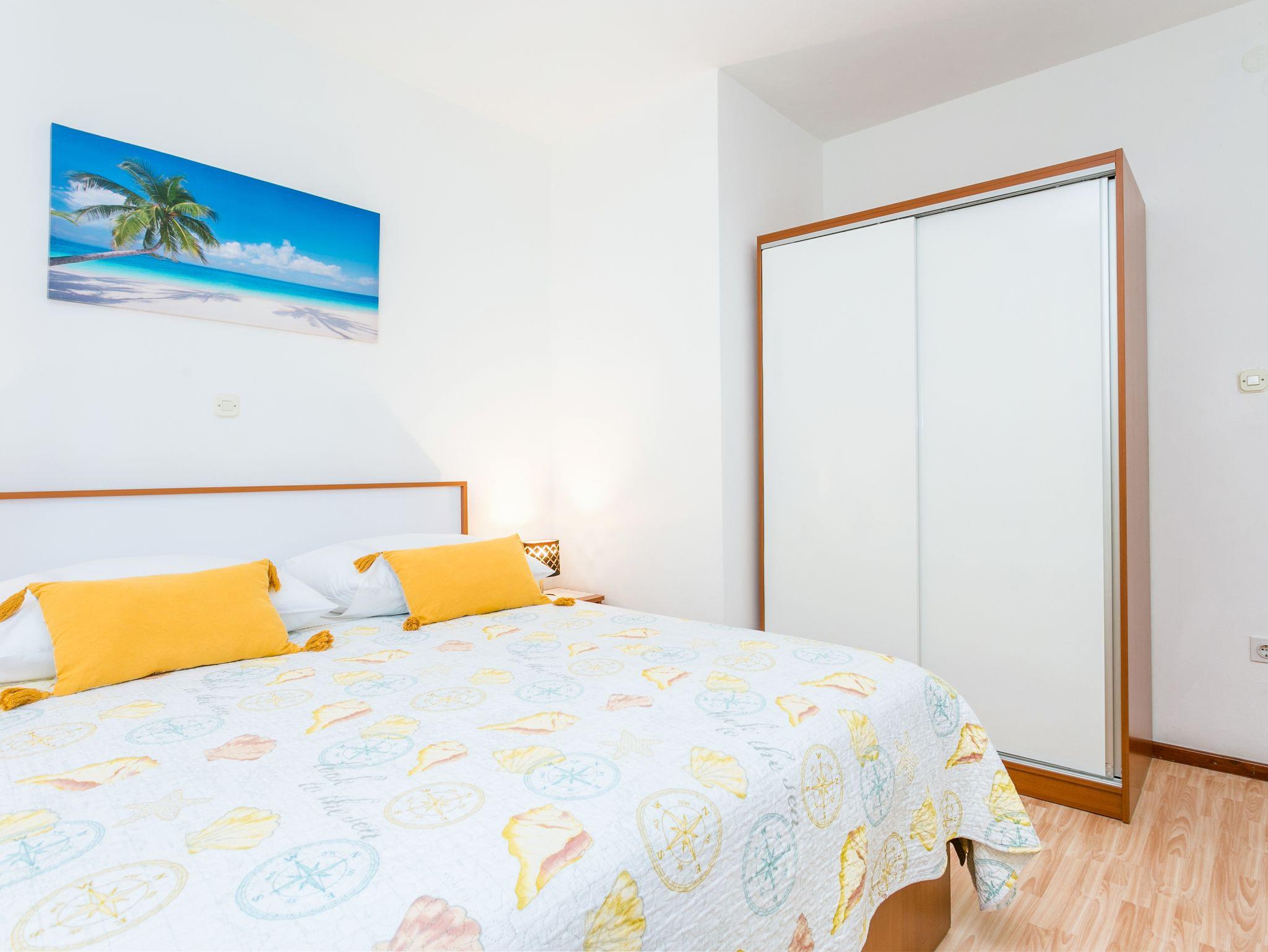 Ferienwohnung bietet Platz für 3 Gäste. Die Betten sind in Schlafzimmern, die es 1 gibt, innerhalb einer Gesamtfläche von 36m2, angeordnet. Die Gäste haben eine eigene Terrasse zur Verfügung, auf der sie in warmen Sommernächten genießen können. Das Apartment bietet Meerblick. Es ist erlaubt, Speisen auf dem Gemeinschafts-Grill vorzubereiten. IM PREIS INBEGRIFFEN: Kurtaxe, Endreinigung, Klimatisierung, Parkplatz, Internet, Kinderbett, Bügelbrett, Föhn. VERBINDLICHE ZUSÄTZLICHE KOSTEN: Aufzahlung für Kurzaufenthalte (prozentualer Zuschlag pro Nächtigungsanzahl: 30% - 1, 20% - 2, 10% - 3). UNVERBINDLICHE ZUSÄTZLICHE KOSTEN: Frühstück (5,00 €, 50% Nachlass für Kinder zwischen 4 und 12 Jahren, Kinder bis 4 Jahre sind frei.). Die Verfügbarkeit zusätzlicher Dienstleistungen in Ihrem reservierten Termin und die Preise derselben (falls nicht aufgeführt) müssen im Voraus überprüft werden. Zusätzliche Dienstleistungen die in der Zahlungsaufforderung nicht aufgeführt sind werden direkt beim Vermieter bezahlt, angenommen der Gast nutzt auch diese.