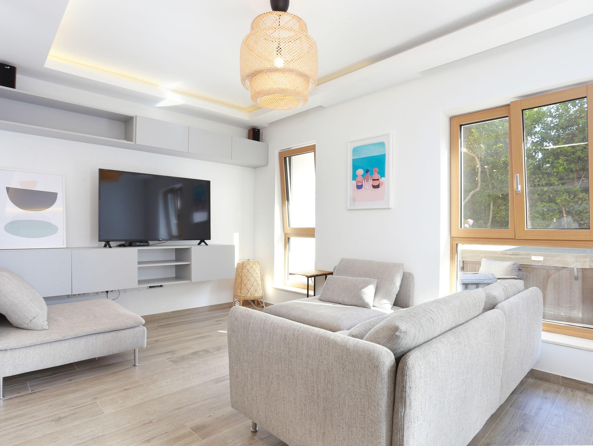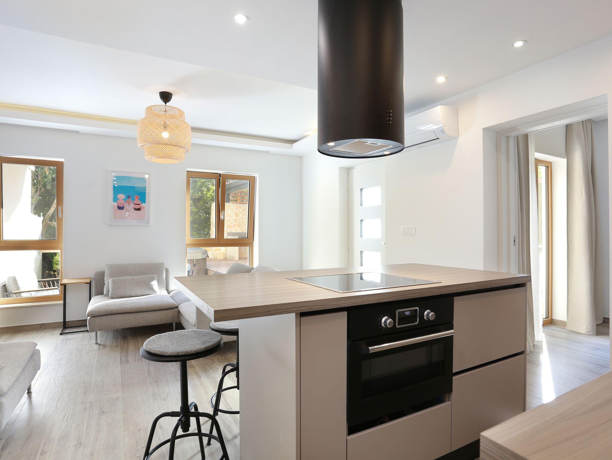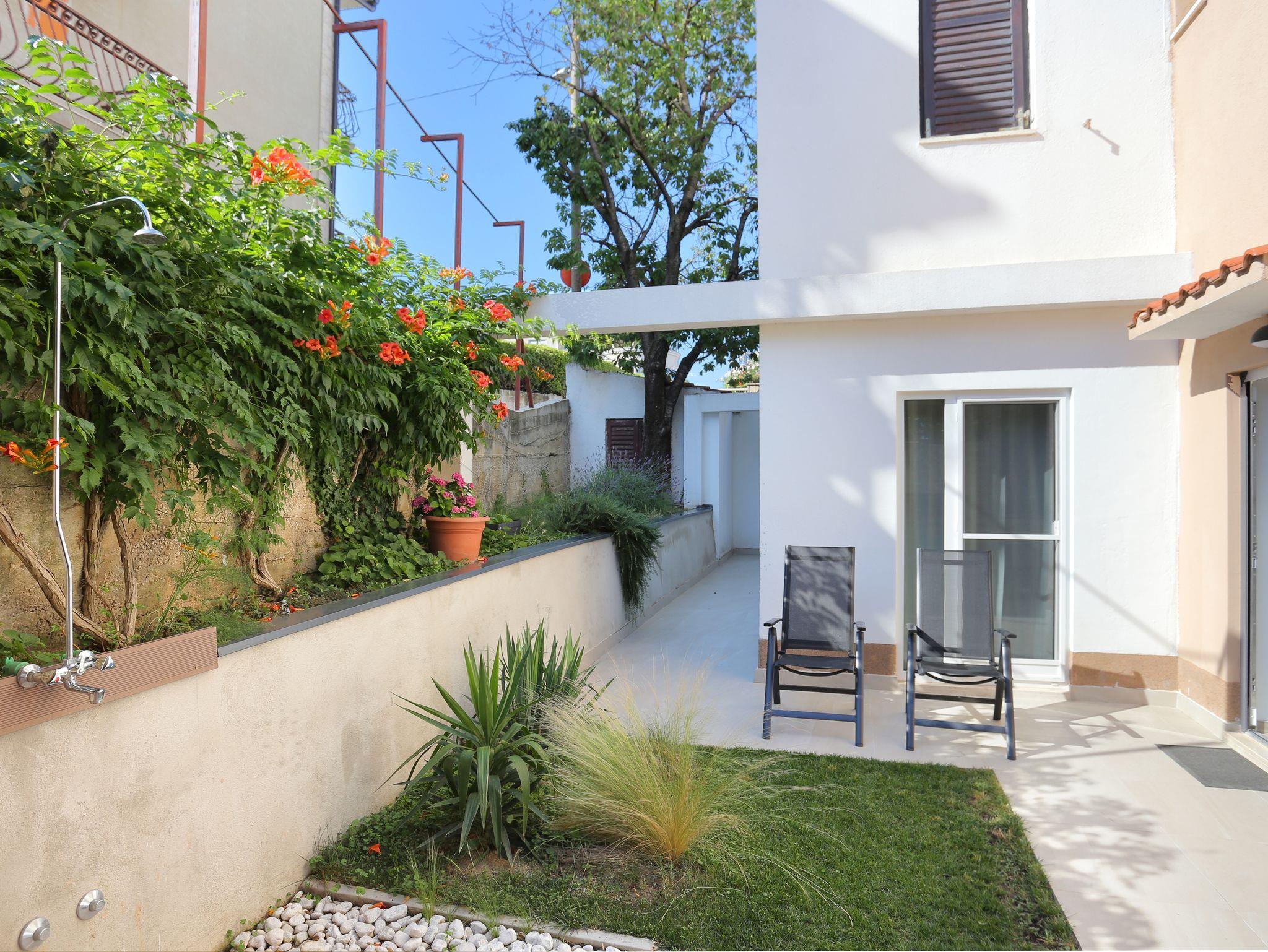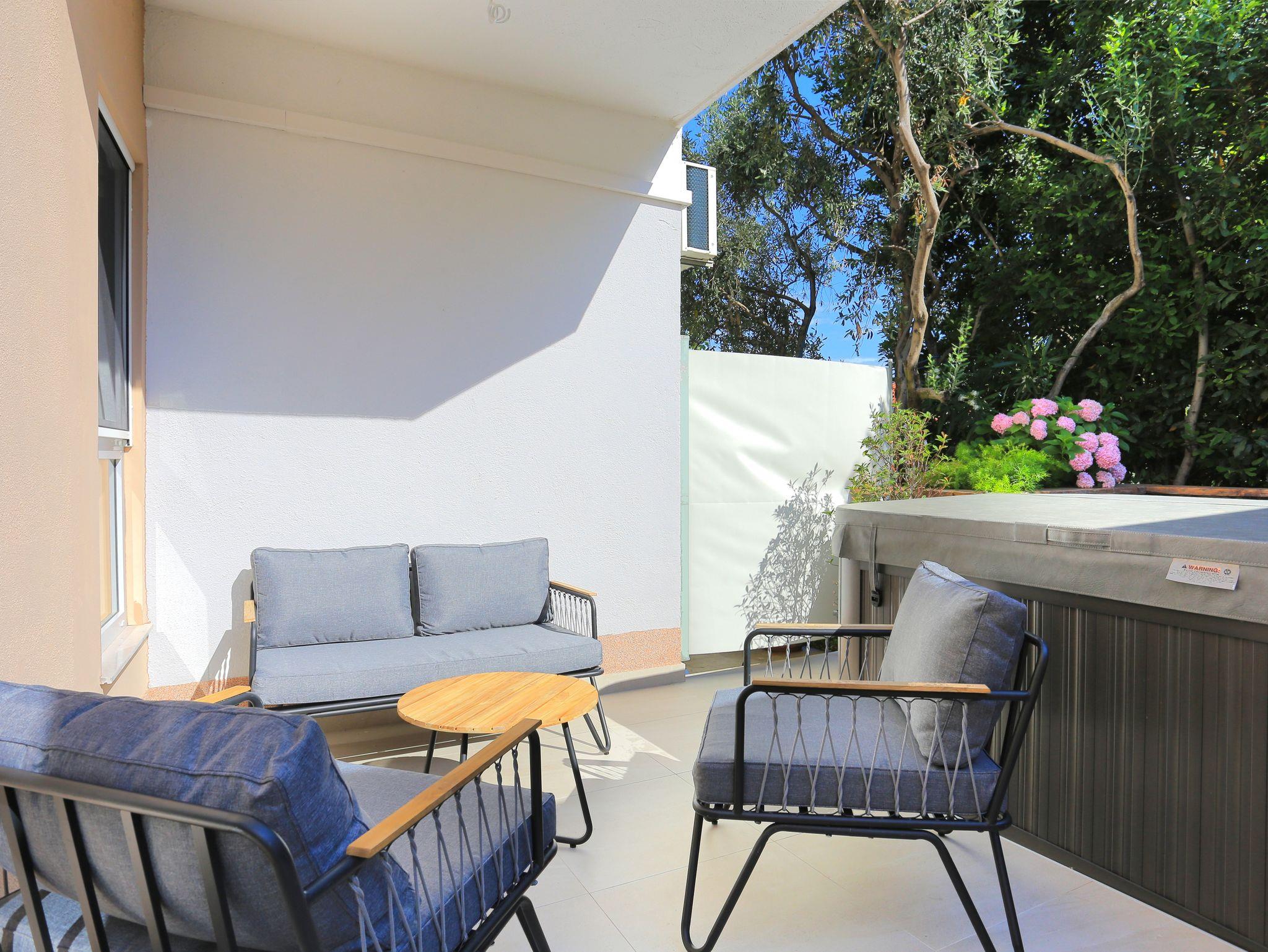 Ferienwohnung bietet Platz für 5 Gäste. Die Betten sind in Schlafzimmern, die es 2 gibt, und in Wohnzimmer, innerhalb einer Gesamtfläche von 51m2, angeordnet. Die Gäste haben eine eigene Terrasse zur Verfügung, auf der sie in warmen Sommernächten genießen können. Für vollen Genuss und Entspannung gibt es einen privaten Grill für Gäste dieser Unterkunft. IM PREIS INBEGRIFFEN: Kurtaxe, Endreinigung, Klimatisierung, Parkplatz, Internet. VERBINDLICHE ZUSÄTZLICHE KOSTEN: Aufzahlung für Kurzaufenthalte (prozentualer Zuschlag pro Nächtigungsanzahl: 30% - 1, 20% - 2, 10% - 3). UNVERBINDLICHE ZUSÄTZLICHE KOSTEN: Wäschewaschen (10,00 € Waschen). Die Verfügbarkeit zusätzlicher Dienstleistungen in Ihrem reservierten Termin und die Preise derselben (falls nicht aufgeführt) müssen im Voraus überprüft werden. Zusätzliche Dienstleistungen die in der Zahlungsaufforderung nicht aufgeführt sind werden direkt beim Vermieter bezahlt, angenommen der Gast nutzt auch diese. Ermäßigung auf den Grundpreis: Gratistag 14=13 (bei einem Aufenthalt von 14 Tagen oder mehr erhalten Sie einen Gratistag für den Aufenthalt bis 31.12.26).