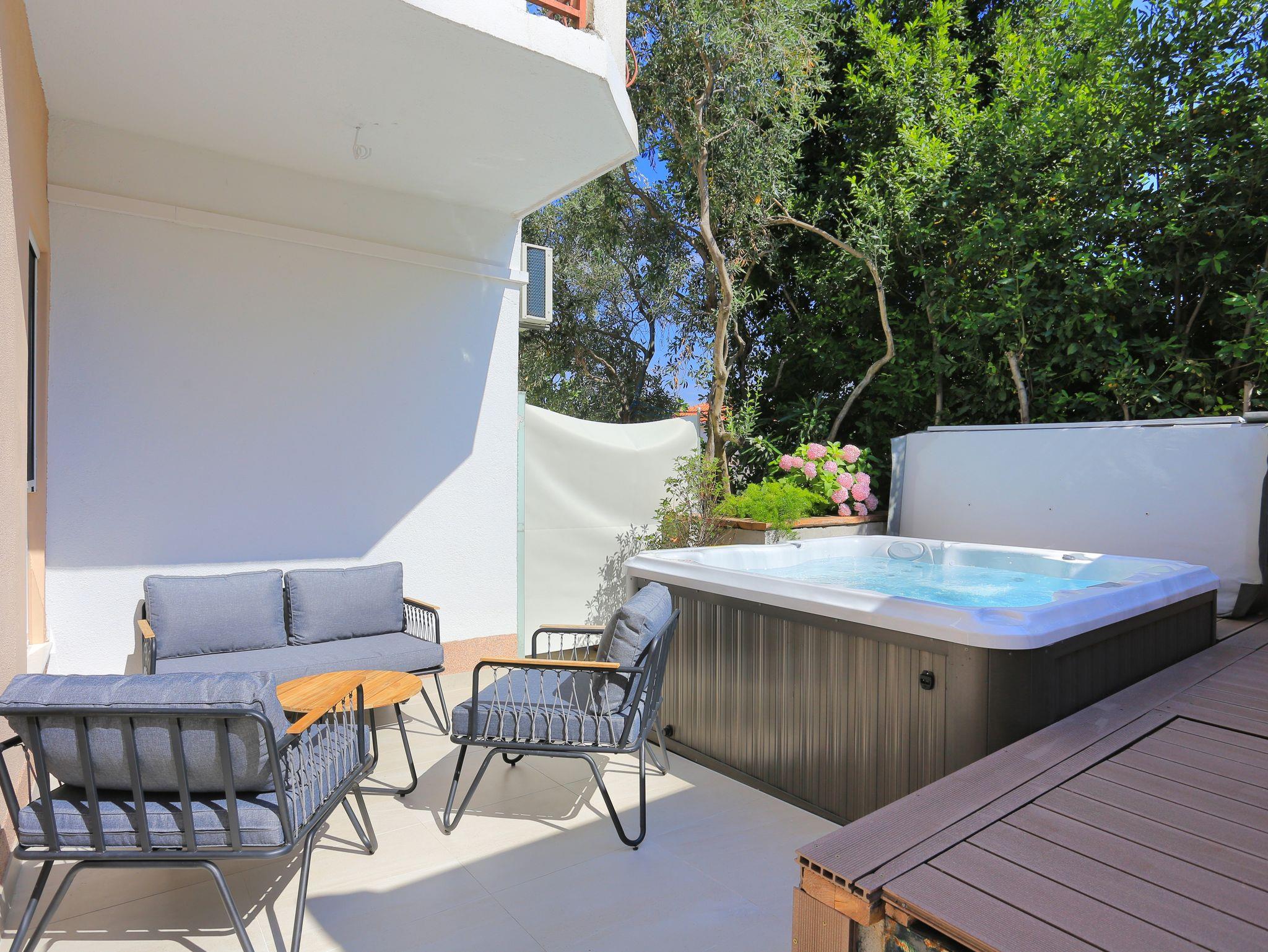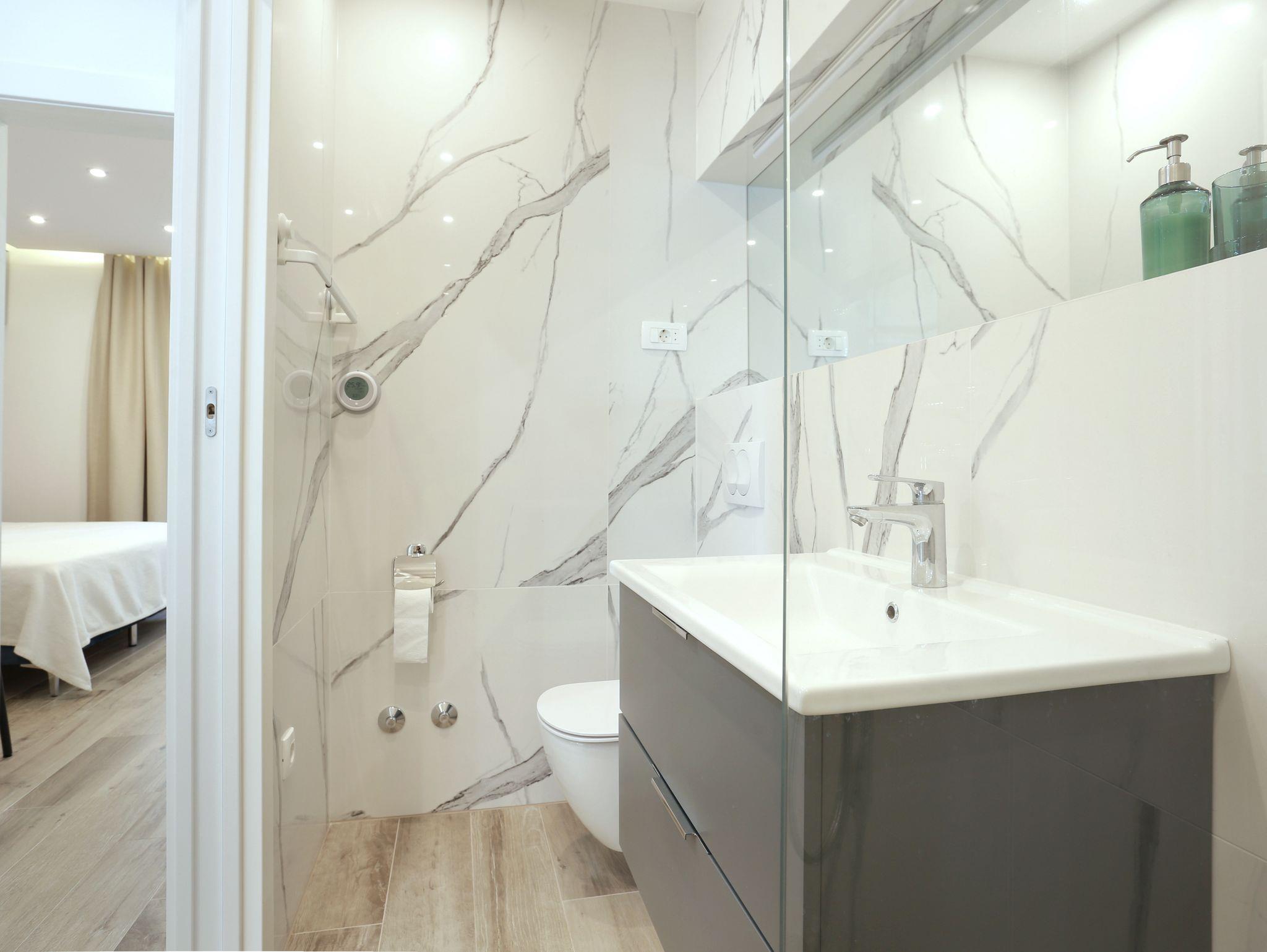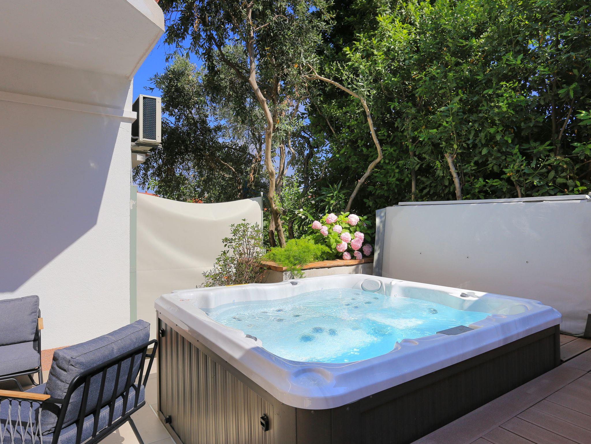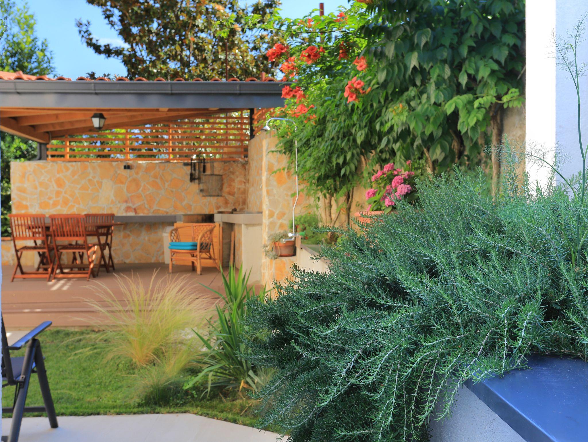 Ferienwohnung bietet Platz für 5 Gäste. Die Betten sind in Schlafzimmern, die es 2 gibt, und in Wohnzimmer, innerhalb einer Gesamtfläche von 51m2, angeordnet. Die Gäste haben eine eigene Terrasse zur Verfügung, auf der sie in warmen Sommernächten genießen können. Für vollen Genuss und Entspannung gibt es einen privaten Grill für Gäste dieser Unterkunft. IM PREIS INBEGRIFFEN: Kurtaxe, Endreinigung, Klimatisierung, Parkplatz, Internet. VERBINDLICHE ZUSÄTZLICHE KOSTEN: Aufzahlung für Kurzaufenthalte (prozentualer Zuschlag pro Nächtigungsanzahl: 30% - 1, 20% - 2, 10% - 3). UNVERBINDLICHE ZUSÄTZLICHE KOSTEN: Wäschewaschen (10,00 € Waschen). Die Verfügbarkeit zusätzlicher Dienstleistungen in Ihrem reservierten Termin und die Preise derselben (falls nicht aufgeführt) müssen im Voraus überprüft werden. Zusätzliche Dienstleistungen die in der Zahlungsaufforderung nicht aufgeführt sind werden direkt beim Vermieter bezahlt, angenommen der Gast nutzt auch diese. Ermäßigung auf den Grundpreis: Gratistag 14=13 (bei einem Aufenthalt von 14 Tagen oder mehr erhalten Sie einen Gratistag für den Aufenthalt bis 31.12.26).