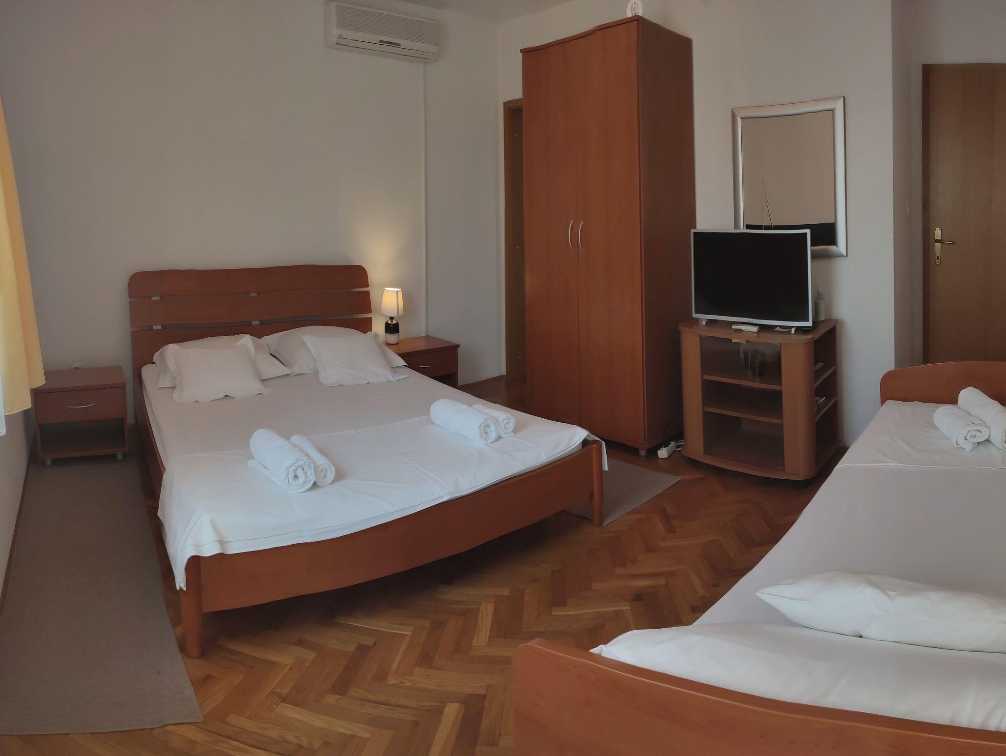 Ferienwohnung bietet Platz für 3 Gäste. Die Betten sind in Schlafzimmern, die es 1 gibt, innerhalb einer Gesamtfläche von 28m2, angeordnet. Die Gäste haben einen eigenen Balkon zur Verfügung, auf der sie in warmen Sommernächten genießen können. Es ist erlaubt, Speisen auf dem Gemeinschafts-Grill vorzubereiten. IM PREIS INBEGRIFFEN: Kurtaxe, Endreinigung, Klimatisierung, Parkplatz, Internet, Bügeleisen, Bügelbrett, Föhn. VERBINDLICHE ZUSÄTZLICHE KOSTEN: Aufzahlung für Kurzaufenthalte (prozentualer Zuschlag pro Nächtigungsanzahl: 30% - 1, 20% - 2, 10% - 3). Die Verfügbarkeit zusätzlicher Dienstleistungen in Ihrem reservierten Termin und die Preise derselben (falls nicht aufgeführt) müssen im Voraus überprüft werden. Zusätzliche Dienstleistungen die in der Zahlungsaufforderung nicht aufgeführt sind werden direkt beim Vermieter bezahlt, angenommen der Gast nutzt auch diese.