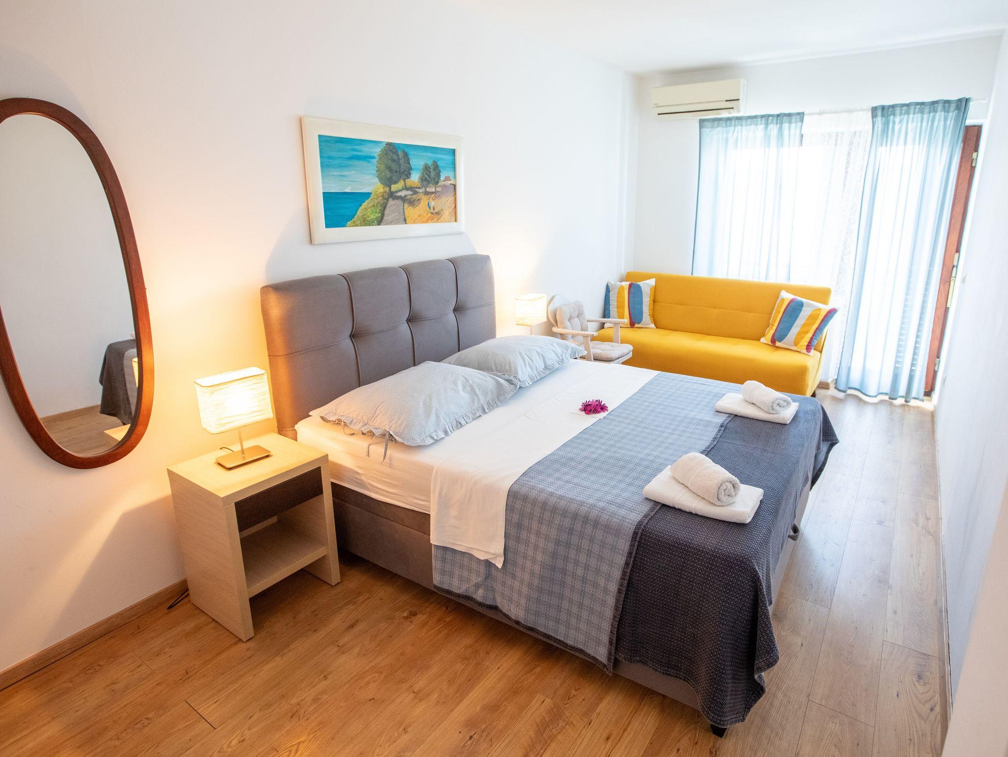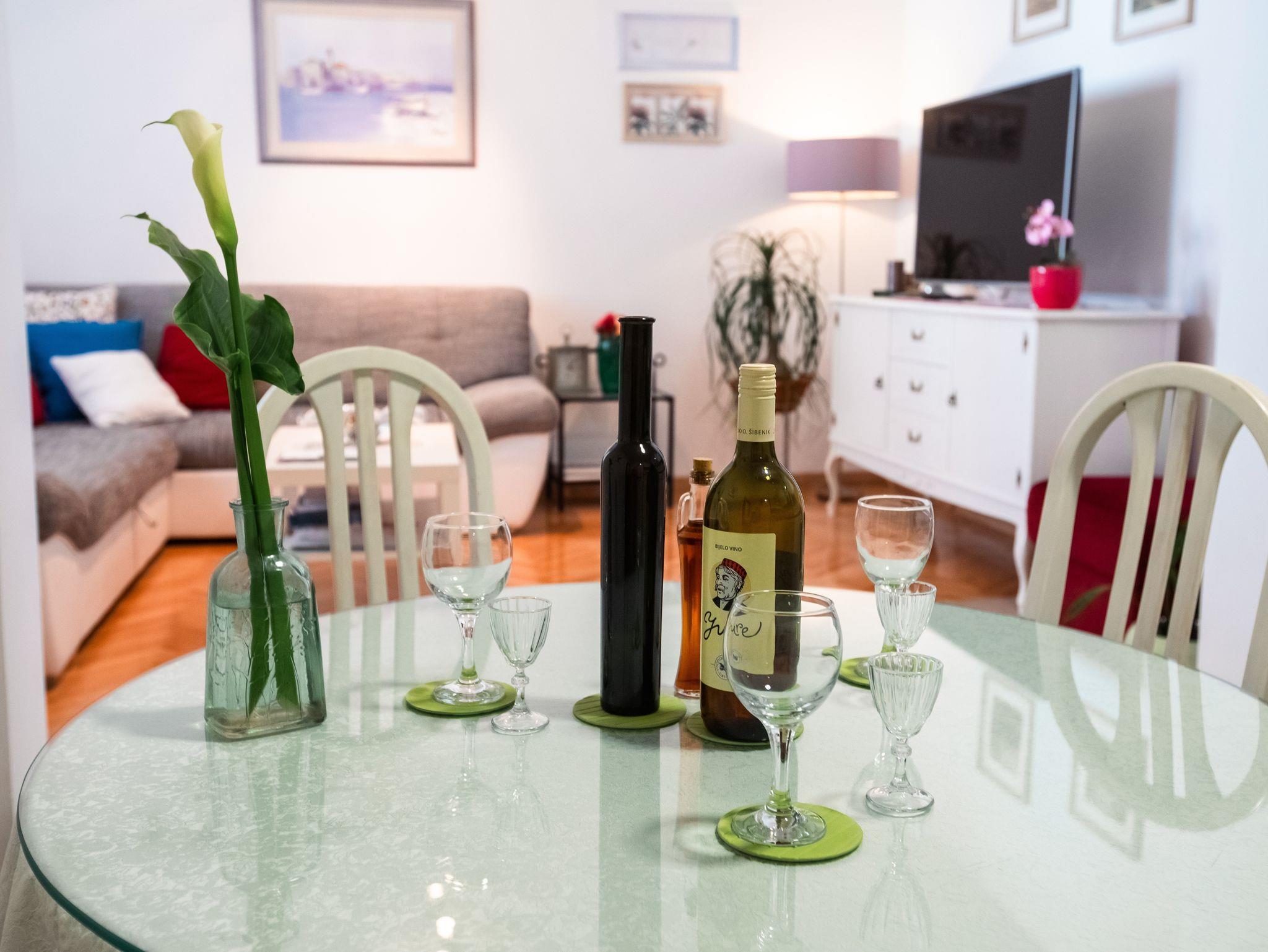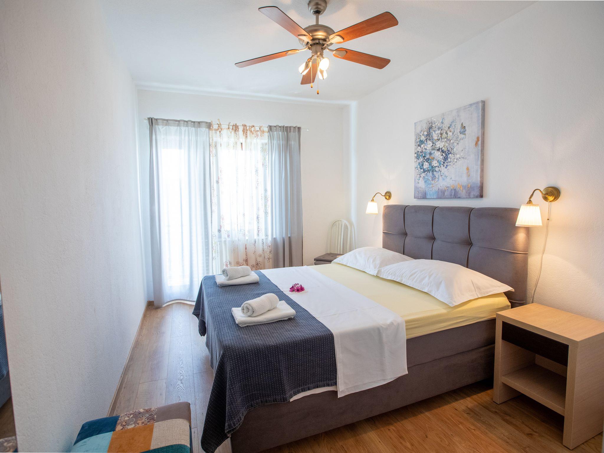 Ferienwohnung bietet Platz für 6 Gäste. Die Betten sind in Schlafzimmern, die es 2 gibt, und in Wohnzimmer, innerhalb einer Gesamtfläche von 70m2, angeordnet. Die Gäste haben einen eigenen Balkon zur Verfügung, auf der sie in warmen Sommernächten genießen können. Das Apartment bietet Meerblick. Es ist erlaubt, Speisen auf dem Gemeinschafts-Grill vorzubereiten. IM PREIS INBEGRIFFEN: Kurtaxe, Endreinigung, Klimatisierung, Parkplatz, Internet, Kinderbett, Bügeleisen, Bügelbrett, Föhn. Die Verfügbarkeit zusätzlicher Dienstleistungen in Ihrem reservierten Termin und die Preise derselben (falls nicht aufgeführt) müssen im Voraus überprüft werden. Zusätzliche Dienstleistungen die in der Zahlungsaufforderung nicht aufgeführt sind werden direkt beim Vermieter bezahlt, angenommen der Gast nutzt auch diese.