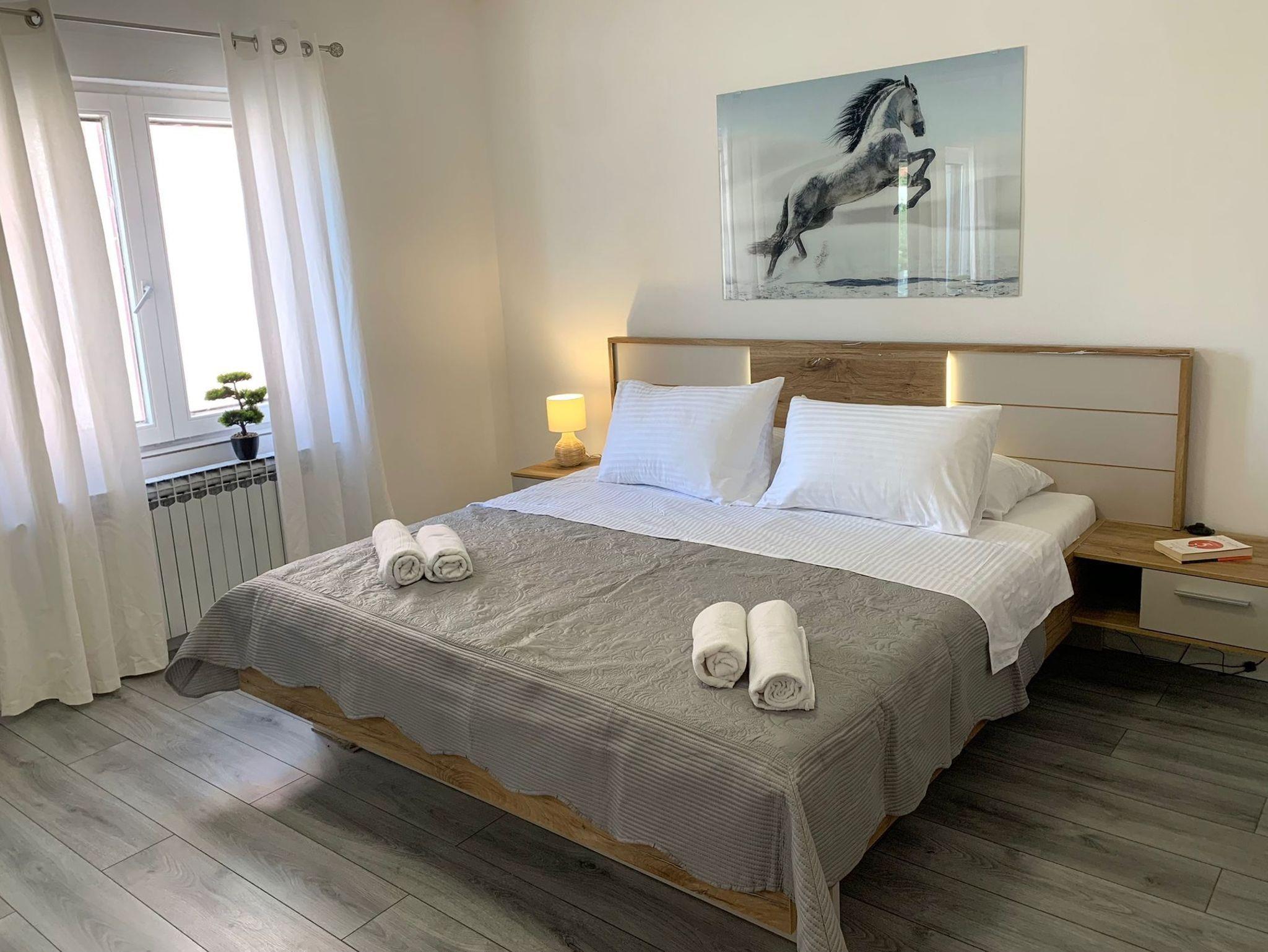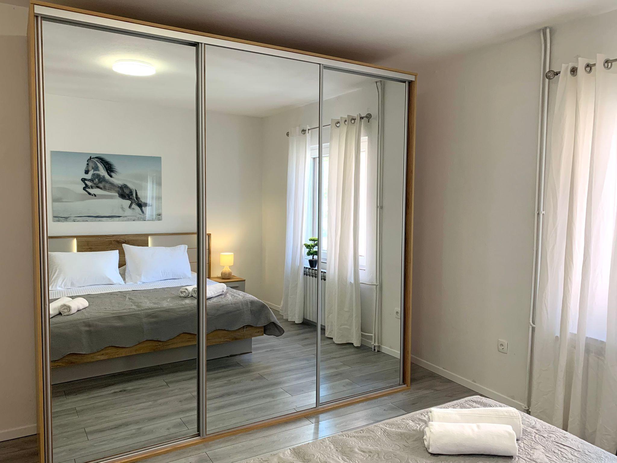 Ferienwohnung bietet Platz für 5 Gäste. Die Betten sind in Schlafzimmern, die es 2 gibt, und in Wohnzimmer, innerhalb einer Gesamtfläche von 81m2, angeordnet. Die Gäste haben eine eigene Terrasse zur Verfügung, auf der sie in warmen Sommernächten genießen können. In der Unterkunftseinheit besteht die Möglichkeit des Mitbringens von Haustieren, und die Dienstleistung ist im Preis der Unterkunft enthalten. IM PREIS INBEGRIFFEN: Kurtaxe, Endreinigung, Klimatisierung, Parkplatz, Internet, Haustiere, Kinderbett, Bügeleisen, Bügelbrett, Föhn. Die Verfügbarkeit zusätzlicher Dienstleistungen in Ihrem reservierten Termin und die Preise derselben (falls nicht aufgeführt) müssen im Voraus überprüft werden. Zusätzliche Dienstleistungen die in der Zahlungsaufforderung nicht aufgeführt sind werden direkt beim Vermieter bezahlt, angenommen der Gast nutzt auch diese. Ermäßigung auf den Grundpreis: Gratistag 14=13 (bei einem Aufenthalt von 14 Tagen oder mehr erhalten Sie einen Gratistag für den Aufenthalt bis 31.12.26).