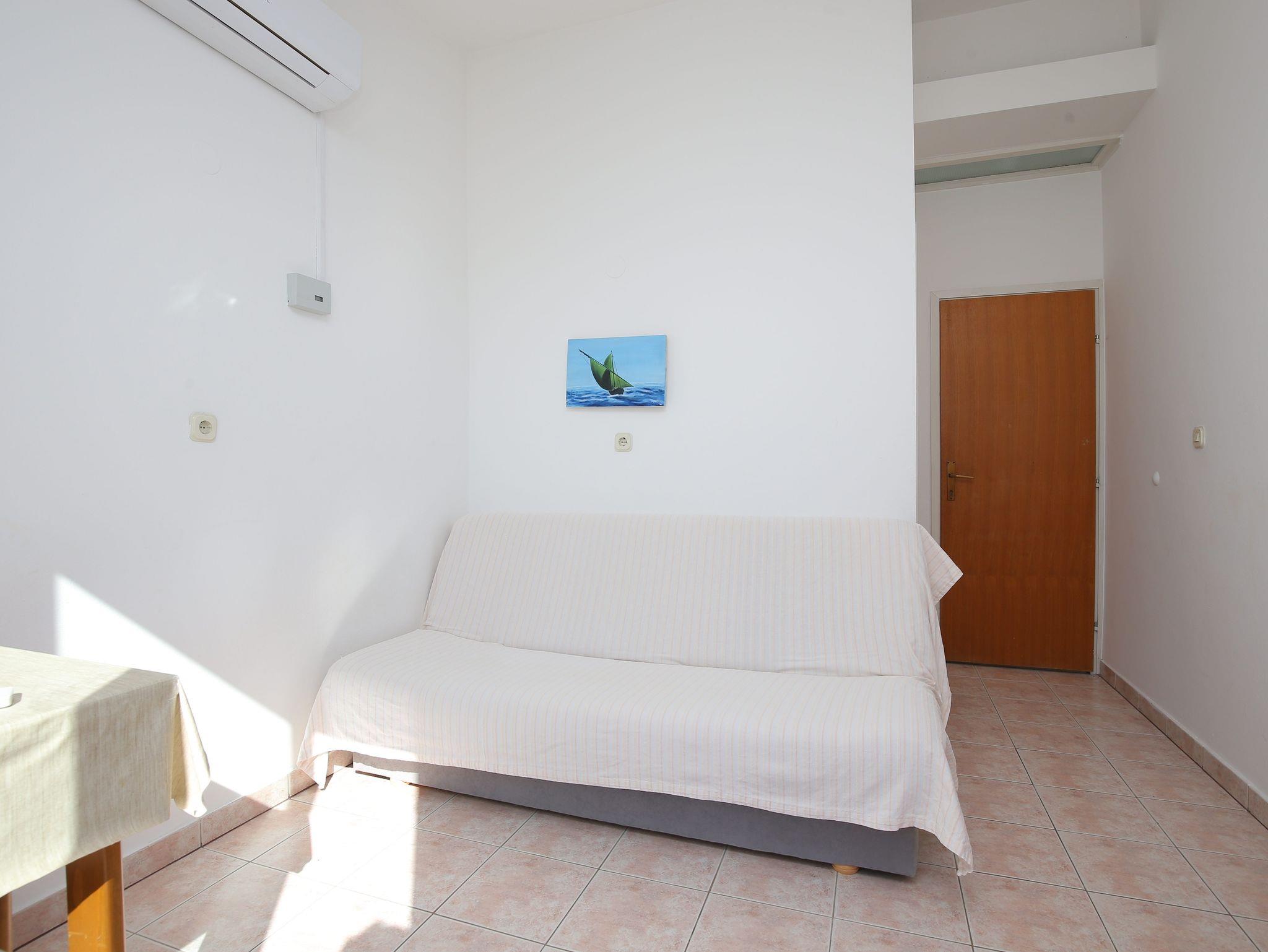 Ferienwohnung bietet Platz für 3 Gäste. Die Betten sind in Schlafzimmern, die es 1 gibt, und in Wohnzimmer, innerhalb einer Gesamtfläche von 22m2, angeordnet. Die Gäste haben einen eigenen Balkon zur Verfügung, auf der sie in warmen Sommernächten genießen können. Das Apartment bietet Meerblick. Es ist erlaubt, Speisen auf dem Gemeinschafts-Grill vorzubereiten. IM PREIS INBEGRIFFEN: Kurtaxe, Endreinigung, Klimatisierung, Parkplatz, Internet, Wäschewaschen, Bügeleisen, Bügelbrett, Föhn, tragbarer Grill. Die Verfügbarkeit zusätzlicher Dienstleistungen in Ihrem reservierten Termin und die Preise derselben (falls nicht aufgeführt) müssen im Voraus überprüft werden. Zusätzliche Dienstleistungen die in der Zahlungsaufforderung nicht aufgeführt sind werden direkt beim Vermieter bezahlt, angenommen der Gast nutzt auch diese. Ermäßigung auf den Grundpreis: Gratistag 14=13 (bei einem Aufenthalt von 14 Tagen oder mehr erhalten Sie einen Gratistag für den Aufenthalt bis 31.12.26).