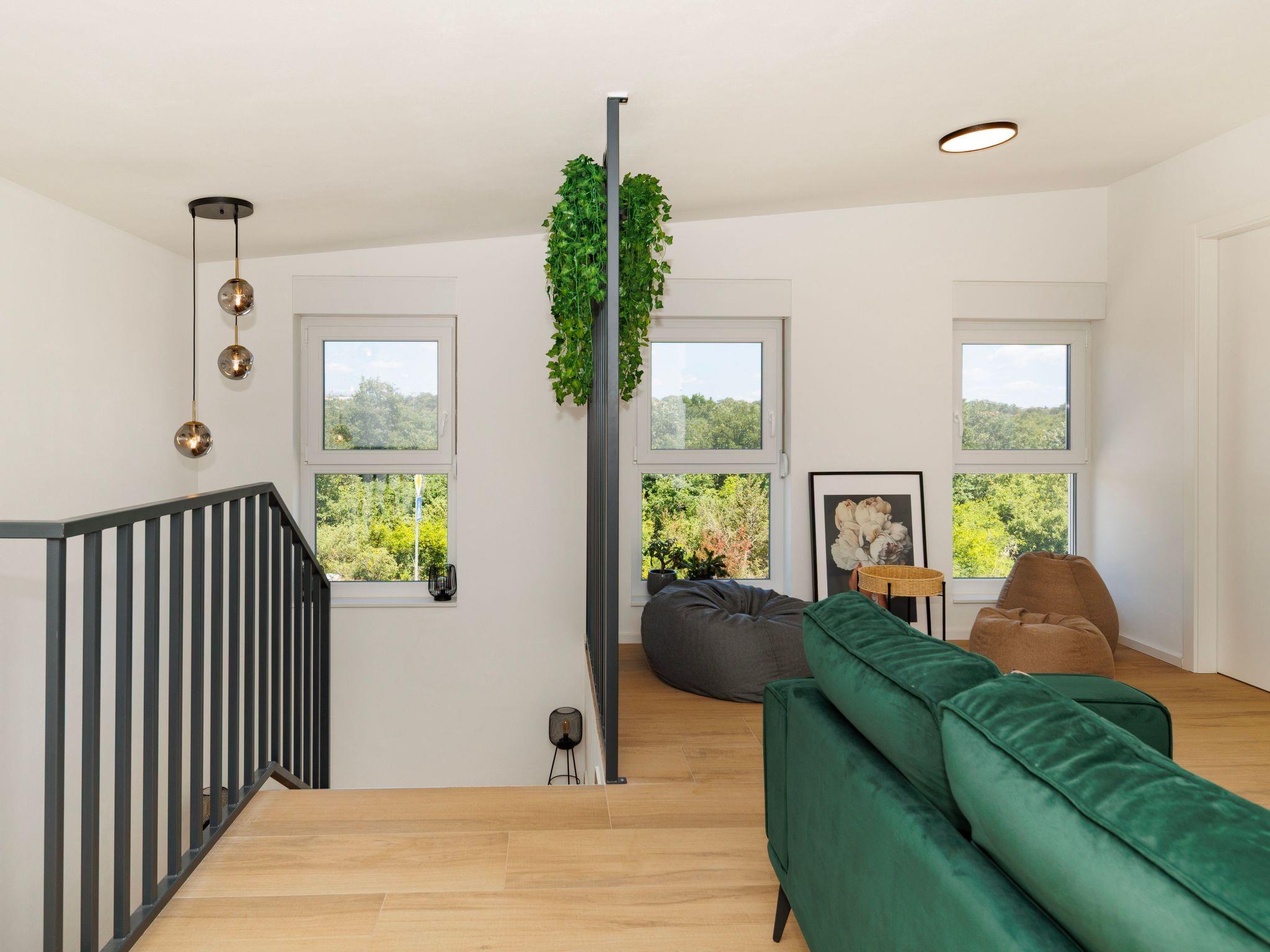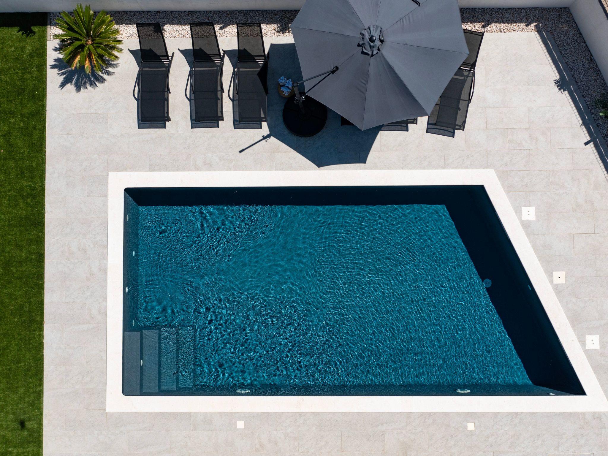 The air conditioning, which is available in all rooms, and the underfloor heating, which is installed in parts of the house, ensure a pleasant atmosphere at any time of year. On cooler evenings, the fireplace invites you to spend cosy hours.