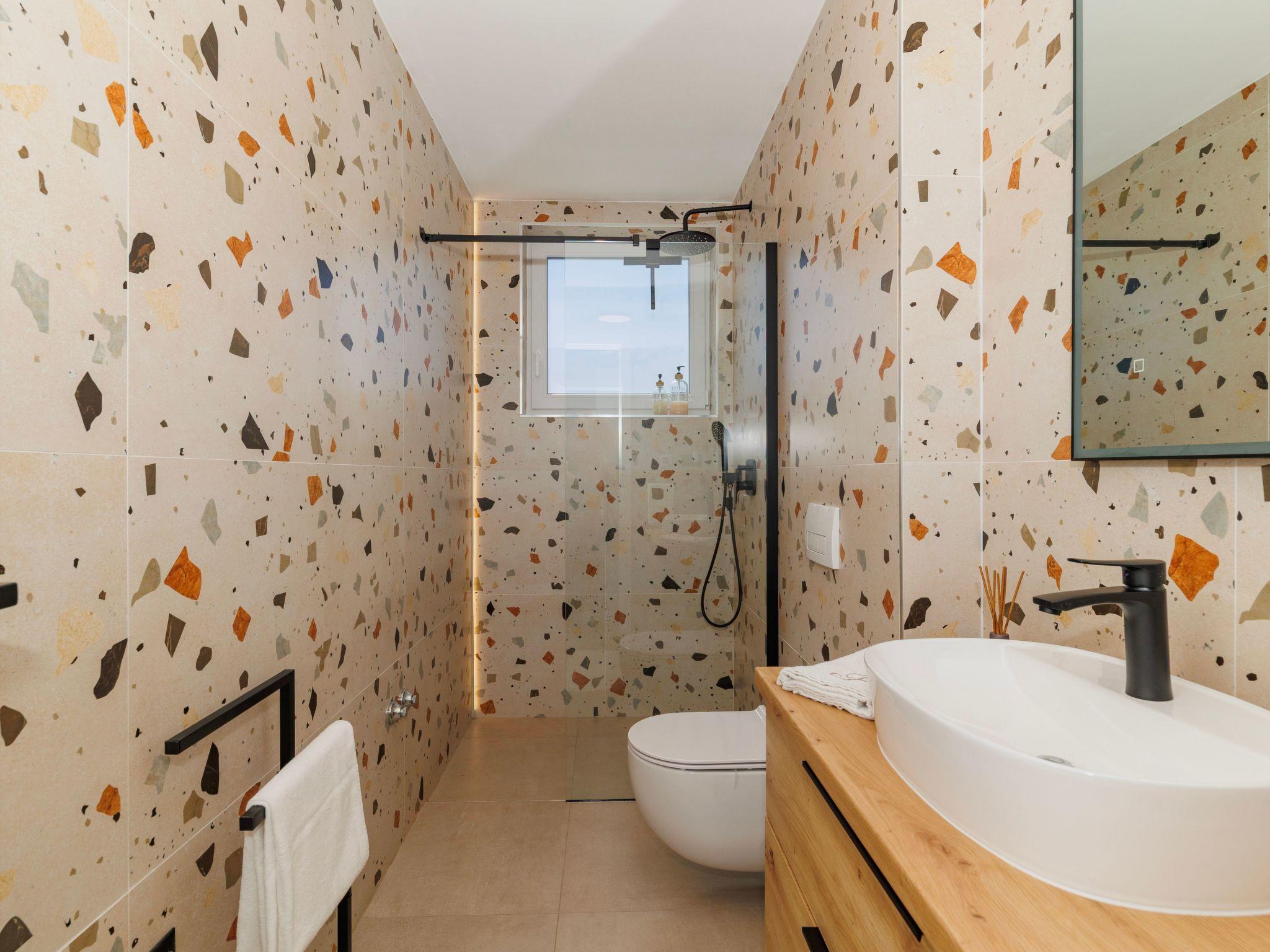 This detached holiday home in Policnik, Dalmatia, is ideal for up to 6 people. It has three carefully furnished bedrooms, all of which can be darkened to guarantee a good night's sleep after an eventful day. Two bathrooms with shower provide comfort.