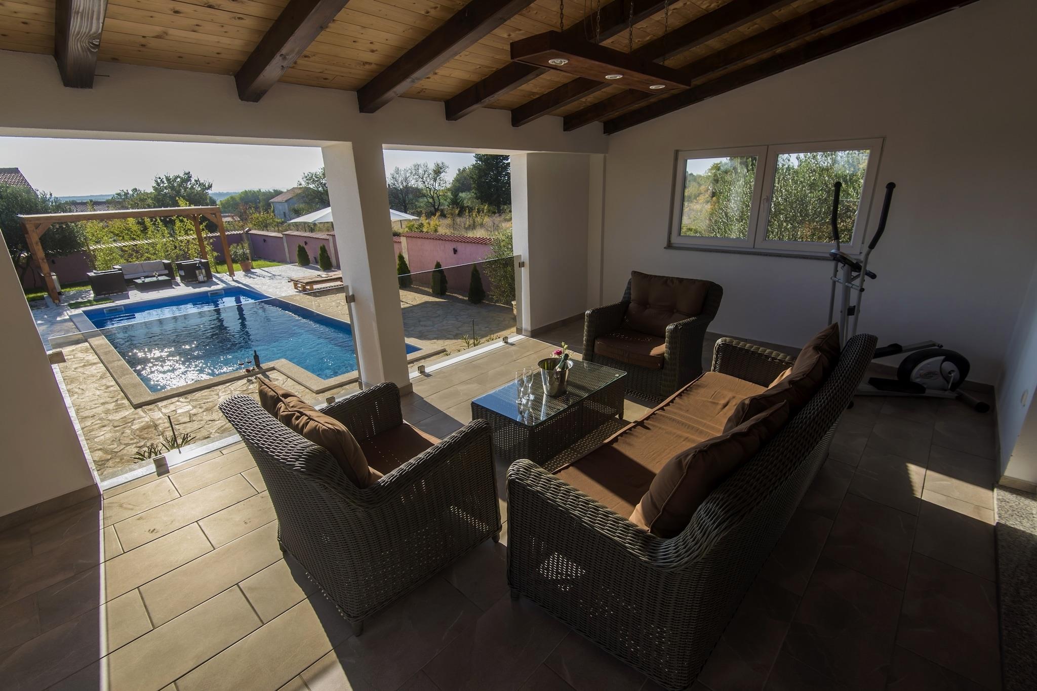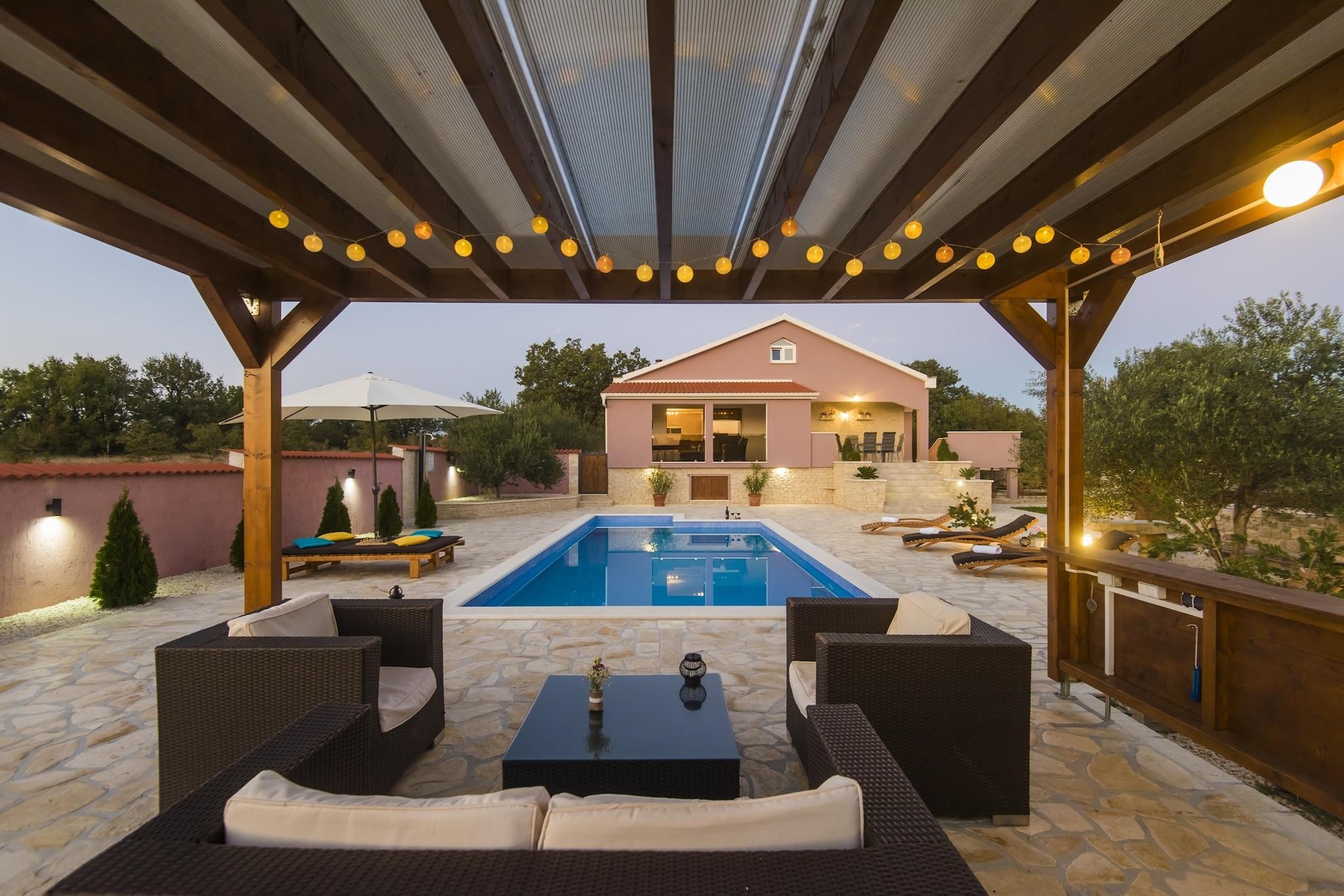 Feriehus Marija er beliggende i en fredelig landsby Policnik, kun 12 km væk fra den gamle by Zadar. Det er en perfekt indkvartering til stressfri ferie, der tilbyder sine gæster et højt privatliv. Dette charmerende feriehus tilbyder et rummeligt opholdsstue fordelt på stueetagen, privat 40m swimmingpool, dejlig overdækket terrasse og flot indhegnet have med grillfaciliteter. Stueetagen har en moderne stue / spisestue med rummelig veranda, fuldt udstyret køkken med opvaskemaskine, 3 komfortable soveværelser og 2 hyggelige badeværelser. Særligt sted er den traditionelle taverne i rustik stil, der byder på en hjemlig atmosfære med træ spisebord og åben pejs. Privat , indhegnet have med swimmingpool, dejlig terrasse med havemøbler og traditionelle taverne er simpelthen det perfekte sted for dine afslappende øjeblikke med venner og familie. Med en afstand på 0,8 km finder du en købmand, en restaurant og et turistkontor. Den nærmeste strand, der er specielt egnet til børn i Posedarje ligger 8 km væk. Foruden total hvile tilbyder denne region en lang række aktiviteter såsom vandreture, cykling, mountainbike, rafting, windsurfing og meget mere. I en radius af 30 km kan du besøge den antikke by Zadar, den smukke canyon Zrmanja-floden og det vigtigste klatringscenter i Kroatien nationalpark Paklenica.