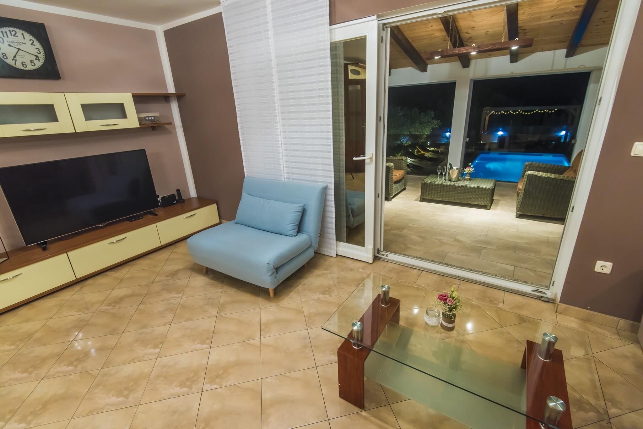 Dejligt feriehus med privat pool, charmerende veranda, terrasse, taverne, grill