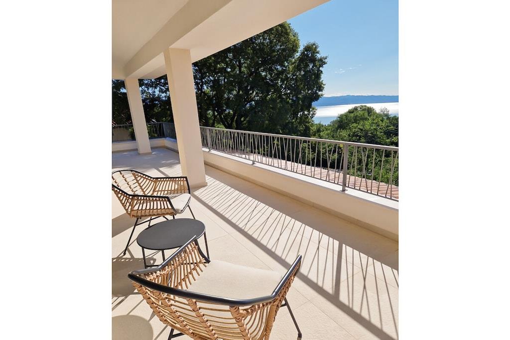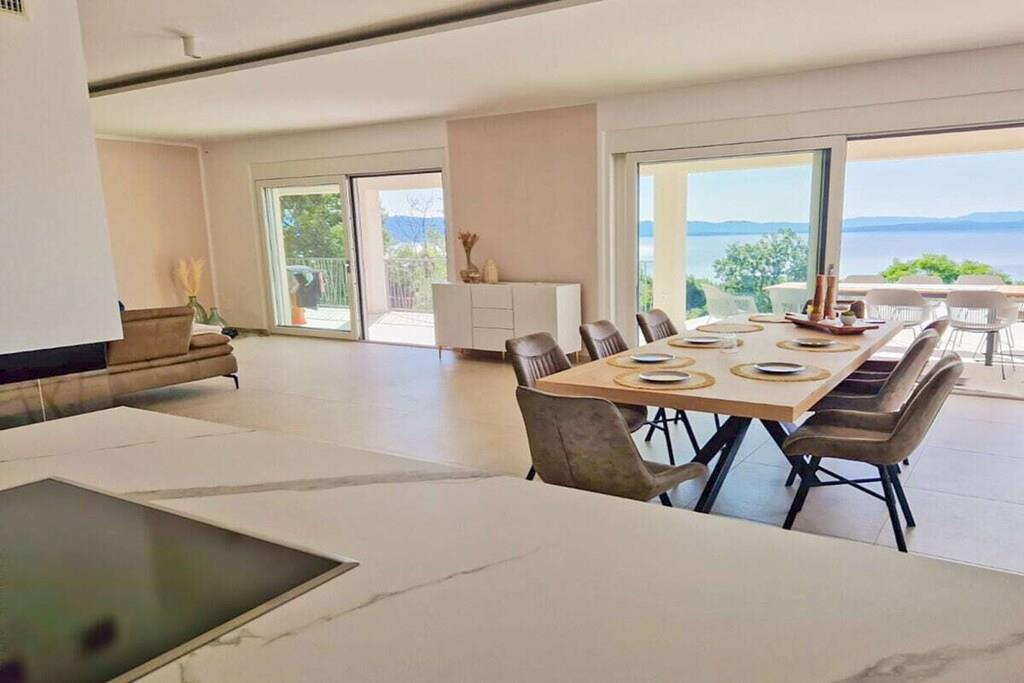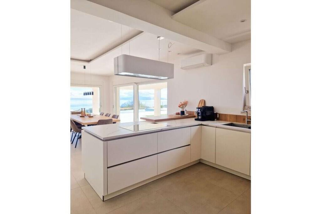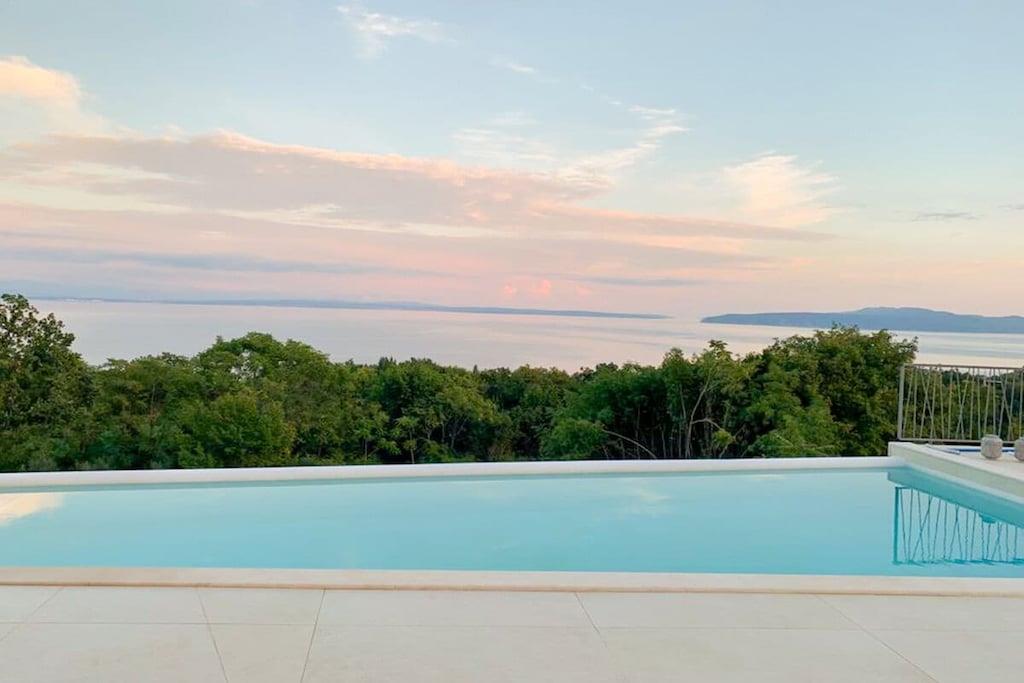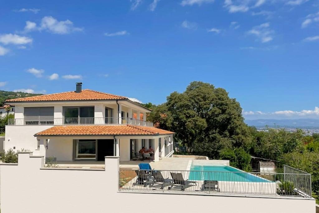 Die moderne Villa im maritimen Stil läd dazu ein, den Alltagsstress hinter sich zu lassen. Durch ihre gehobene Ausstattung werden sie sich schon beim Betreten der Villa sofort wohl fühlen. Sobald sie in den Wohn - und Essbereich eintreten, öffnet sich ihnen ein atemberaubender Blick auf die Kvarner Bucht, der sich noch im Pool- und Außenbereich steigert. Die Villa bietet alles, um unvergessliche Tage an der Kvarner Bucht zu verbringen, eine top moderne Küche, ein großzüger Wohn- und Essbereich und liebevoll eingerichtete Schlafzimmer. Sie bietet Platz für bis zu 8 Personen, mit 4 Schlafzimmern und jeweils 5 dazugehörigen modernen Bädern. Auch die überdachten Terrassen mit Infinitypool wird ihnen das Gefühl geben, über der Bucht zu schweben.