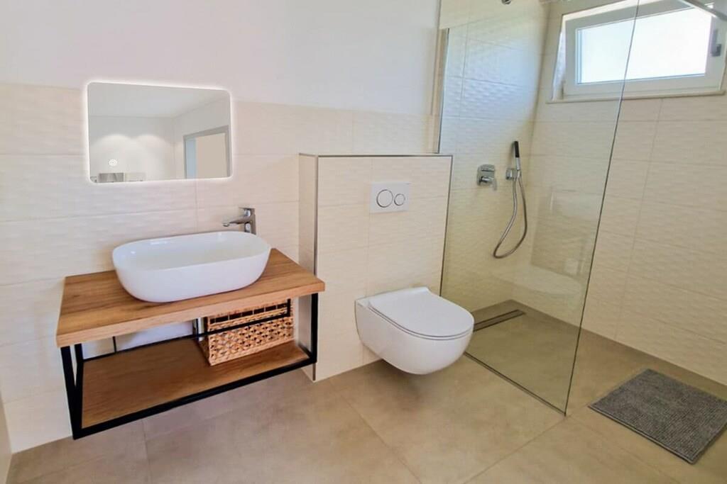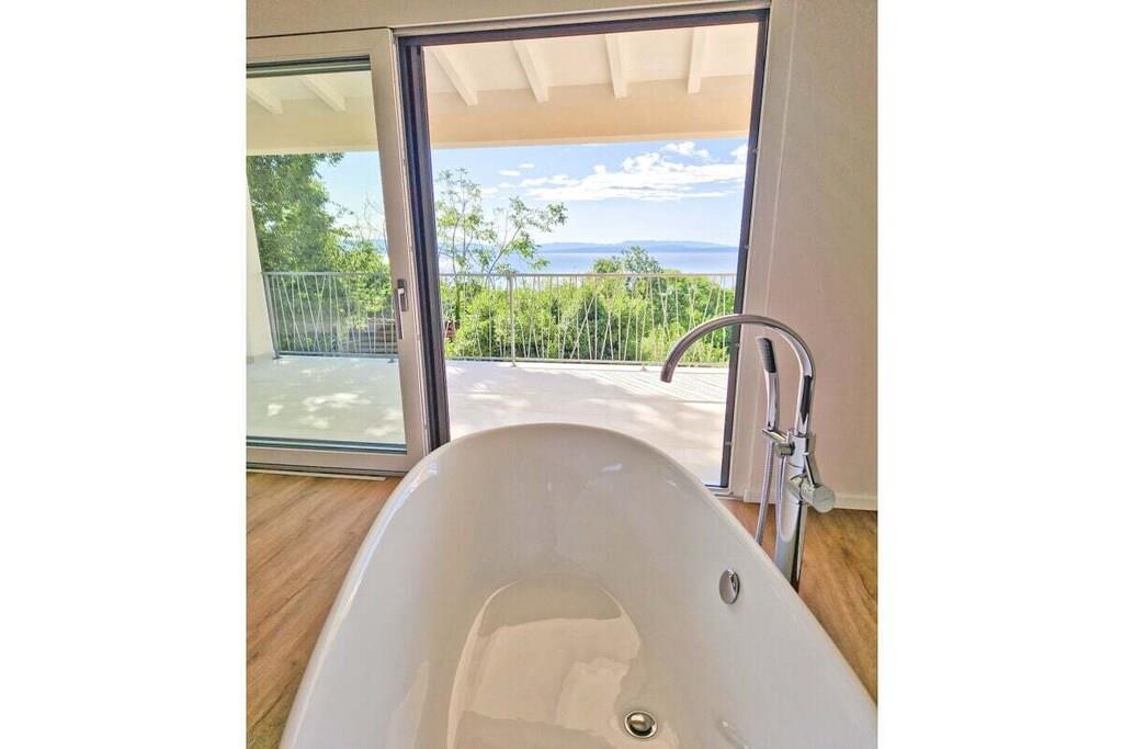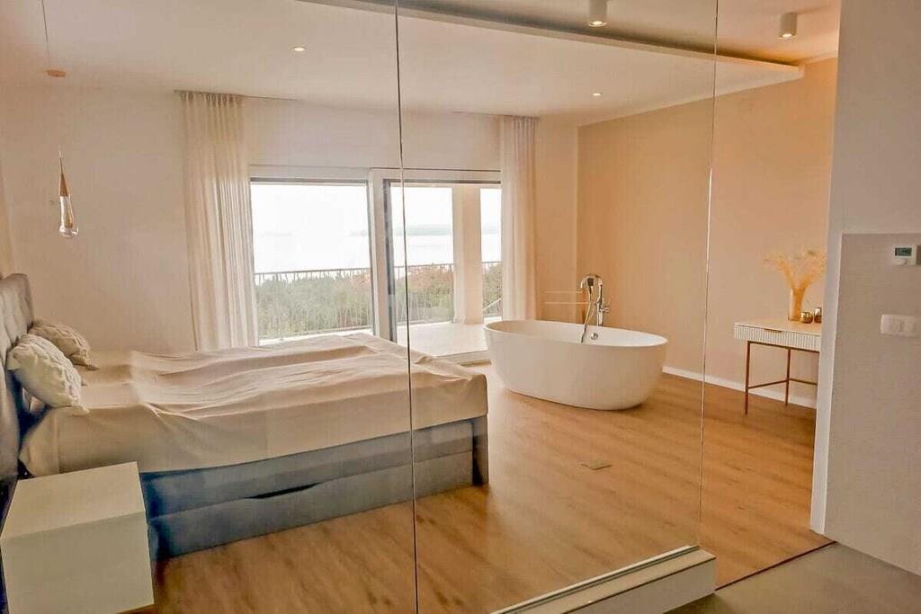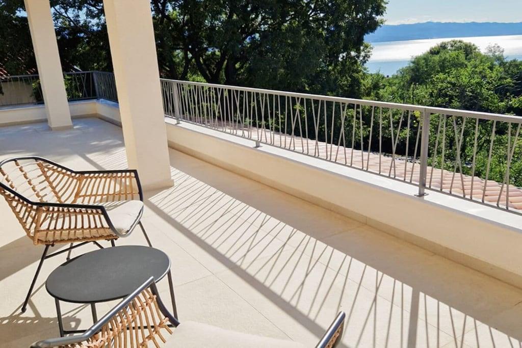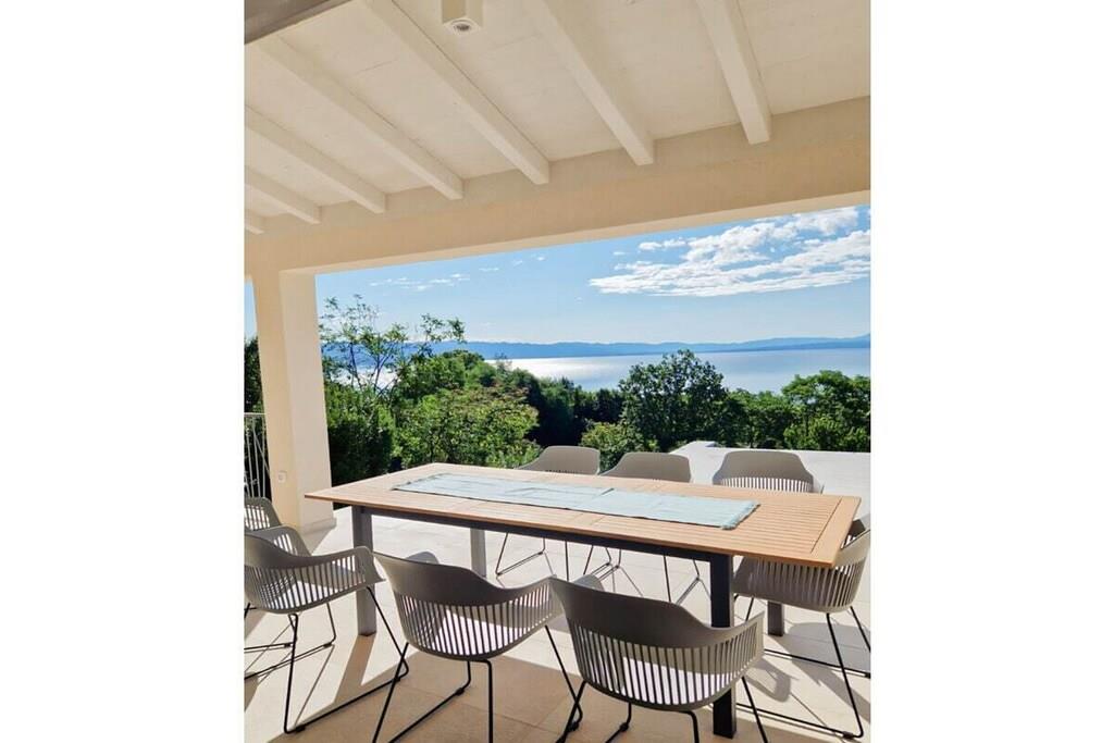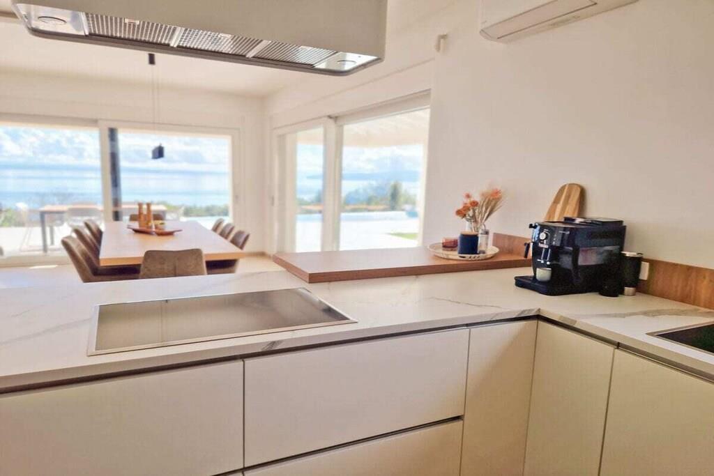 Die moderne Villa im maritimen Stil läd dazu ein, den Alltagsstress hinter sich zu lassen. Durch ihre gehobene Ausstattung werden sie sich schon beim Betreten der Villa sofort wohl fühlen. Sobald sie in den Wohn - und Essbereich eintreten, öffnet sich ihnen ein atemberaubender Blick auf die Kvarner Bucht, der sich noch im Pool- und Außenbereich steigert. Die Villa bietet alles, um unvergessliche Tage an der Kvarner Bucht zu verbringen, eine top moderne Küche, ein großzüger Wohn- und Essbereich und liebevoll eingerichtete Schlafzimmer. Sie bietet Platz für bis zu 8 Personen, mit 4 Schlafzimmern und jeweils 5 dazugehörigen modernen Bädern. Auch die überdachten Terrassen mit Infinitypool wird ihnen das Gefühl geben, über der Bucht zu schweben.
