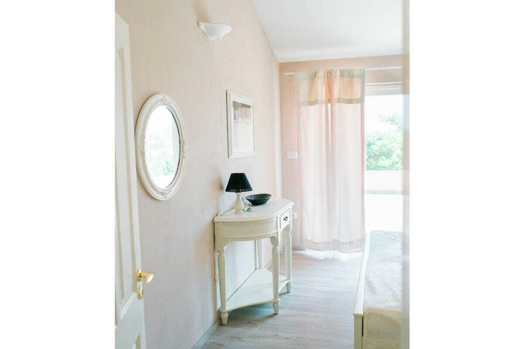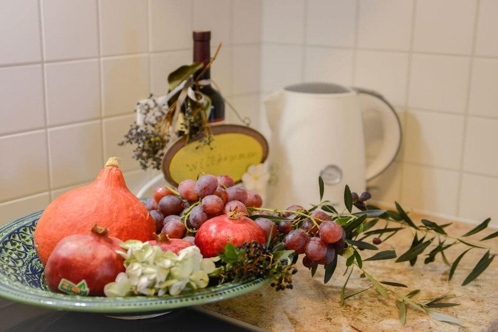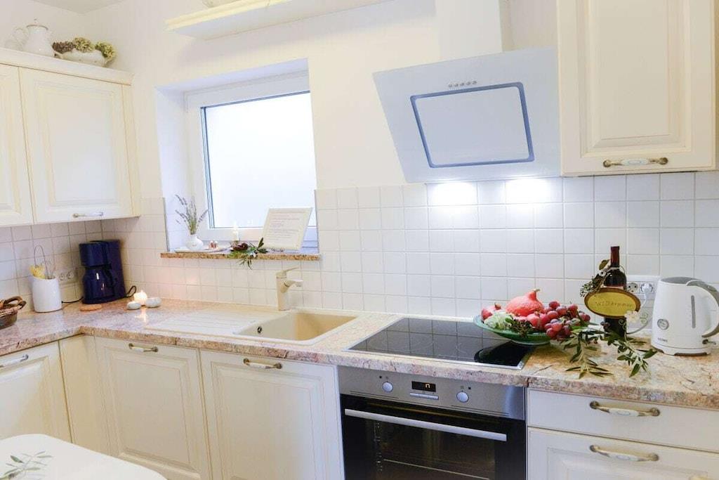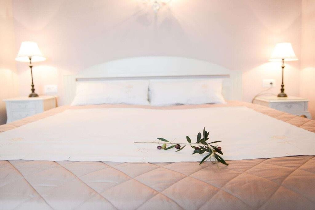 Gepflegte Villa im Landhausstil, in ruhiger Lage Das Haus befindet sich inmitten der Natur und besteht aus zwei Hälften mit zwei separaten Eingängen. Die zu vermietende Haushälfte ist auf zwei Etagen verteilt und besteht aus drei Schlafzimmern, zwei Bädern, einem Wohnzimmer sowie einer voll ausgestatteten Küche. Alle Räume sind klimatisiert und gemütlich eingerichtet. Jedes Zimmer hat einen eigenen Balkon mit Blick auf das Meer. Im Erdgeschoß befinden sich ein Wohn- und Esszimmer mit Kamin, eine Küche und ein Schlafzimmer mit Zugang auf die Terrasse. Die Küche ist voll ausgestattet mit Kühlschrank und Gefrierfach, Spülmaschine, Backofen, Kochfeld, Wasserkocher, Kaffeemaschine, Geschirr und allen notwendigen Küchenutensilien. Die Klimaanlagen sowie eine Fußbodenheizung im Winter sorgen für eine gemütliche Atmosphäre zu jeder Jahreszeit. Die einladende Terrasse im Außenbereich mit Liegestühlen und einem großen Swimming Pool ist nahe am Haus und bietet jede Menge Platz zur Entspannung. Die zweite Haushälfte wird vom Eigentümer selbst genutzt und wird nicht vermietet. Ein angelegter 2.000 qm großer Garten mit Rasenflächen und mediterranen Pflanzen umgibt das Haus und bietet ausreichend Platz sowie Privatsphäre. Eine finnische Sauna, ein Grillhaus mit großem Esstisch stehen ebenfalls zur Verfügung.