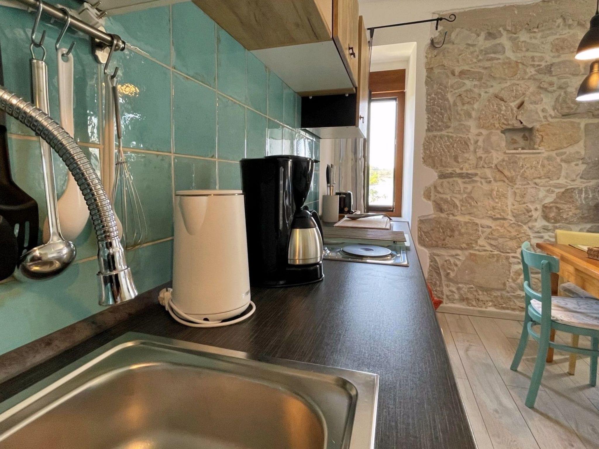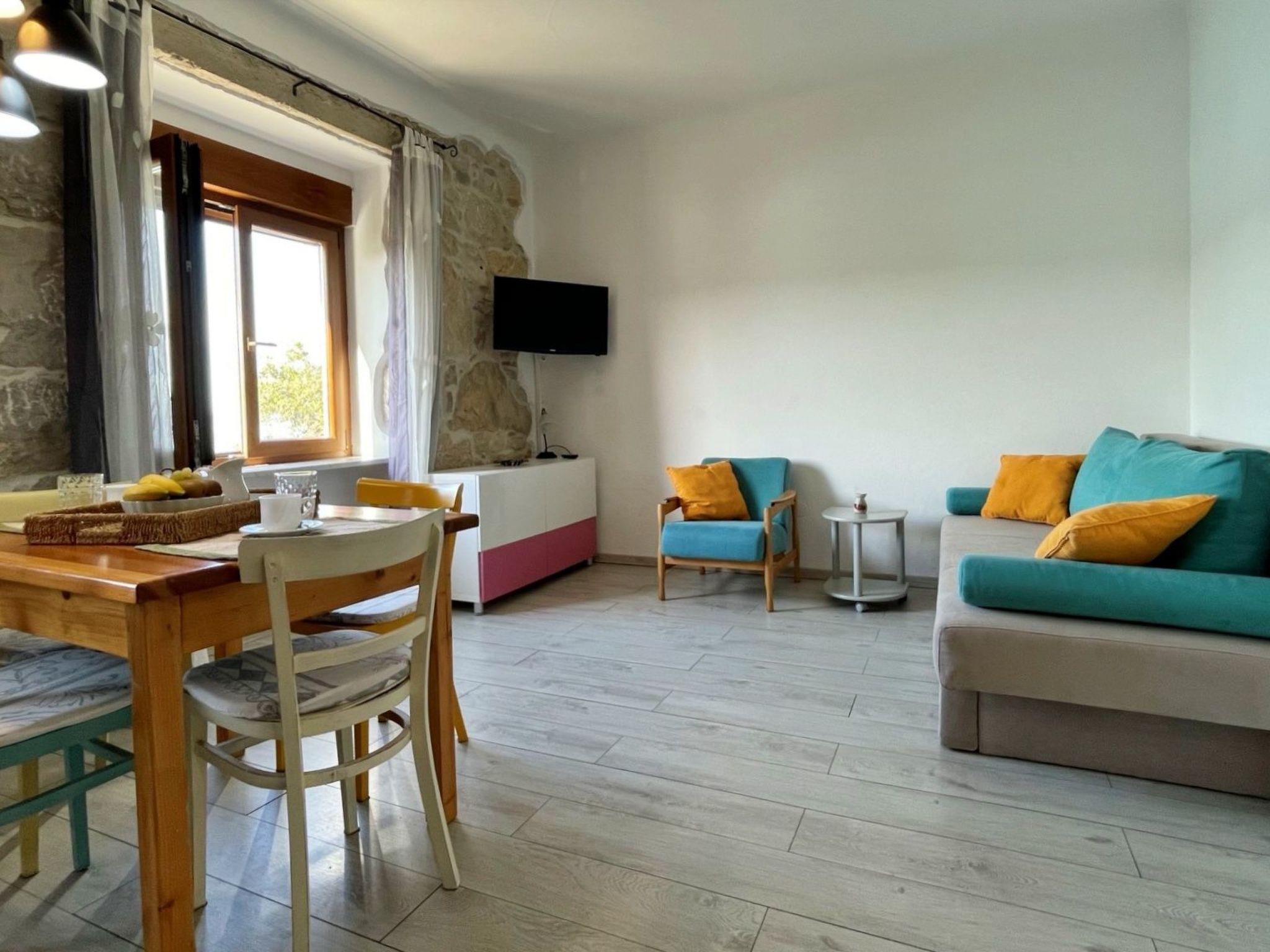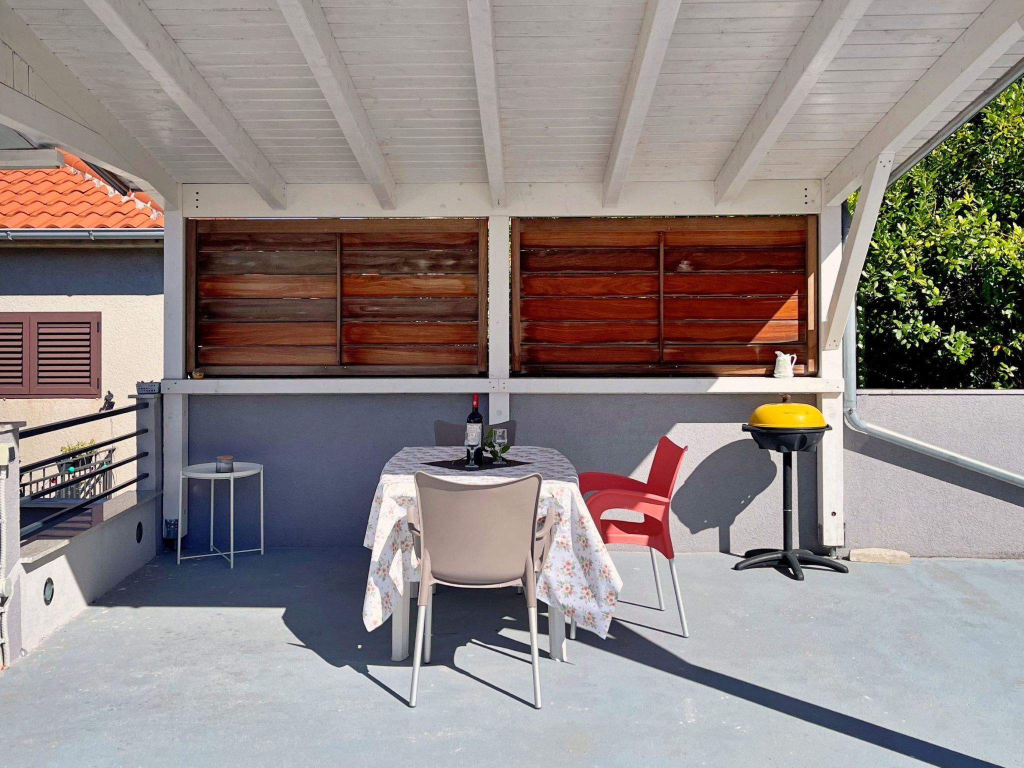 Enjoy a relaxing summer vacation in this charming seafront apartment, ideal for up to 3 guests. It features a bedroom with a queen bed and a convertible sofa for one in the living area. The bathroom includes a toilet, shower, and hairdryer. Located just 15 m from the sea and 500 m from the center, the apartment boasts a spacious 50 m2 partially roofed terrace with sun loungers and stunning sea view, a dining area, and BBQ facilities. Inside, the kitchen is fully equipped with an electric stove, oven, mini refrigerator with freezer, coffee machine, kettle, toaster, microwave, and dishwasher. The living area has a sofa and satellite/cable TV. Additional amenities include Wi-Fi, air conditioning, and private parking. The apartment is located on the first floor, accessible via outdoor stairs. The owners live downstairs and are available for any assistance.
