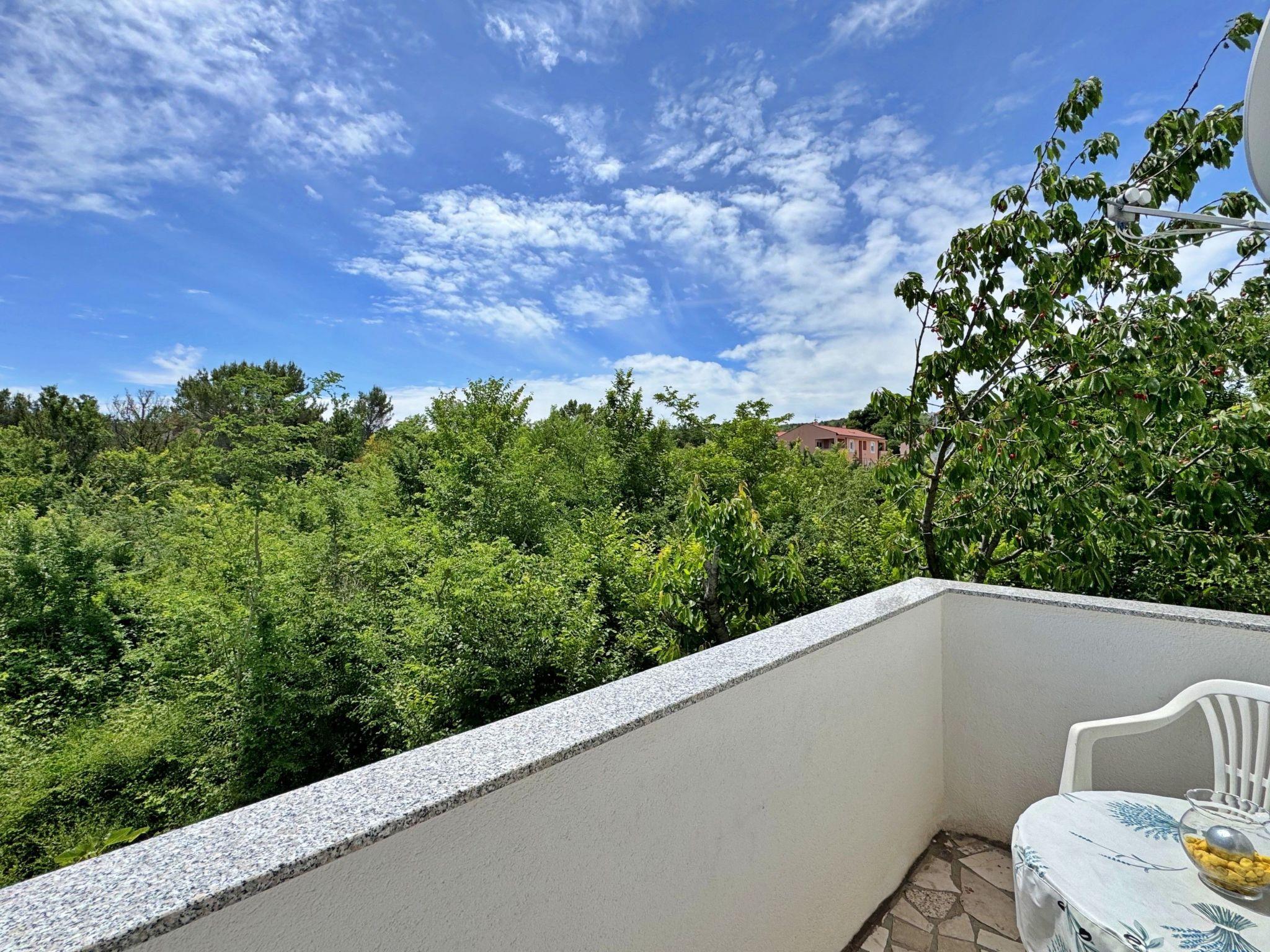 The outdoor area boasts a 6 m2 balcony, which offers a peaceful view of the greenery and is accessible from both the living room and one of the bedrooms. For even more relaxation, guests have access to a communal garden with a barbecue area and a cosy seating area, perfect for socialising outdoors.