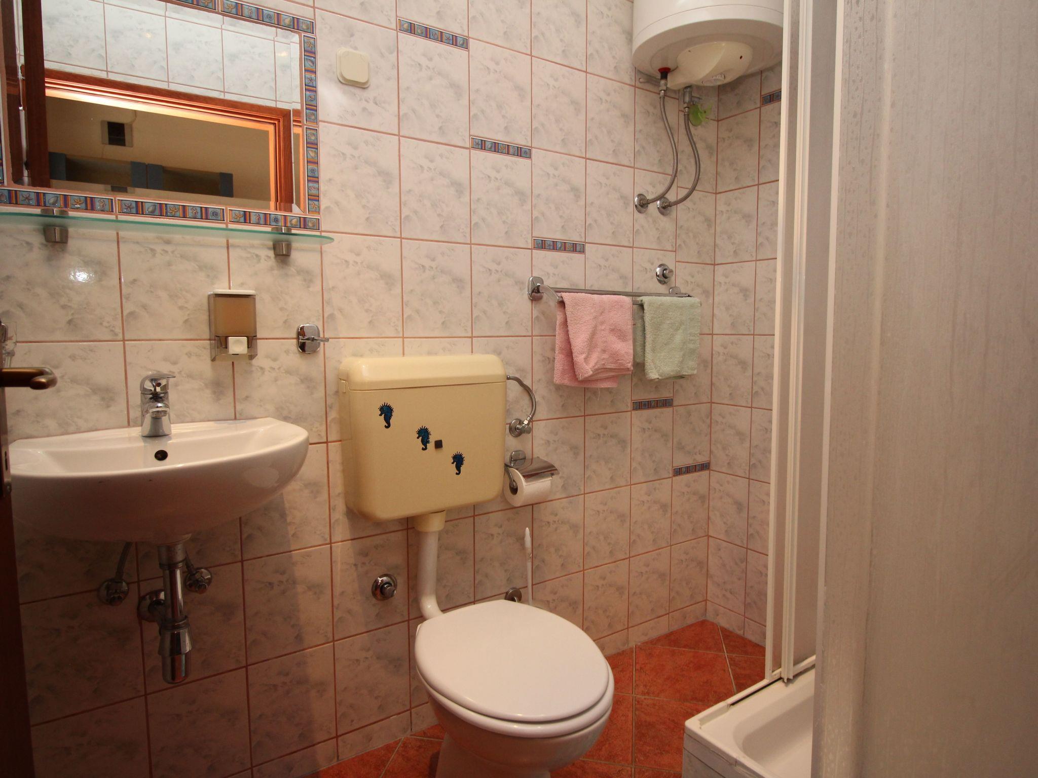 Inside the flat you will find a well-organised living and sleeping area that has been carefully designed to make your stay as pleasant as possible. The kitchenette is equipped with a 2-ring hob, kettle, mini fridge and other useful utensils for preparing simple meals. In addition, the air conditioning throughout the flat ensures a pleasant atmosphere, even on warmer days. Entertainment and information are provided thanks to the TV (with Croatian channels) and Wi-Fi connection.