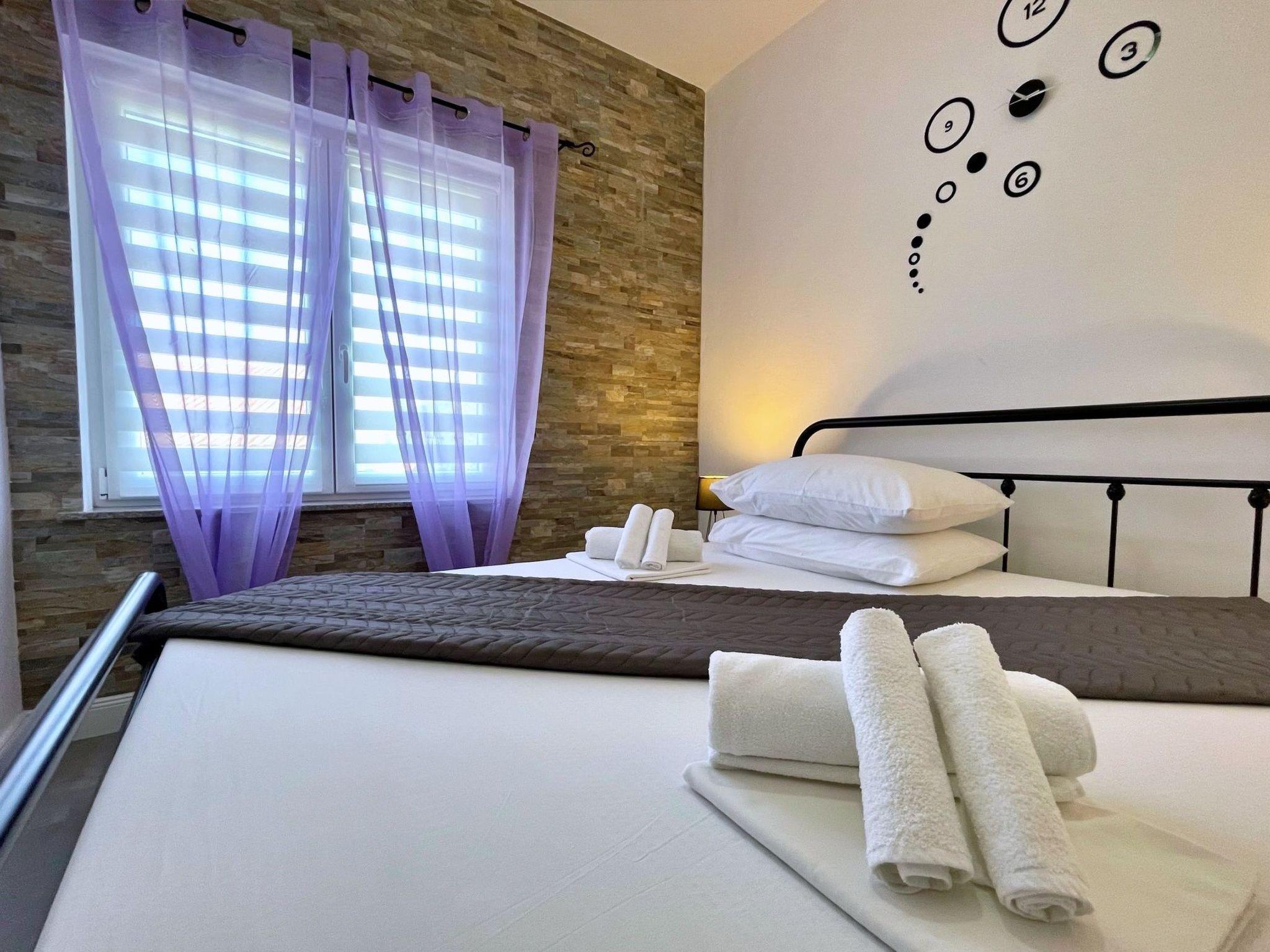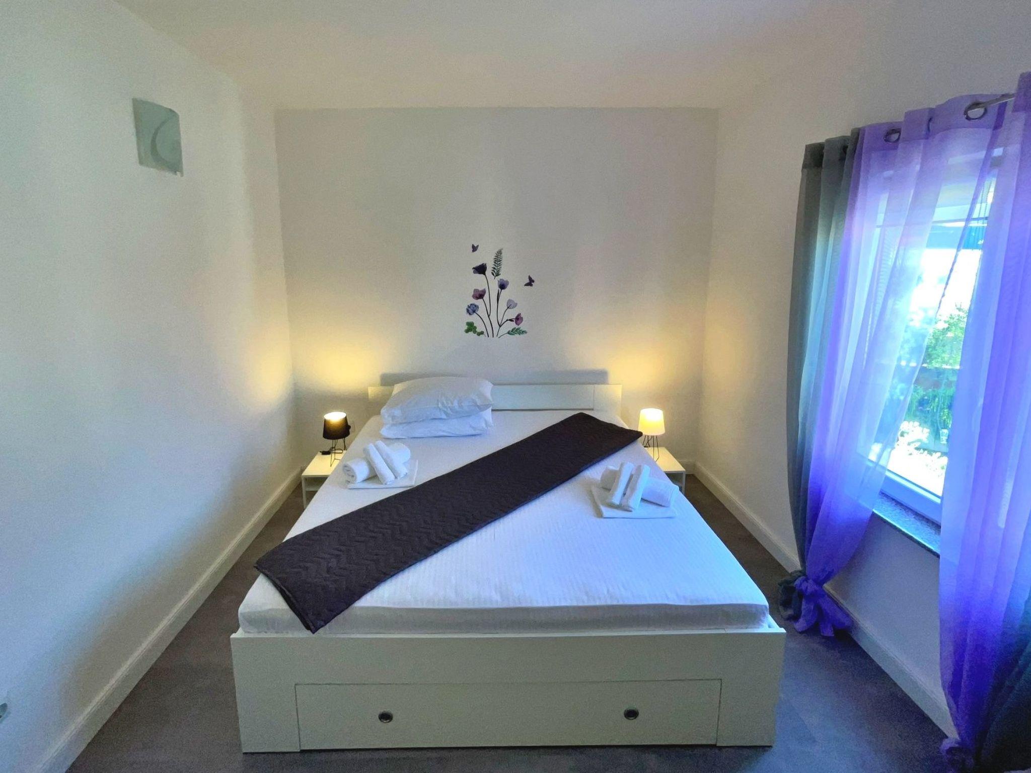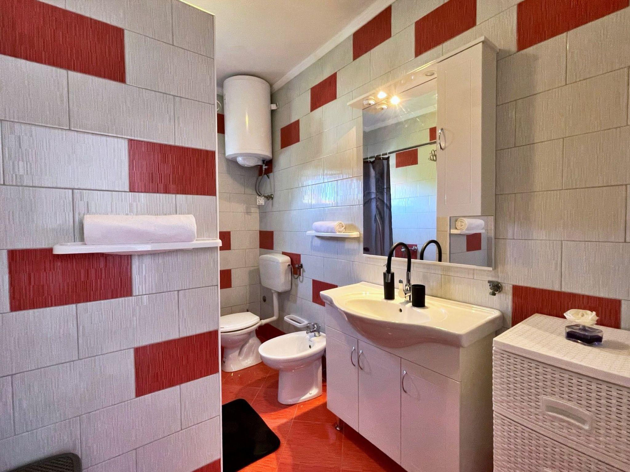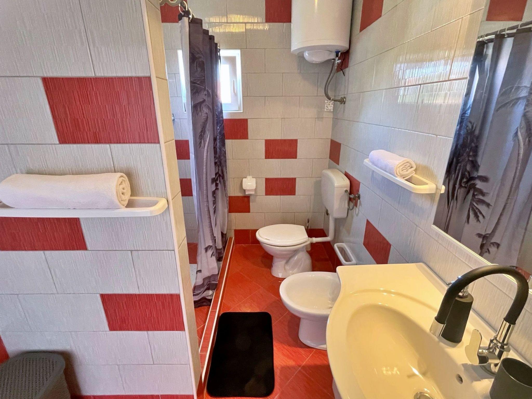 This modern three-bedroom flat is located 1.65 km from the sea. It has a fully equipped kitchen with gas/electric hob, oven, fridge with freezer compartment, coffee machine, kettle and dishwasher. The living room has a sofa, dining table, satellite TV, WiFi and air conditioning. The bedrooms have double beds and one of the bedrooms has a sea view and access to the terrace. The bathroom is equipped with a shower, toilet and bidet. Outside, you can relax on the 24 m2 terrace with sea and garden views. There is also a shared barbecue area on the ground floor in the courtyard. Bed linen and towels are provided and the owner also offers a laundry service for guests. A baby cot is available on request. A private car park is available in the courtyard. One dog is allowed in our flats without additional charge. Please let us know in advance if you are travelling with your pet - we will give you and your four-legged friend a warm welcome. The owner lives in the same house and is there for you if you need anything!