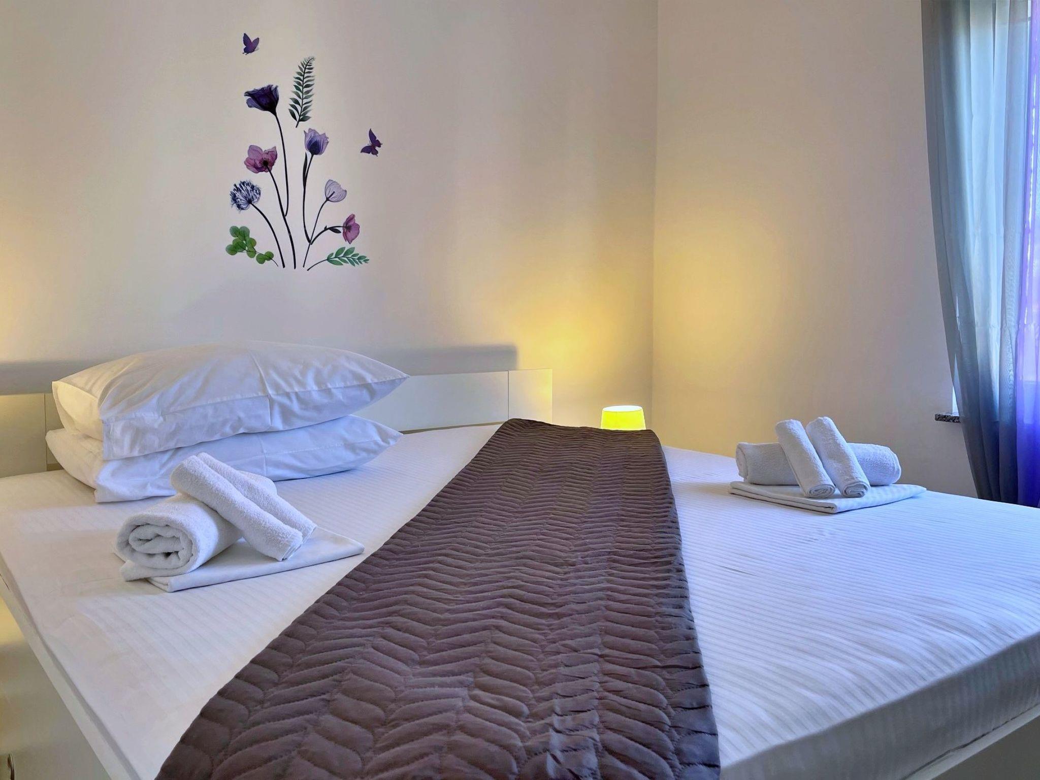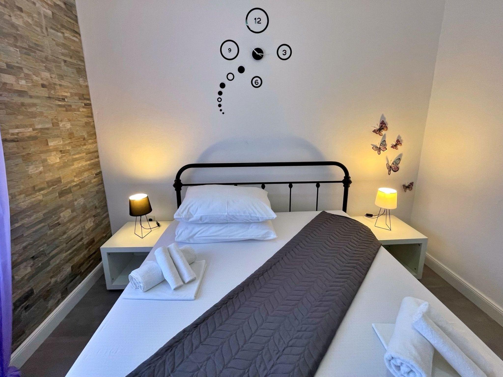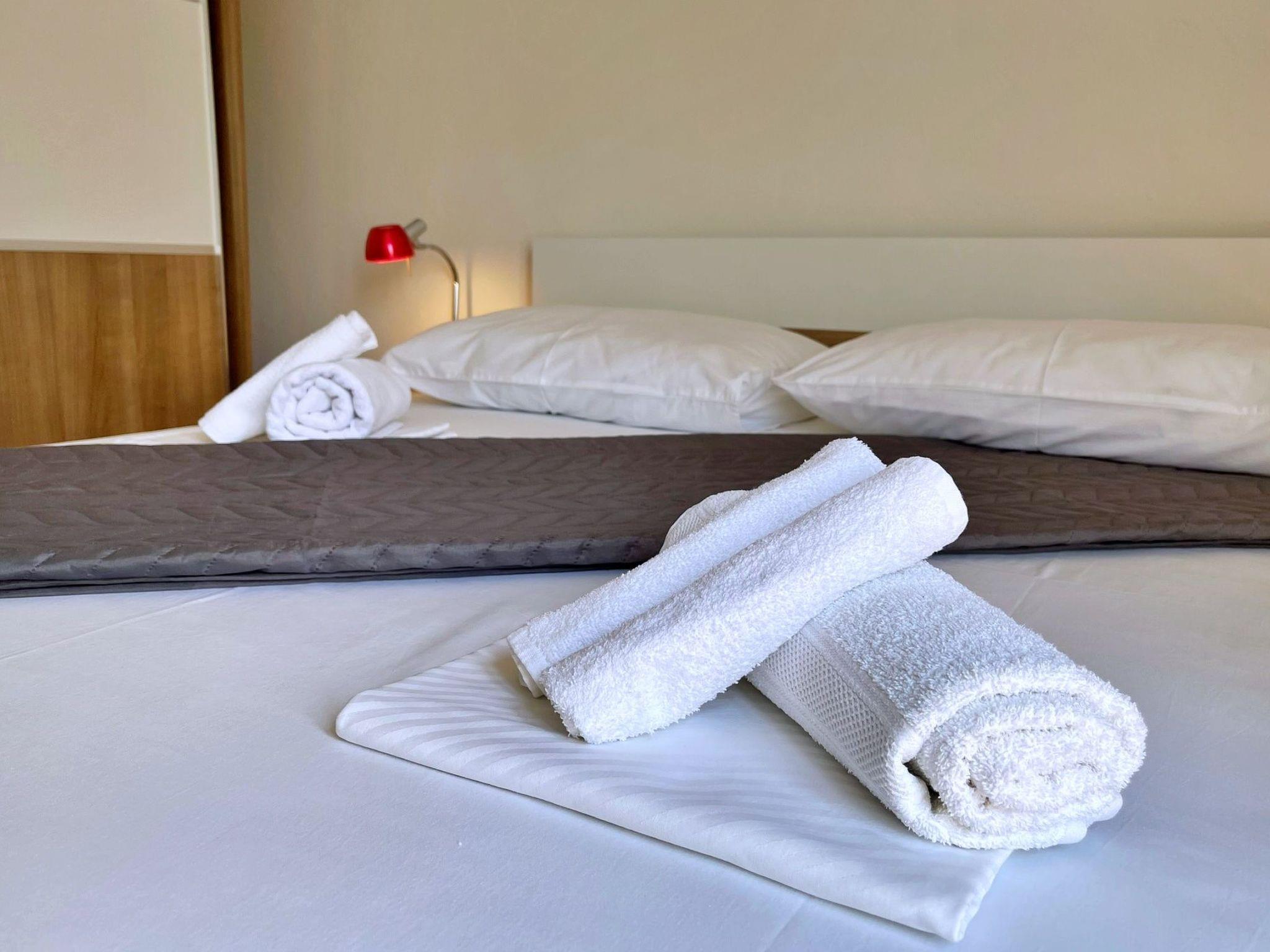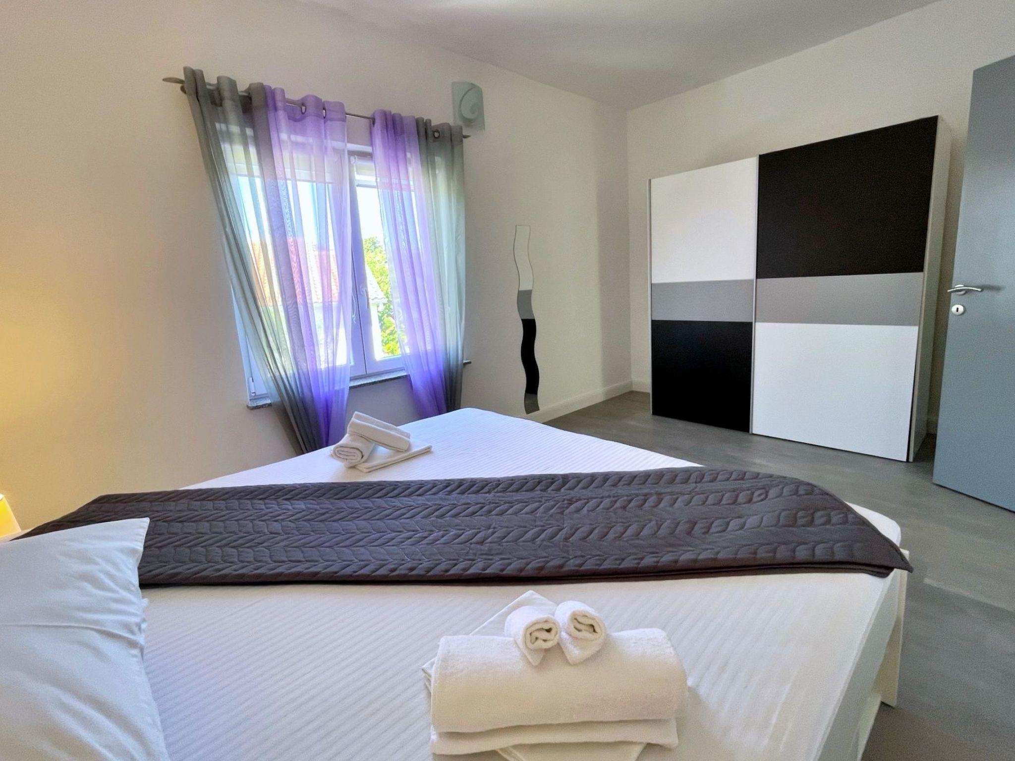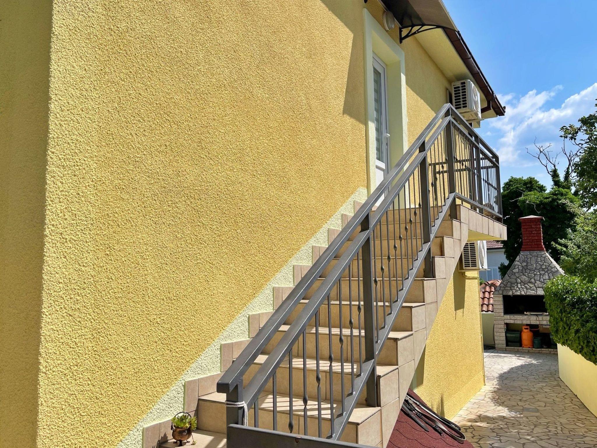 This modern three-bedroom flat is located 1.65 km from the sea. It has a fully equipped kitchen with gas/electric hob, oven, fridge with freezer compartment, coffee machine, kettle and dishwasher. The living room has a sofa, dining table, satellite TV, WiFi and air conditioning. The bedrooms have double beds and one of the bedrooms has a sea view and access to the terrace. The bathroom is equipped with a shower, toilet and bidet. Outside, you can relax on the 24 m2 terrace with sea and garden views. There is also a shared barbecue area on the ground floor in the courtyard. Bed linen and towels are provided and the owner also offers a laundry service for guests. A baby cot is available on request. A private car park is available in the courtyard. One dog is allowed in our flats without additional charge. Please let us know in advance if you are travelling with your pet - we will give you and your four-legged friend a warm welcome. The owner lives in the same house and is there for you if you need anything!