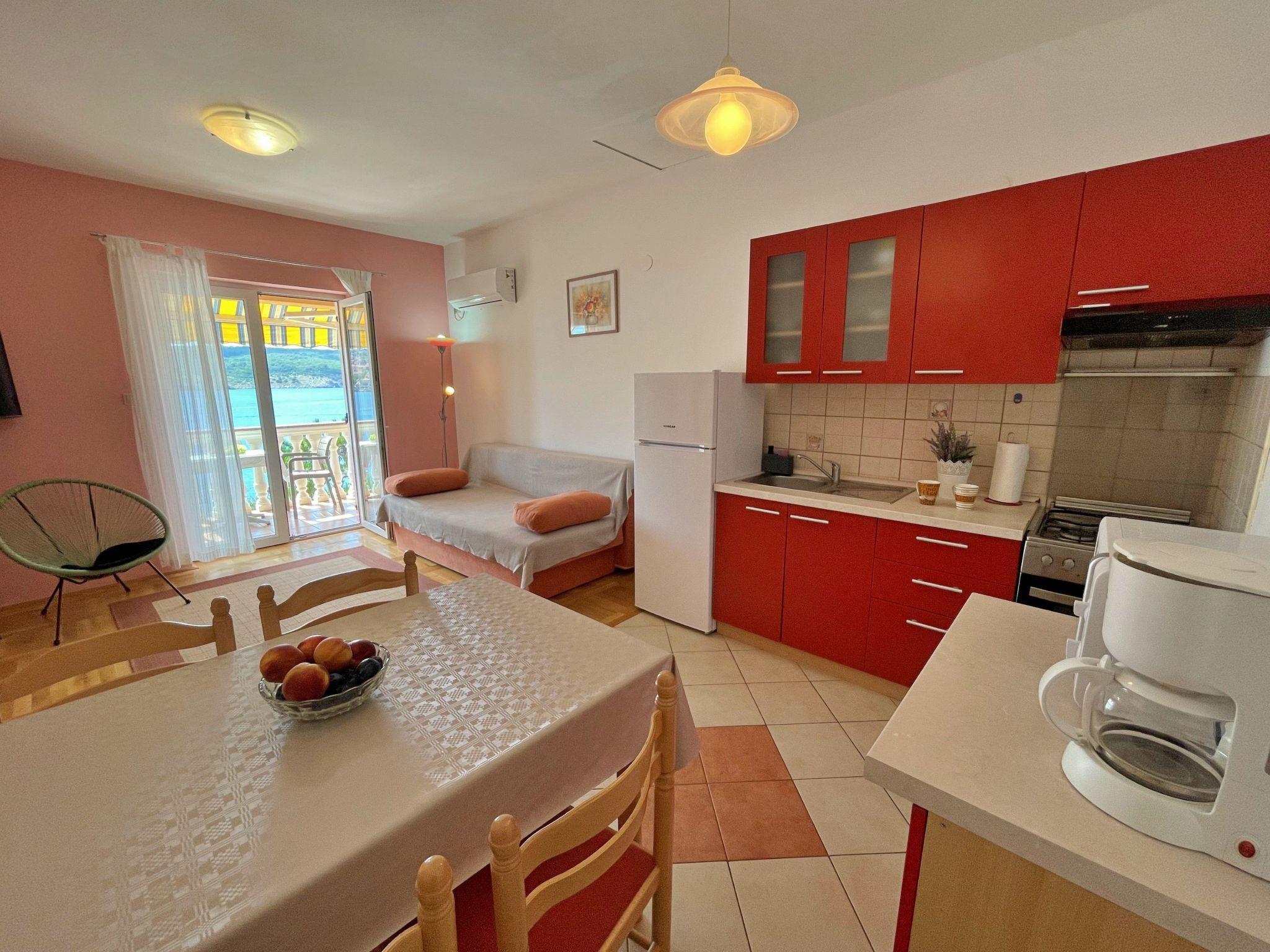 This cosy one-bedroom flat is located just 10 metres from the beach and offers a private balcony (6 m2) with wonderful views of the sea, the beach and the town. Guests have access to a barbecue, free Wi-Fi, a private car park and a shared outdoor shower. Air conditioning is available for an extra charge. The bedroom has a comfortable double bed and the living area has a sofa bed for an extra person. The open-plan kitchen, dining and living area includes an electric/gas hob (4 hotplates), fridge with freezer compartment, oven, microwave, coffee machine, kettle and toaster. The living area also has a pull-out sofa, satellite TV and direct access to the covered balcony. All windows are fitted with mosquito nets for added comfort. A baby cot or high chair is available on request prior to arrival (subject to availability).