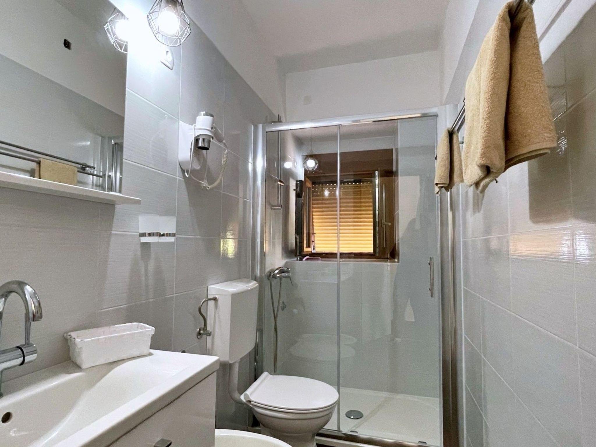 Enjoy a relaxing summer vacation in this charming seafront apartment, ideal for up to 4 guests. It features a bedroom with a queen bed and a convertible sofa for two in the living area. The bathroom includes a toilet, shower, and hairdryer. Located just 15 m from the sea and 500 m from the center, the apartment boasts a spacious 27 m2 roofed terrace with stunning sea views, a dining area, and BBQ facilities. Inside, the kitchen is fully equipped with an electric stove, fridge with freezer, coffee machine, kettle, toaster, microwave, and dishwasher. The living area has a sofa and satellite/cable TV. Additional amenities include Wi-Fi, air conditioning, and private parking. The apartment is located on the first floor, accessible via outdoor stairs. The owners live downstairs and are available for any assistance.