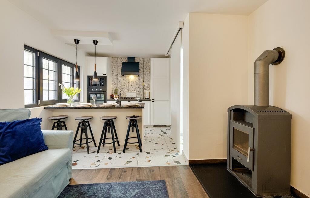 Tab kæben over den panoramiske udsigt over landskabet i dette børnevenlige hus med pool og spabad.