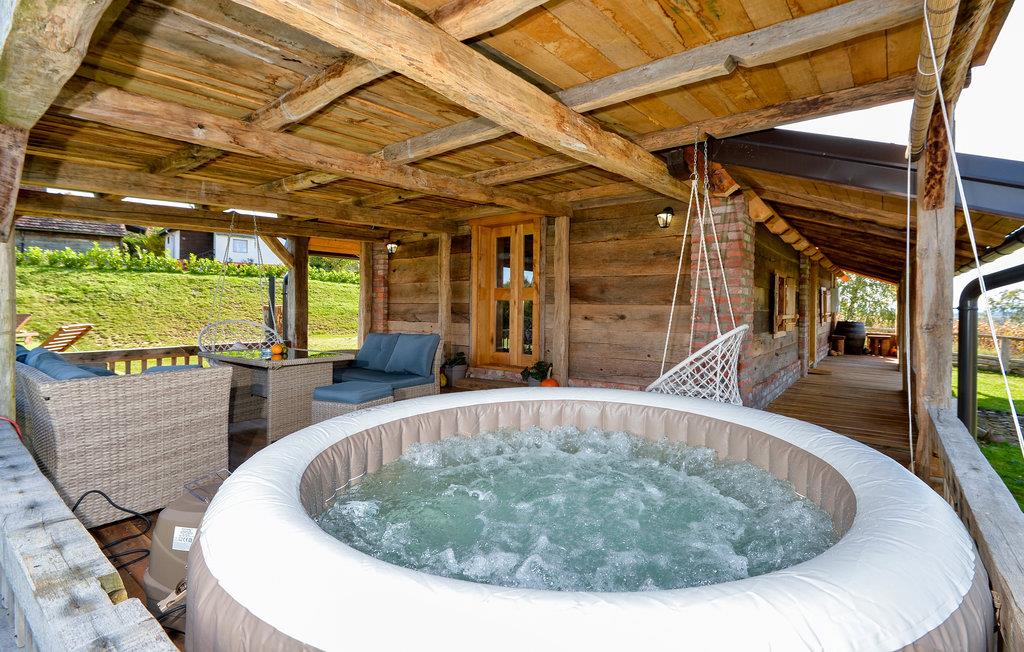 Udenfor er der masser af plads til at lege på den grønne grund. Eller tag en dukkert i poolen på varme dage med udsigt til omgivelserne. Den store veranda med komfortable havemøbler og spabad er også et skønt sted at slappe af.