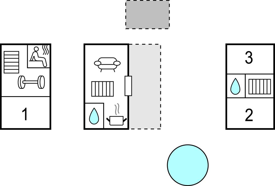 Badeværelse 4m2 (nr. 1) - WC. Varmt og koldt vand. Bruser
