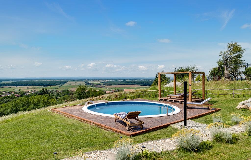 I haven finder I to store terrasser, hvorfra I kan beundre den flotte udsigt over landskabet. Forfrisk jer selv i poolen på varme dage og leg i haven med børnene.