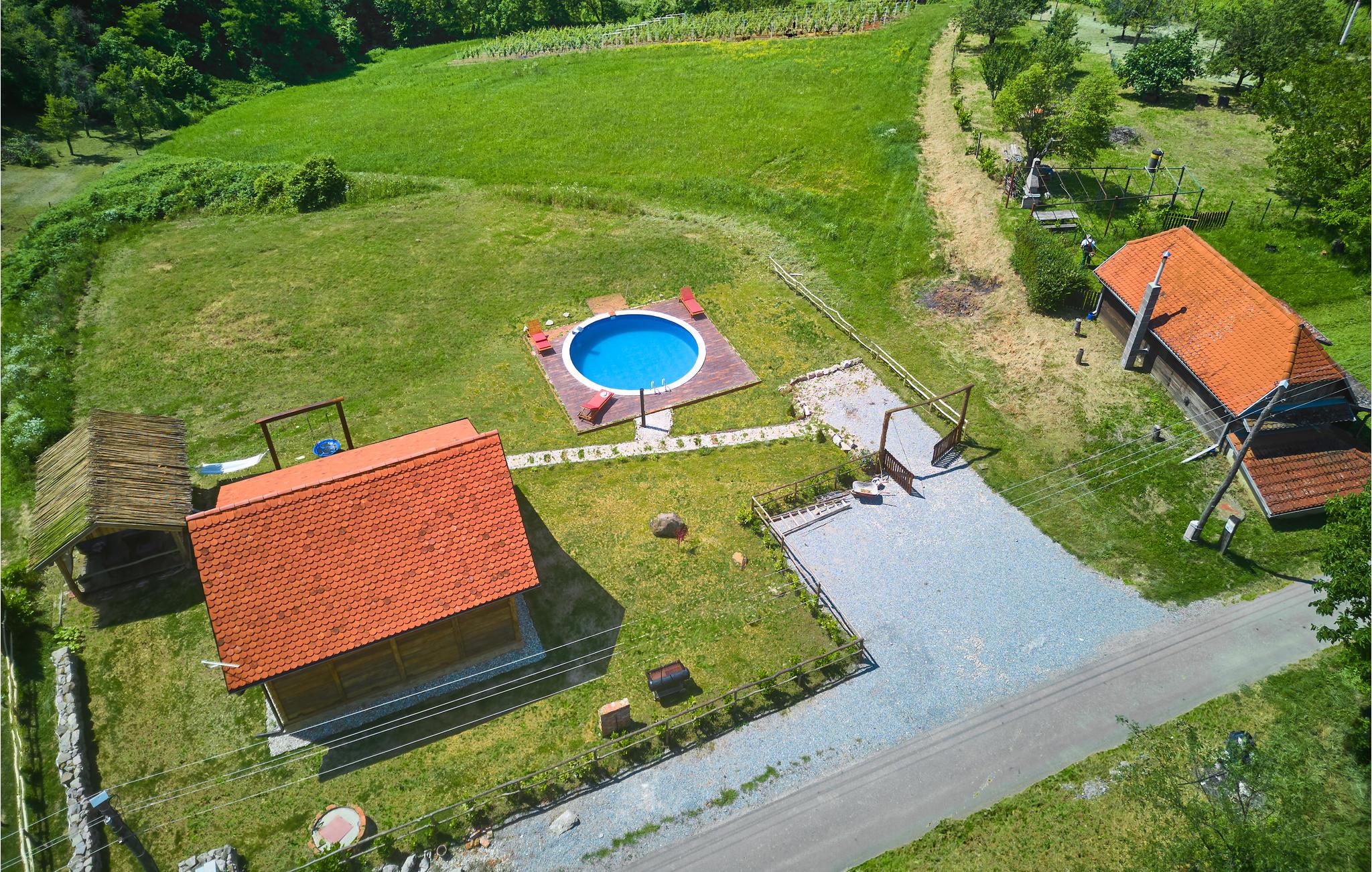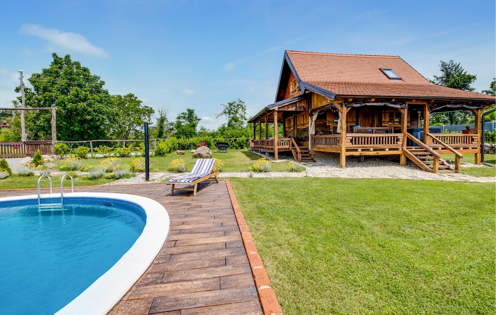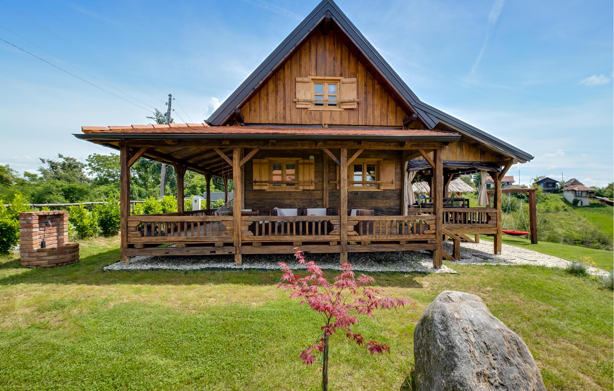 Beliggende i hjertet af Kroatien, ligger dette traditionelle træhus på en bakke med smuk udsigt over landskabet.