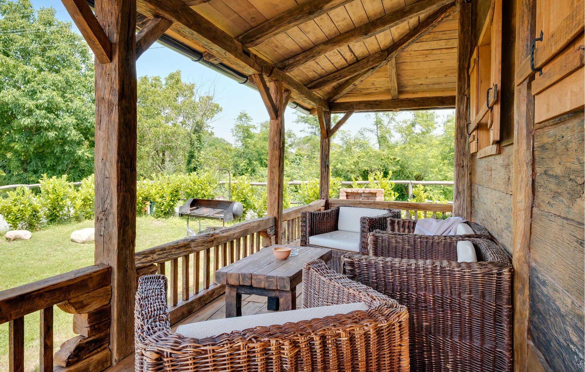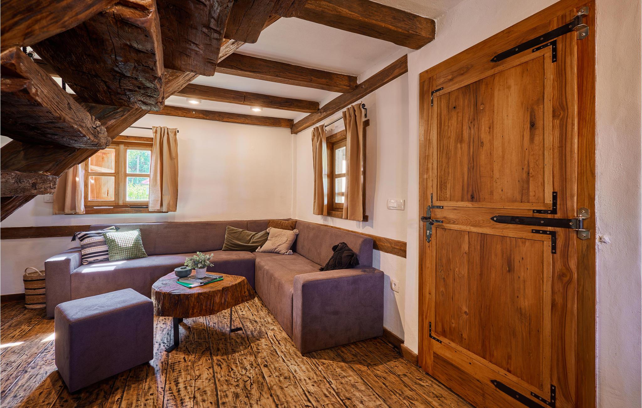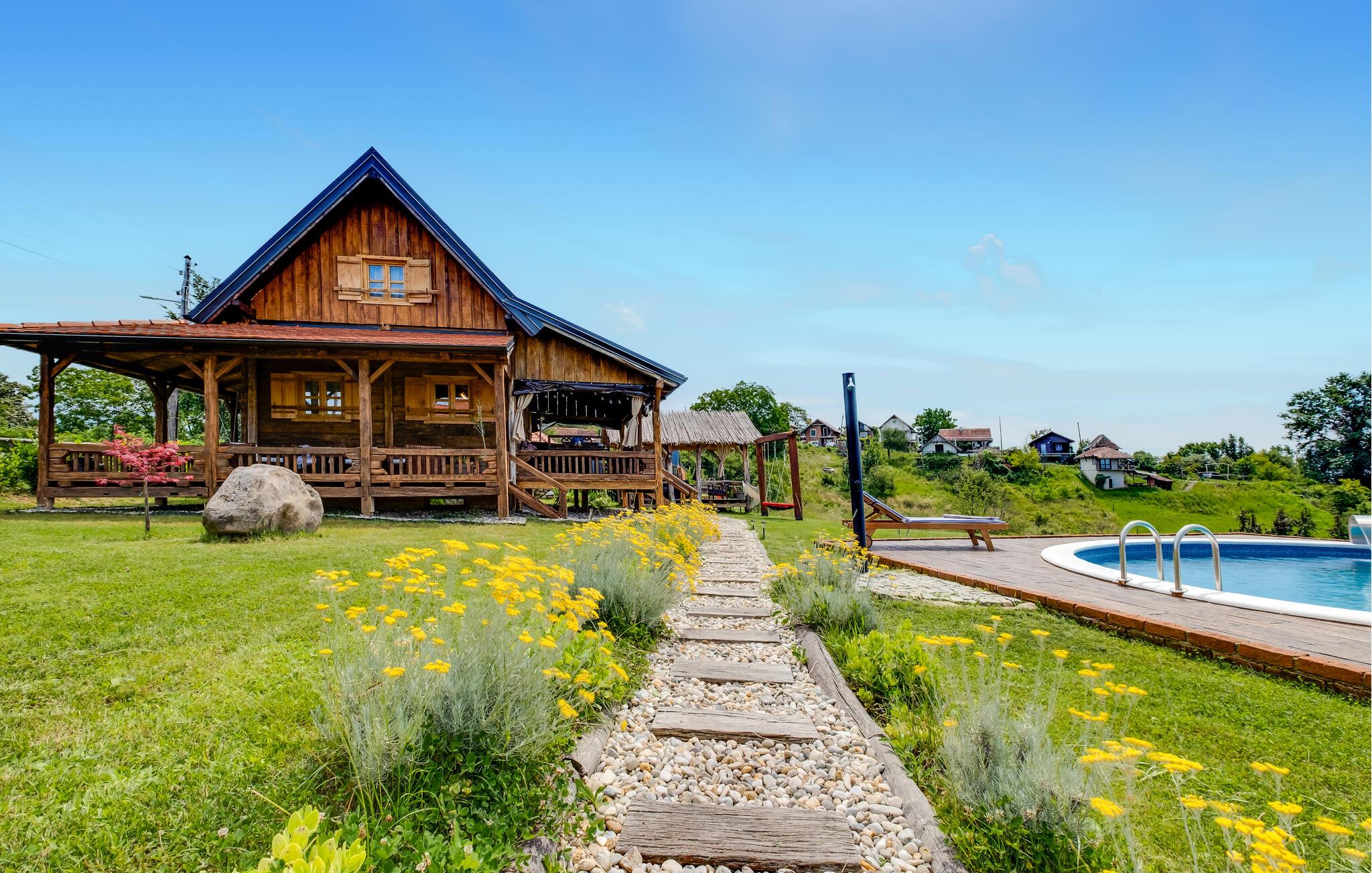 Beliggende i hjertet af Kroatien, ligger dette traditionelle træhus på en bakke med smuk udsigt over landskabet.