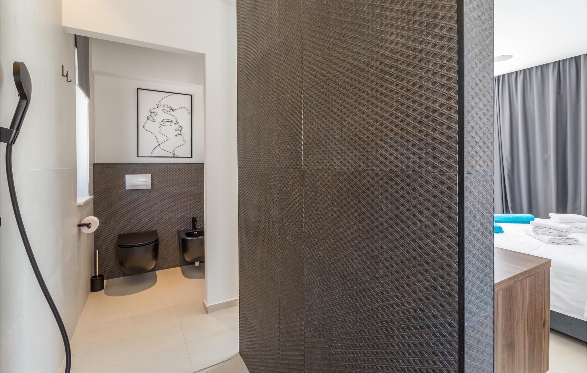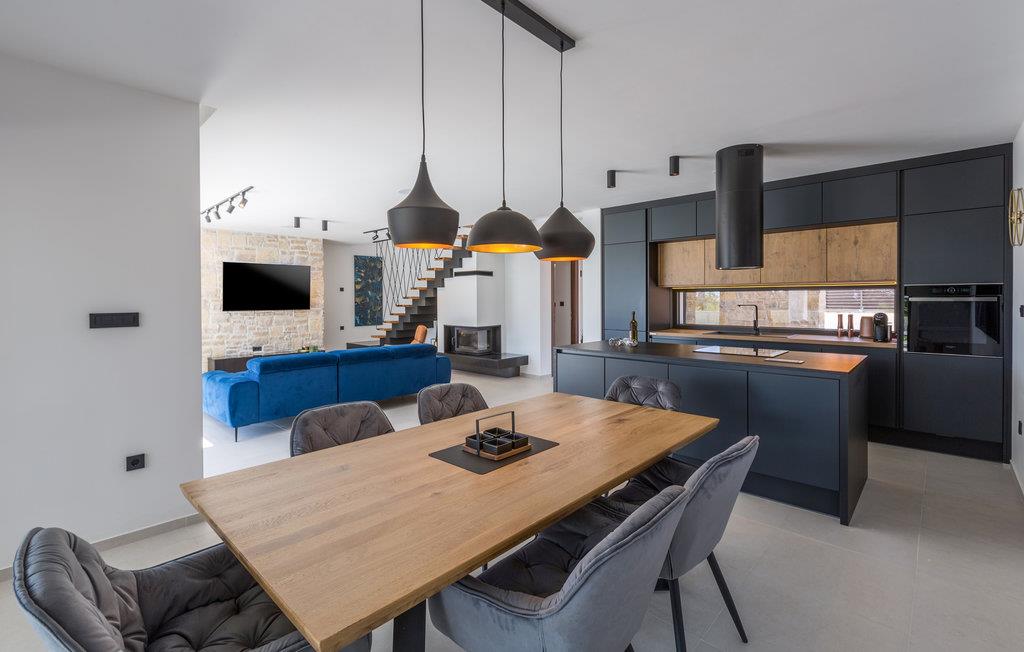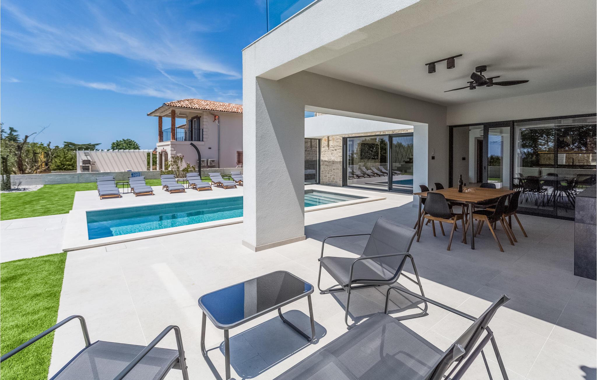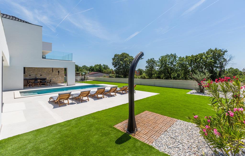 Dette smukke og moderne feriehus med swimmingpool byder velkommen i en forstad til Porec. Glæd jer til en afslappende ferie med venner eller jeres familie i dette smagfulde og rummelige hus i to etager. På to etager kan I tilbringe privatliv og timer sammen med at lave mad, lege og slappe af. På øverste etage kan I nyde komfortable en-suite soveværelser med adgang til store balkoner. Her kan I lave jeres yogaøvelser om morgenen eller få en kop kaffe i ro og mag. Den store stue i stueetagen bliver det centrale mødested, her kan I alle samles og træde ud på terrassen og haven. Afslut aftenen med grillretter og bad og solbad i poolen hele dagen lang. Oplev de smukke stenstrande ved kysten kun få kilometer fra jeres hus. Der er mange bugter her, hvor enhver feriegæst kan vælge deres egen yndlingsstrand. Fra Kosinozici kan I hurtigt nå den smukke havneby Porec, et populært sommerferiested med en historisk gammel bydel og en berømt basilika fra det 6. århundrede. For aktive feriegæster er der talrige muligheder for vandsport ved havet, men der er også meget at opdage inde i landet. Brug de mange cykel- og vandrestier i hjertet af Istrien og besøg for eksempel Baredine-grotten, som er kendt for sine drypstensformationer. God fornøjelse på Porec-halvøen!