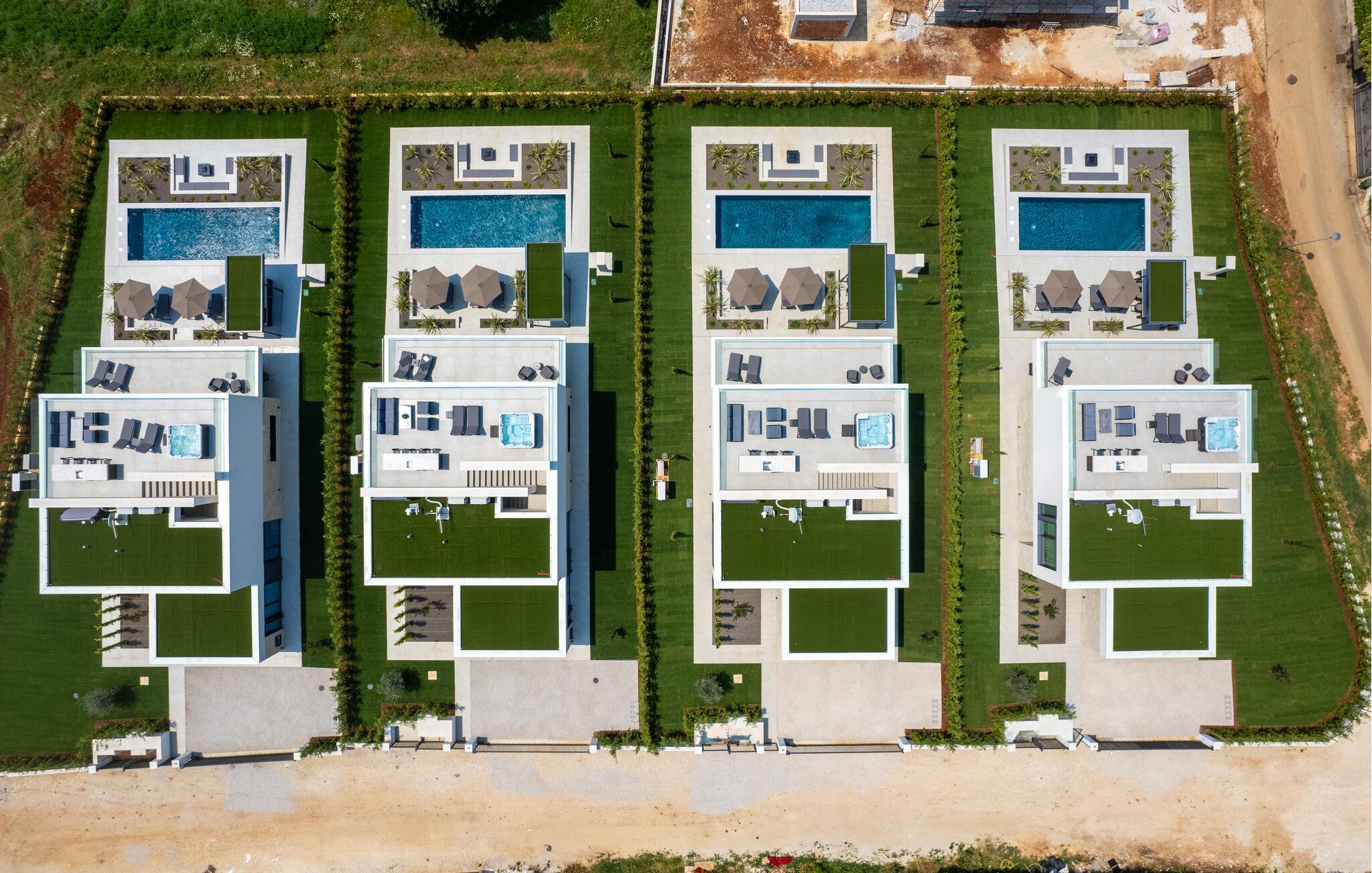 På tagterrassen venter der jer et spabad og et tekøkken med mulighed for at få kølet jeres drikkevarer ned, perfekt til afslappede aftener. Terrassen med det overdækkede sommerkøkken og den tilstødende pool med solterrasse indbyder til afslapning. En sauna og et bålsted byder på endnu mere afslapning og hyggelige stunder.