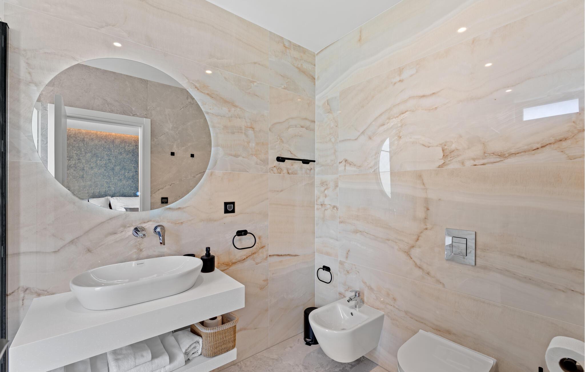 Velkommen til jeres drømmeferie. Denne toetagers villa byder på en stilfuld indretning og moderne faciliteter. Højkvalitetsmaterialer, et udvalgt design og sans for detaljer skaber en atmosfære af ro og afslapning i dette feriehus. De mange værelser inviterer jer til at nyde lidt privatliv, eller I kan samles i det åbne opholdsrum i stueetagen. De rummelige soveværelser med eget badeværelse sørger for maksimal komfort.