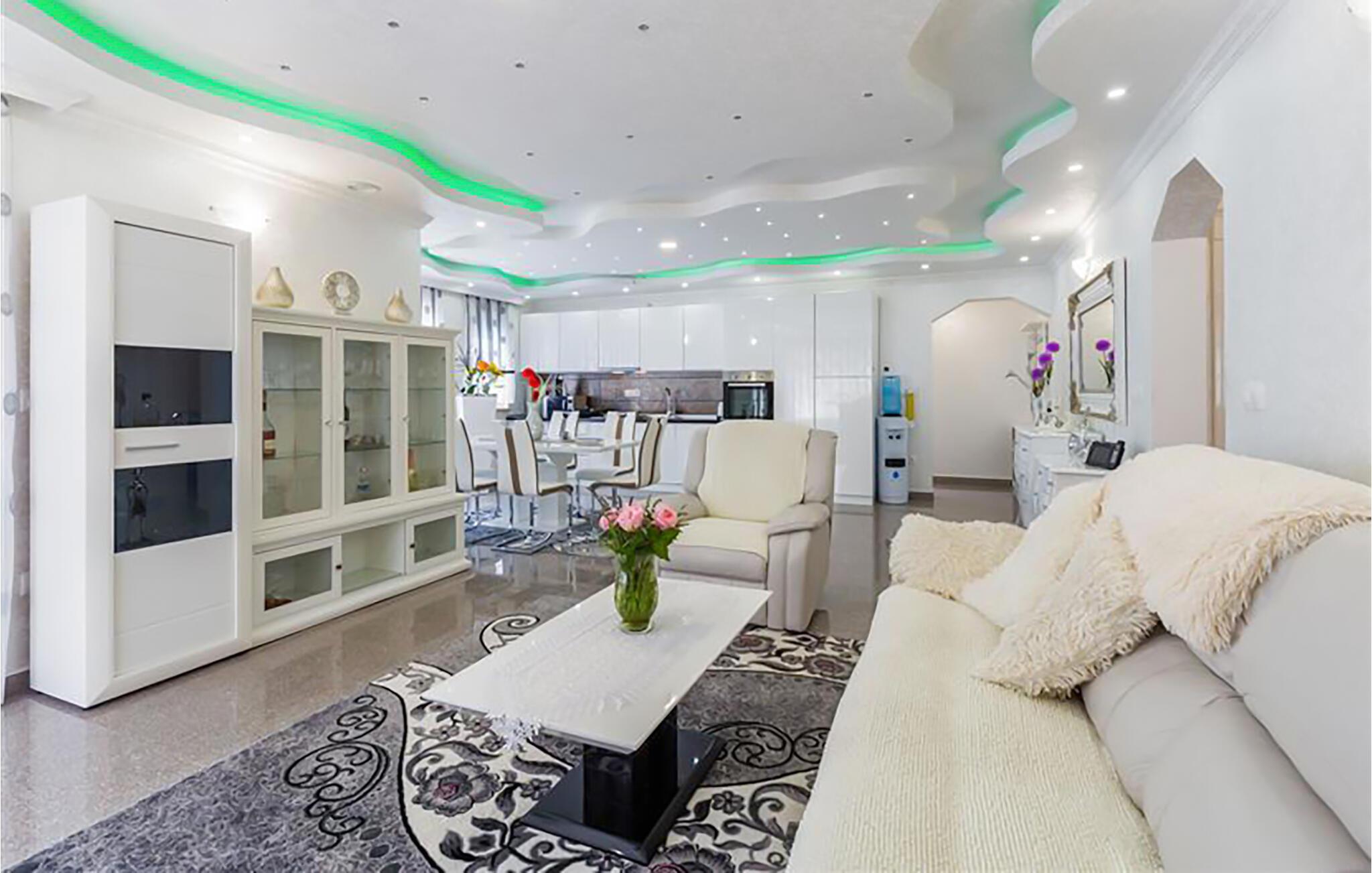 Dette hus har som noget helt særligt en moderne og indbydende atmosfære. Diskrete farver, blomstermønstrede tæpper og buede lofter skaber en atmosfære, hvor I kan nyde både stil og komfort. Slap af med en kop kaffe og nyd lækre måltider til jer selv og familien i det moderne, fuldt udstyrede køkken.