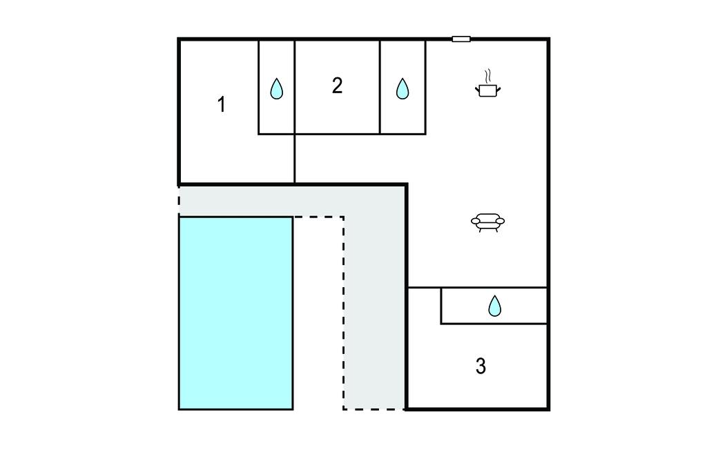 Træd udenfor og nyd luksusen ved den private pool, som er direkte tilgængelig fra terrassen. Læg jer på en af ??liggestolene og læn jer tilbage i solen. Brug det overdækkede område til den første kop kaffe om morgenen eller tilbring aftenen her med et glas vin. Smuk havudsigt venter jer på første sal.