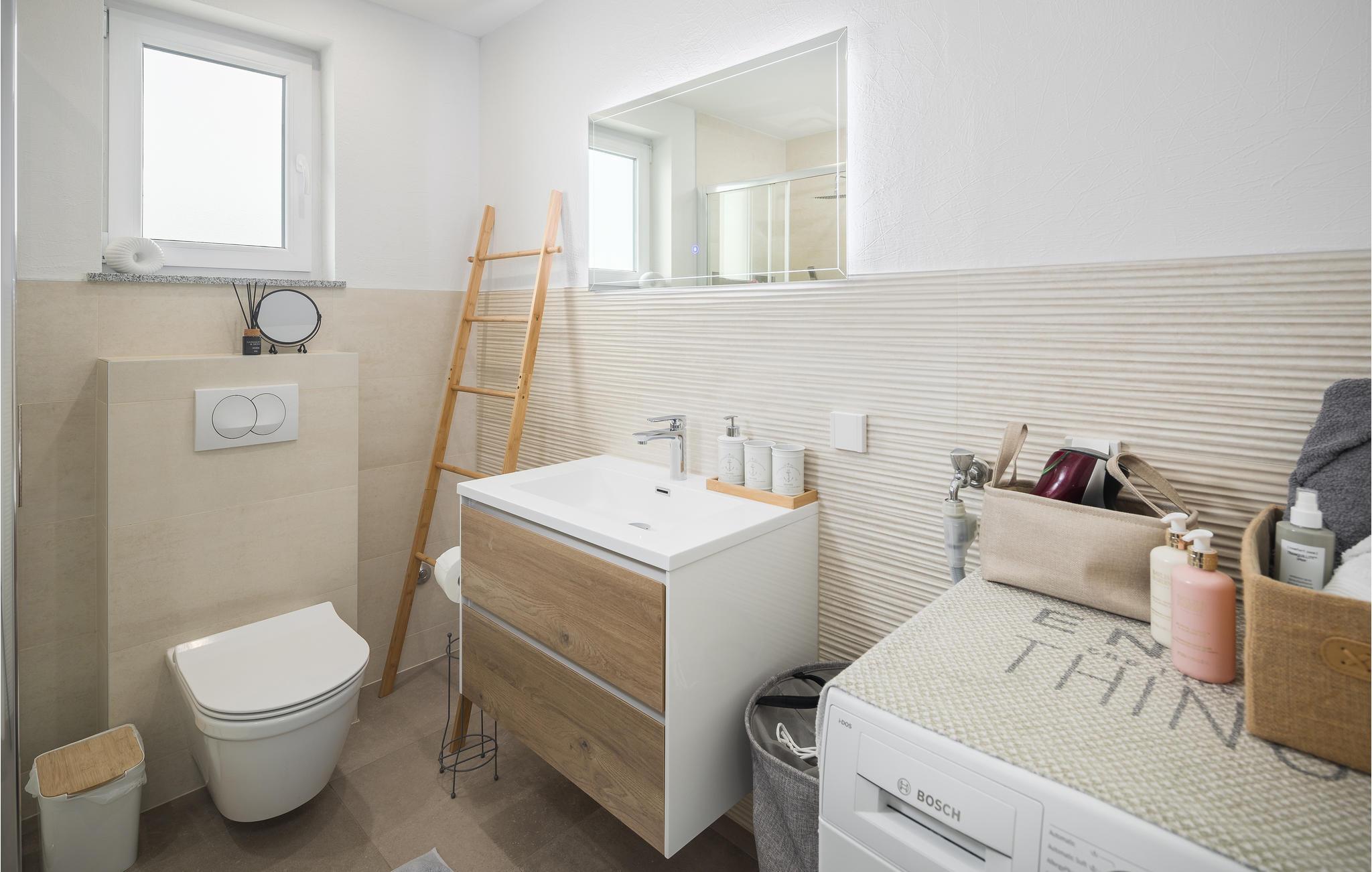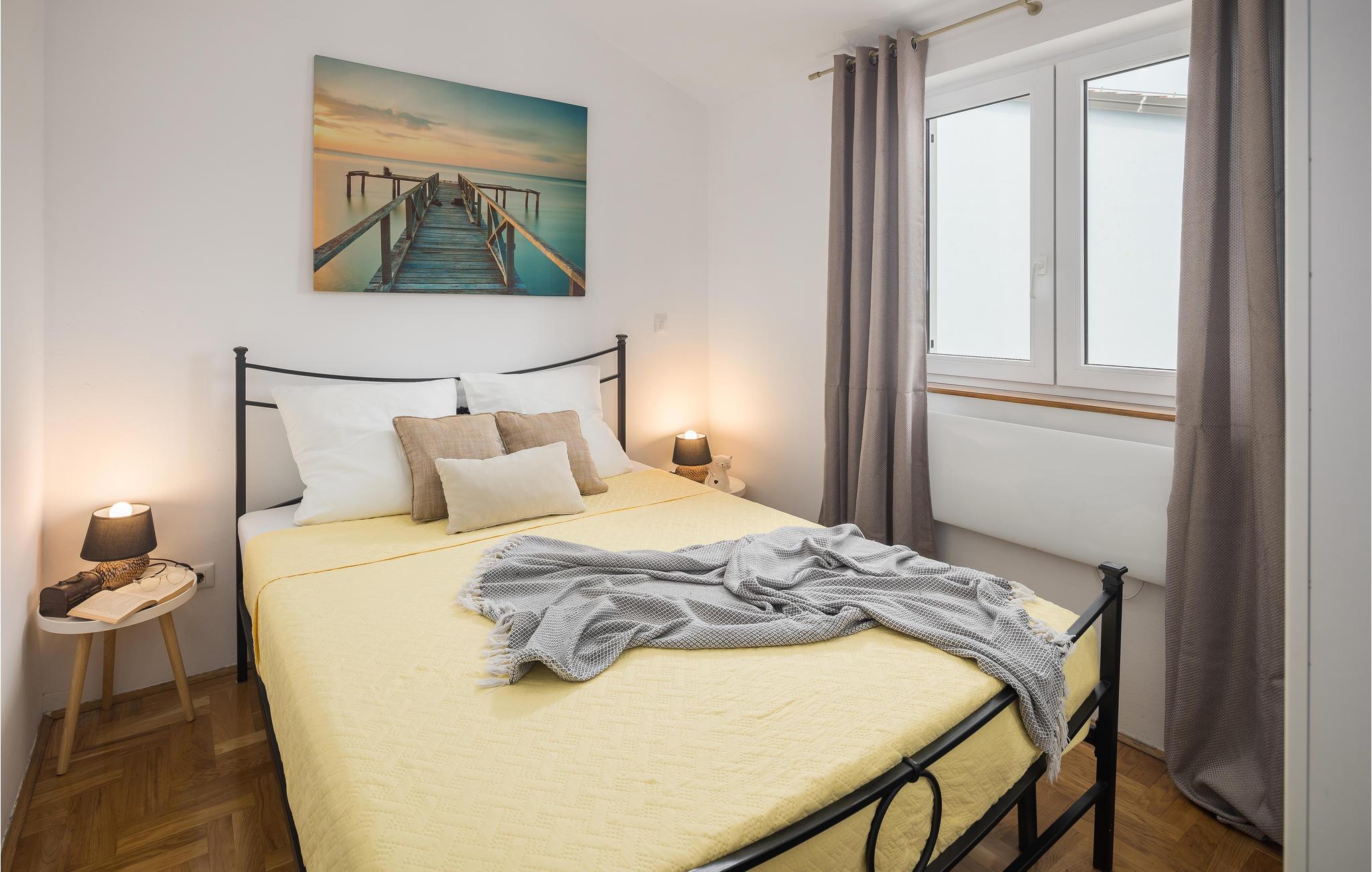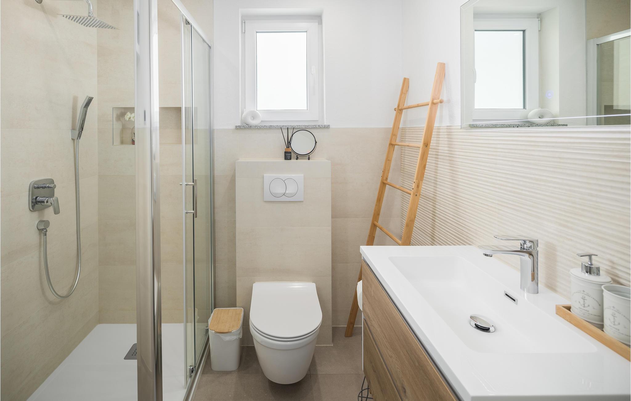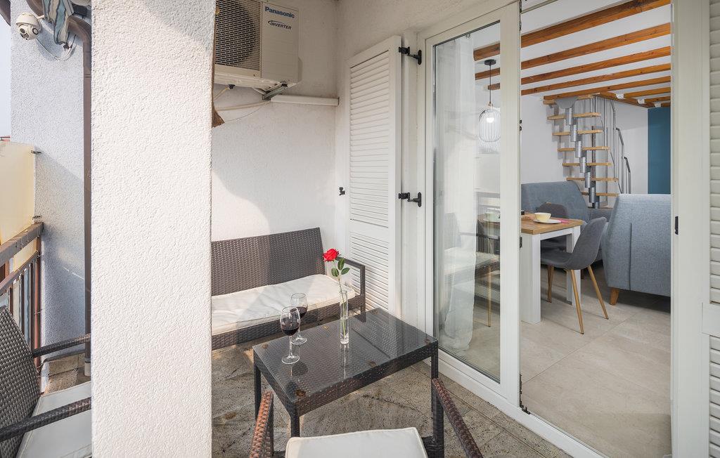 Denne skønne bolig i to etager byder velkommen i et hus med flere lejligheder. I indretningen af den hyggelige lejlighed er der lagt vægt på kvalitet og behagelig atmosfære. Efter lange dage ved havet eller udforskning af halvøen Istrien kan I føle jer godt tilpas på sofaerne, se en underholdende film eller spille kort. I kan nyde jeres yndlingsretter på balkonen og få et glimt af havet.