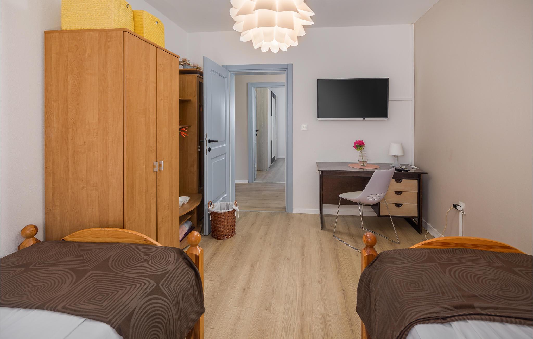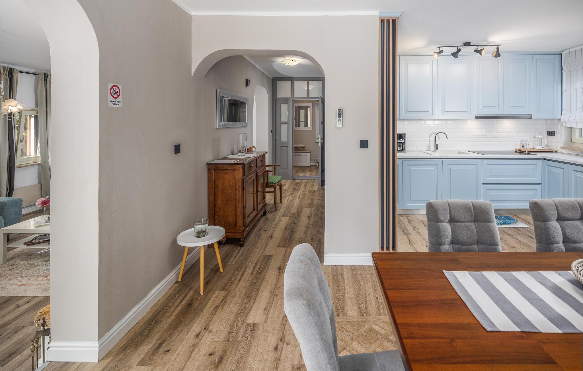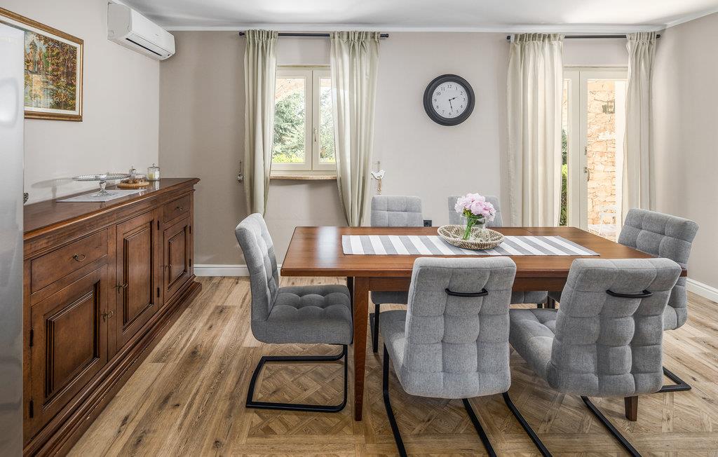 Dette komfortable og rummelige feriehus ligger i en forstad til Porec. Velkommen til dette smukke hus, som byder dig velkommen med individuelt tiltalende værelser og tilbyder dig de ideelle rammer for din afslapning. Du kan hygge dig i to etager og finde dig tilpas i den smagfulde sofa. Se en film sammen om aftenen eller nyd lune sommeraftener på den overdækkede terrasse og den skønne have, der udover poolen også byder på mange muligheder for at lege. Oplev de smukke stenstrande ved kysten kun få kilometer fra dit hus. Der er mange bugter her, hvor enhver feriegæst kan vælge deres egen yndlingsstrand. Fra Zbandaj kan du hurtigt nå den smukke havneby Porec, et populært sommerferiested med en historisk gammel bydel og en berømt basilika fra det 6. århundrede. For aktive feriegæster er der talrige muligheder for vandsport ved havet, men der er også meget at opdage inde i landet. Brug de mange cykel- og vandrestier i hjertet af Istrien og besøg for eksempel Baredine-grotten, som er kendt for sine drypstensformationer. God fornøjelse på halvøen Istrien.