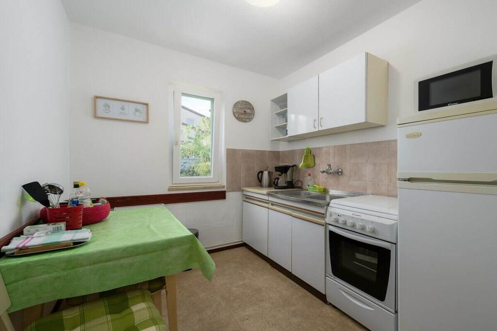Den består af et lille køkken, et badeværelse med bruser og fire soveværelser. Et soveværelse - et familieværelse - består af en dobbeltseng og en køjeseng og har et ensuite badeværelse med bruser, det andet soveværelse har en dobbeltseng og et ensuite bruser, det tredje soveværelse har en dobbeltseng, og det fjerde soveværelse har to enkeltsenge. Foran huset er der en overdækket terrasse med bord og stole med udsigt over haven.