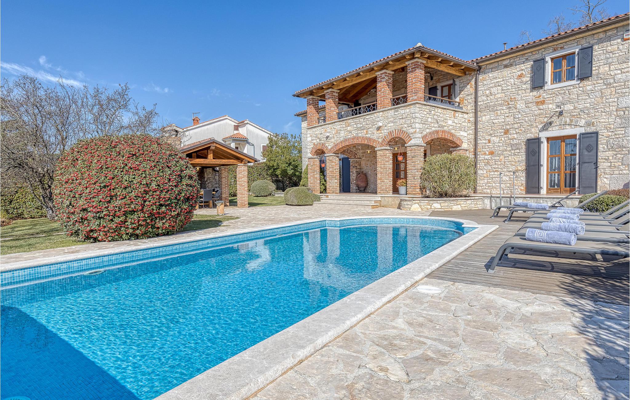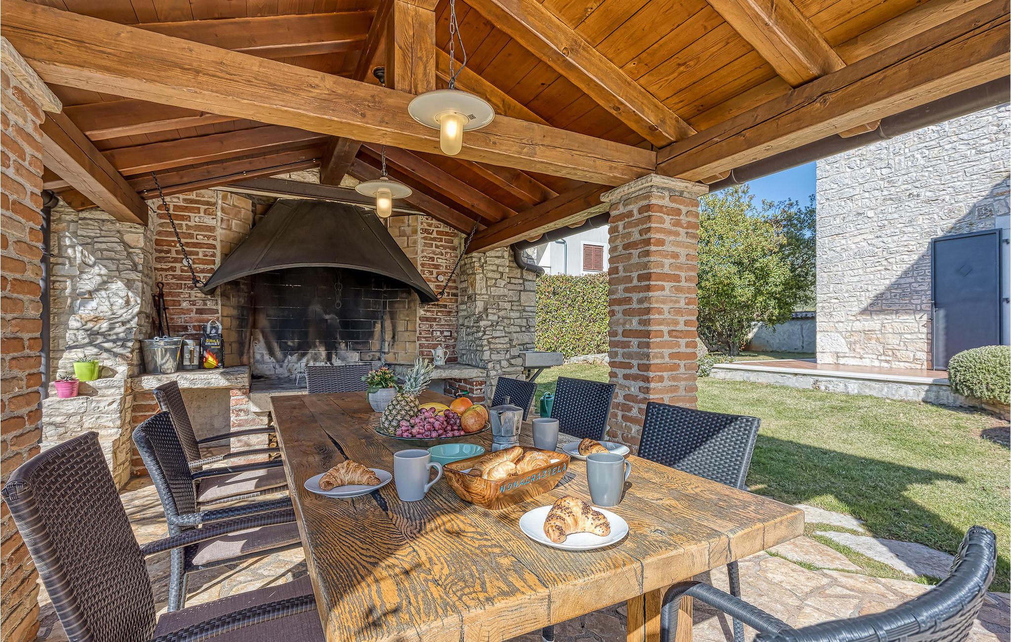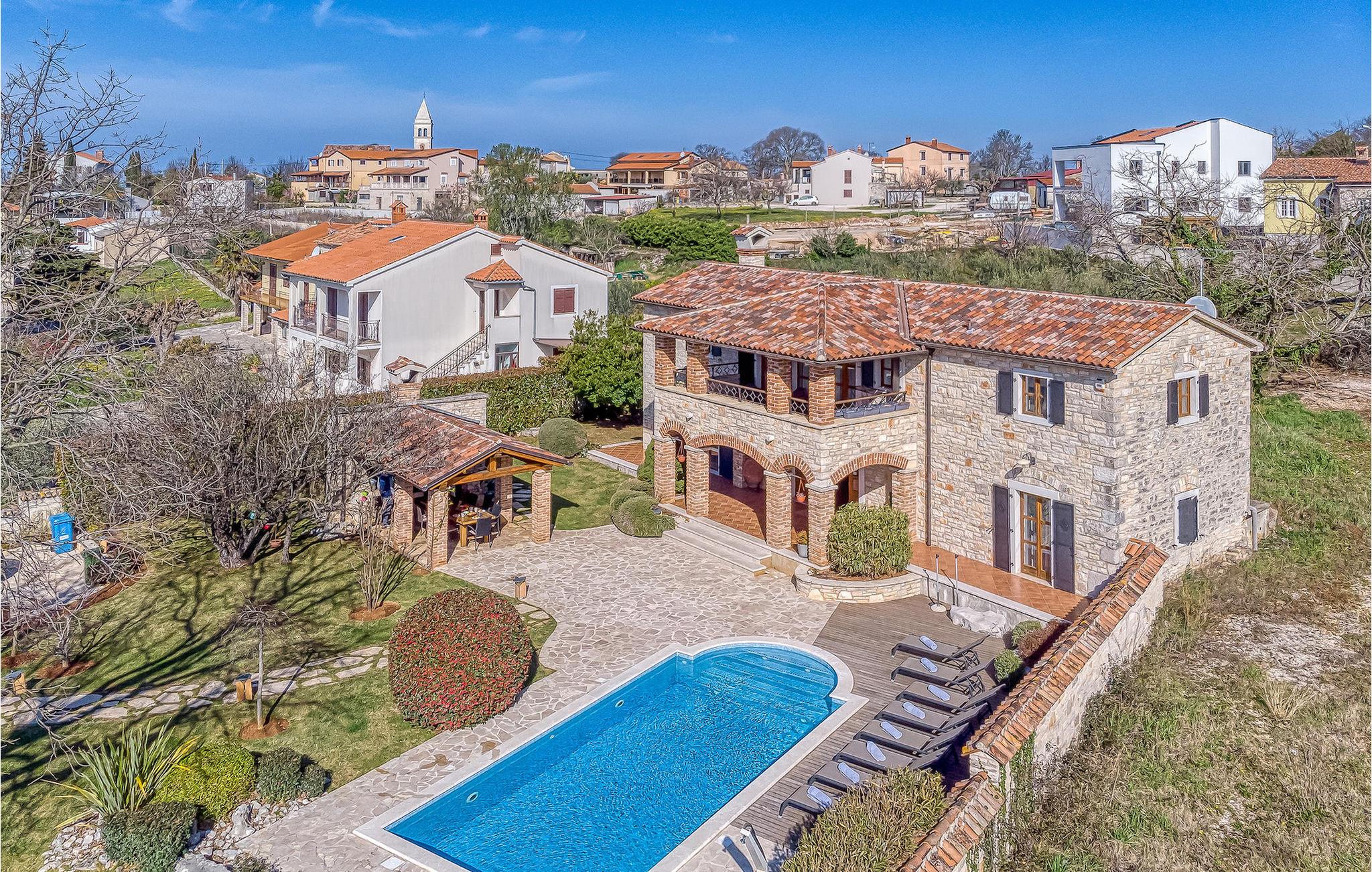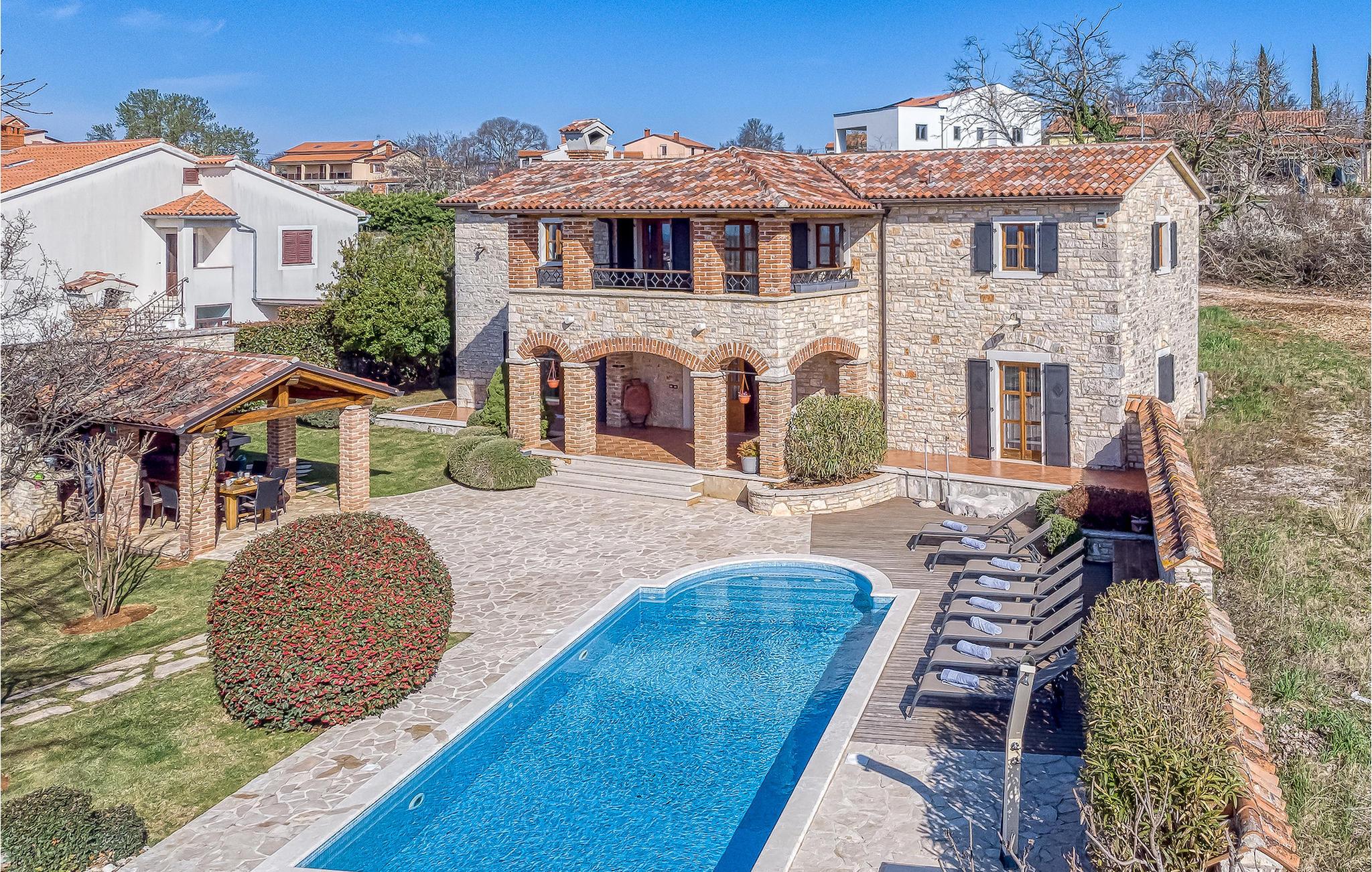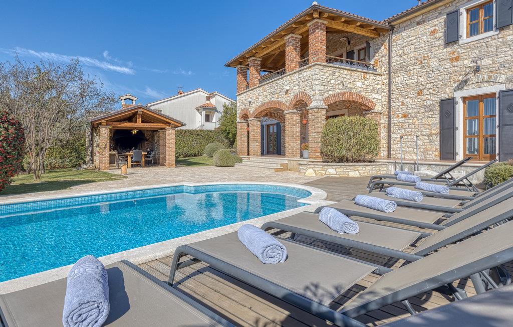 Villa Graziella er en traditionel istrisk ædelsten beliggende i landsbyen Baderna nær Porec. Huset er bygget i 1905 og totalrenoveret i 2008, uden at miste sin karakter. Du vil blive imponeret over det ydre med en omhyggeligt plejet have og den store pool. Et perfekt landskab til at få en kølig drink, ligge på en af solsengene og se børnene lege. Den overdækkede udendørs spiseplads med grill får dig straks til at drømme om frisklavede lækre måltider. Men lad os gå indenfor... Stueetagen har en hyggelig stue med pejs og et køkken med spiseplads til op til 8 gæster. Alt er holdt i en meget varm og rustik stil - giver dig en følelse af hjem. På samme etage finder du et soveværelse med eget badeværelse. Trætrapper fører til de 3 hyggelige soveværelser med moderne ensuite badeværelser på første sal. Et af soveværelserne har udgang til den smukke altan, hvor du kan nyde en stille morgenkaffe eller blot slappe af, mens du læser din yndlingsbog. Baderna er en charmerende istrisk, malerisk landsby nær byen Porec, Adriaterhavets berømte og prisbelønnede mesterperle. Baderna ligger 10 kilometer fra havet, isoleret fra byernes sus, samtidig med at det er strategisk beliggende nær krydset mellem de vigtigste turistruter i Istrien. Alt hvad du behøver er der: posthus, en købmand, en tankstation og et par restauranter. Istriske turistperler: Opatija, Rovinj, Pula, Trieste, Koper, Piran, Portoroz, Umag og Novigrad er mindre end en time væk, så du skal kun vælge, om du vil slappe af omgivet af olivenlunde og vinmarker, nyde den istriske eno-gastronomi delikatesser, eller gå på opdagelse i omgivelserne. Huset er perfekt for familier til at nyde en fantastisk ferie i et roligt sted, men ikke for langt væk fra seværdigheder, strande og attraktioner. En bil anbefales.
