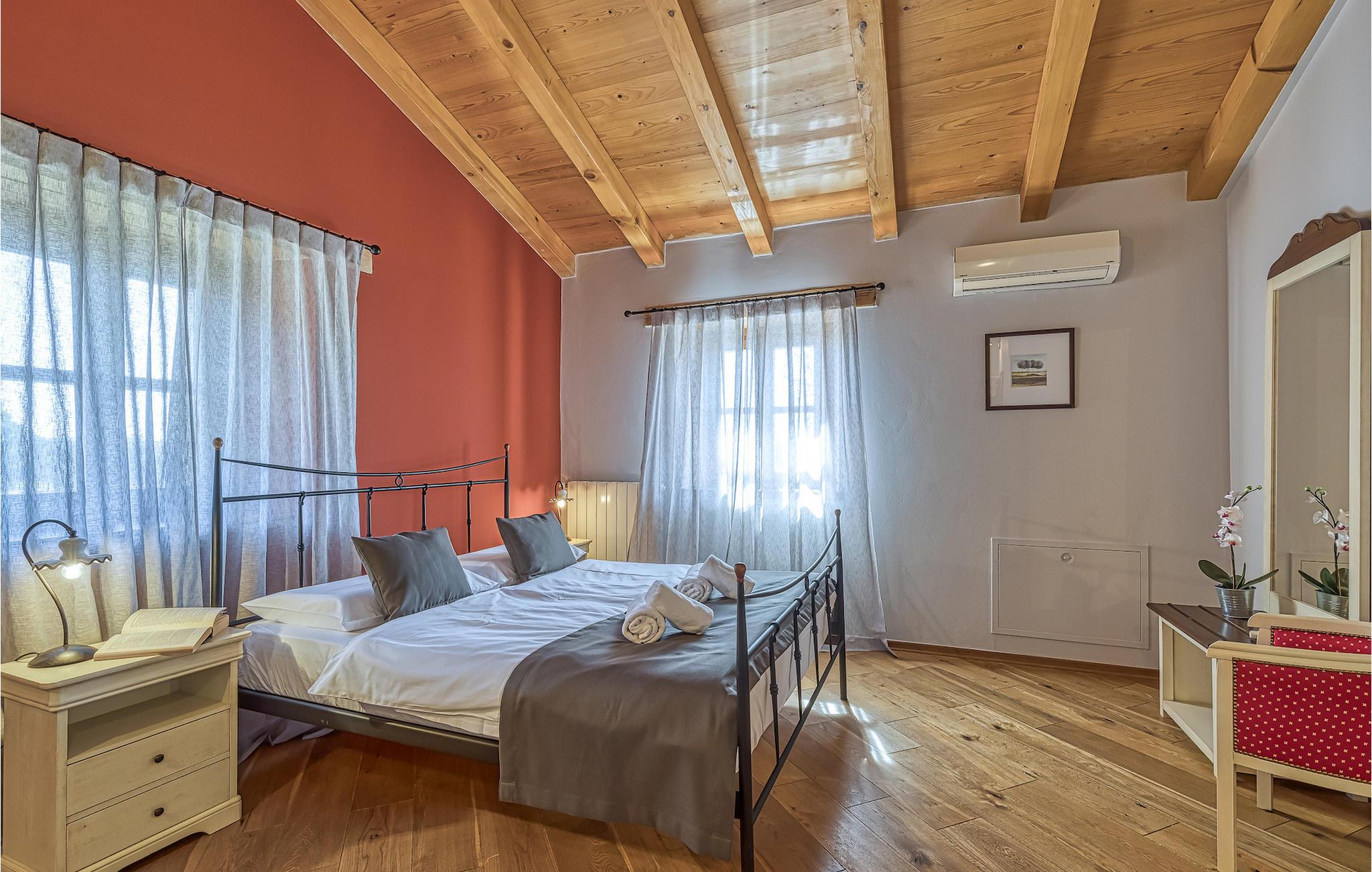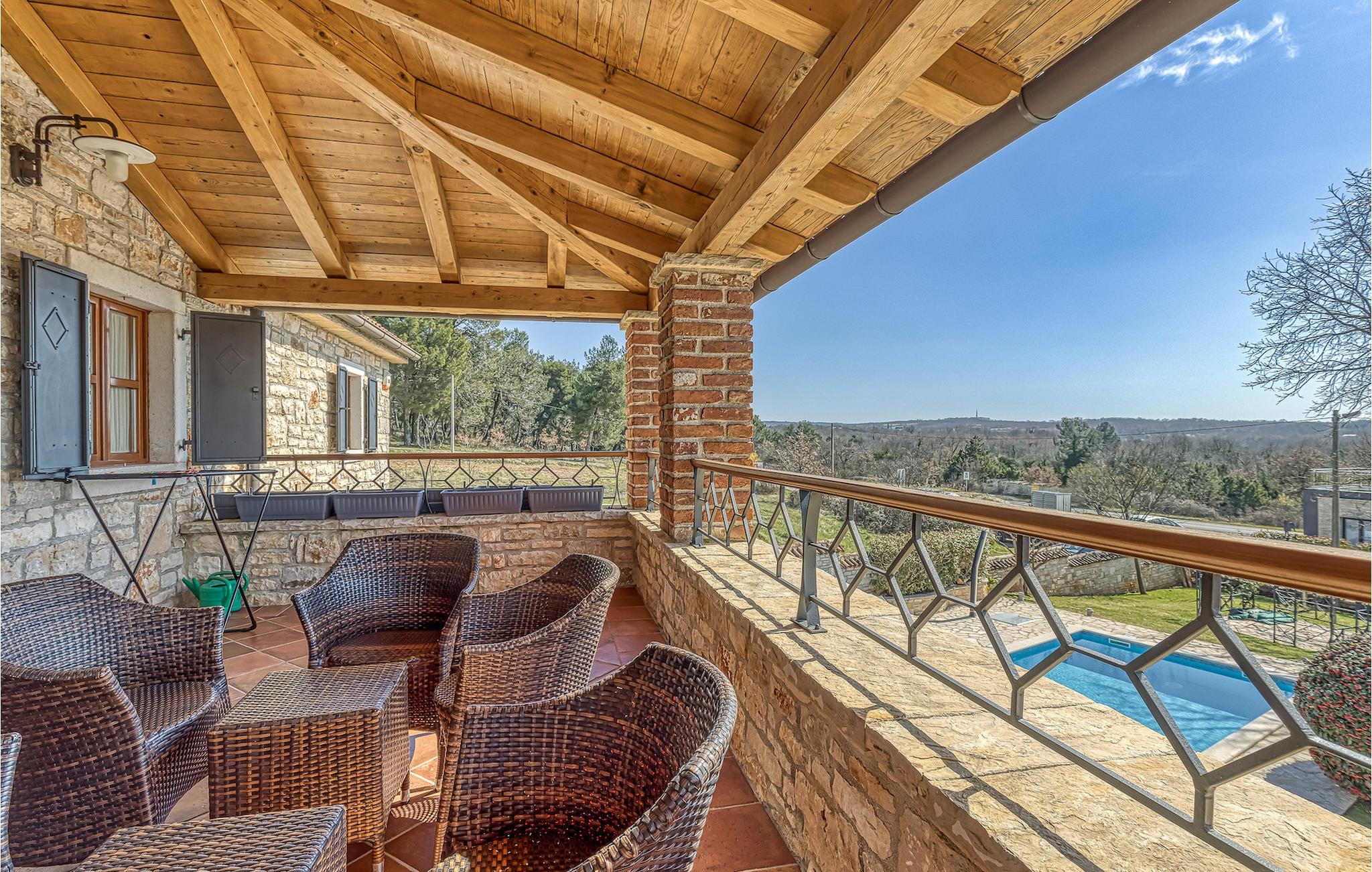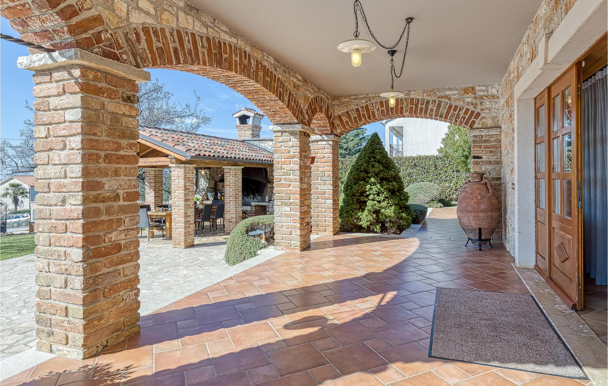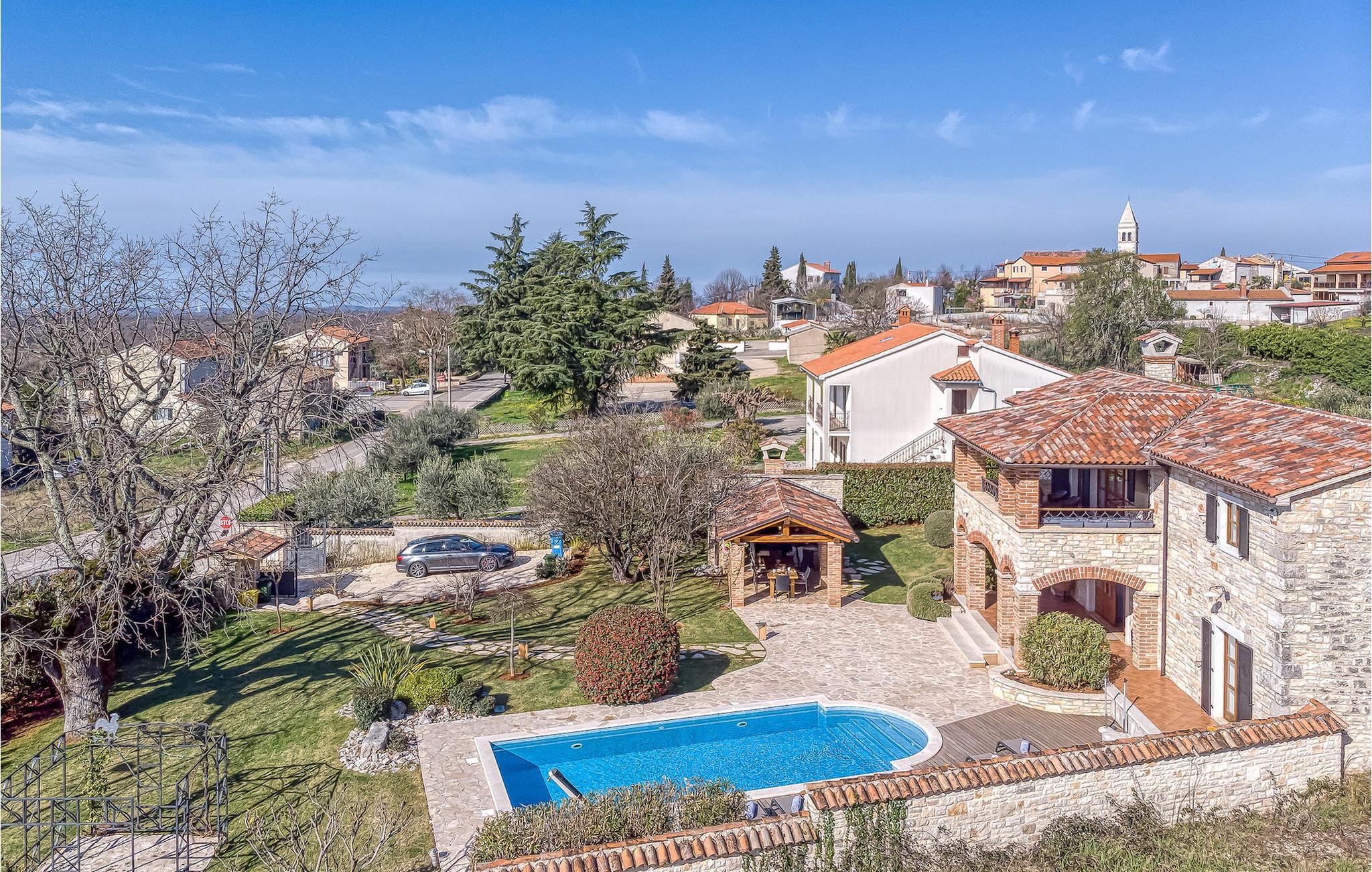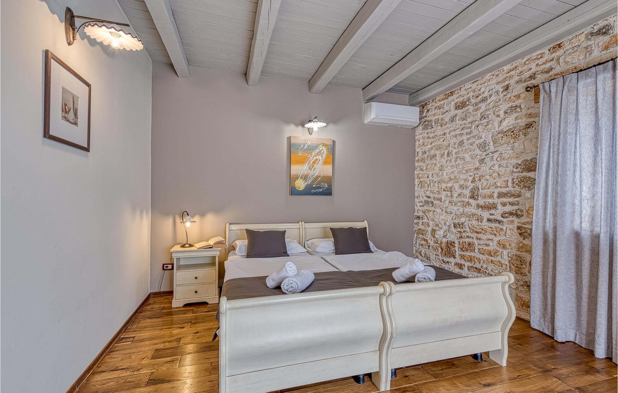 Villa Graziella er en traditionel istrisk ædelsten beliggende i landsbyen Baderna nær Porec. Huset er bygget i 1905 og totalrenoveret i 2008, uden at miste sin karakter. Du vil blive imponeret over det ydre med en omhyggeligt plejet have og den store pool. Et perfekt landskab til at få en kølig drink, ligge på en af solsengene og se børnene lege. Den overdækkede udendørs spiseplads med grill får dig straks til at drømme om frisklavede lækre måltider. Men lad os gå indenfor... Stueetagen har en hyggelig stue med pejs og et køkken med spiseplads til op til 8 gæster. Alt er holdt i en meget varm og rustik stil - giver dig en følelse af hjem. På samme etage finder du et soveværelse med eget badeværelse. Trætrapper fører til de 3 hyggelige soveværelser med moderne ensuite badeværelser på første sal. Et af soveværelserne har udgang til den smukke altan, hvor du kan nyde en stille morgenkaffe eller blot slappe af, mens du læser din yndlingsbog. Baderna er en charmerende istrisk, malerisk landsby nær byen Porec, Adriaterhavets berømte og prisbelønnede mesterperle. Baderna ligger 10 kilometer fra havet, isoleret fra byernes sus, samtidig med at det er strategisk beliggende nær krydset mellem de vigtigste turistruter i Istrien. Alt hvad du behøver er der: posthus, en købmand, en tankstation og et par restauranter. Istriske turistperler: Opatija, Rovinj, Pula, Trieste, Koper, Piran, Portoroz, Umag og Novigrad er mindre end en time væk, så du skal kun vælge, om du vil slappe af omgivet af olivenlunde og vinmarker, nyde den istriske eno-gastronomi delikatesser, eller gå på opdagelse i omgivelserne. Huset er perfekt for familier til at nyde en fantastisk ferie i et roligt sted, men ikke for langt væk fra seværdigheder, strande og attraktioner. En bil anbefales.