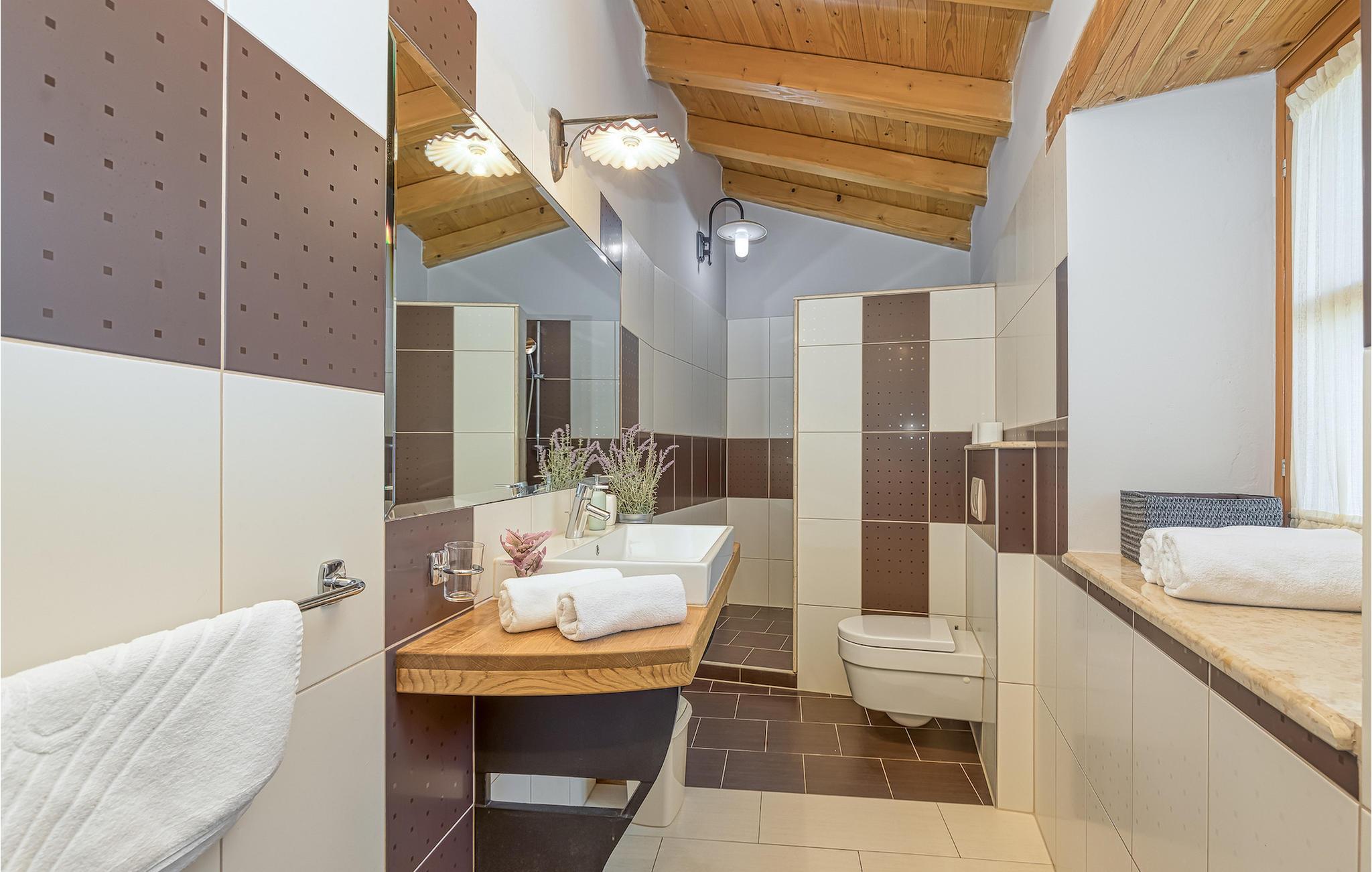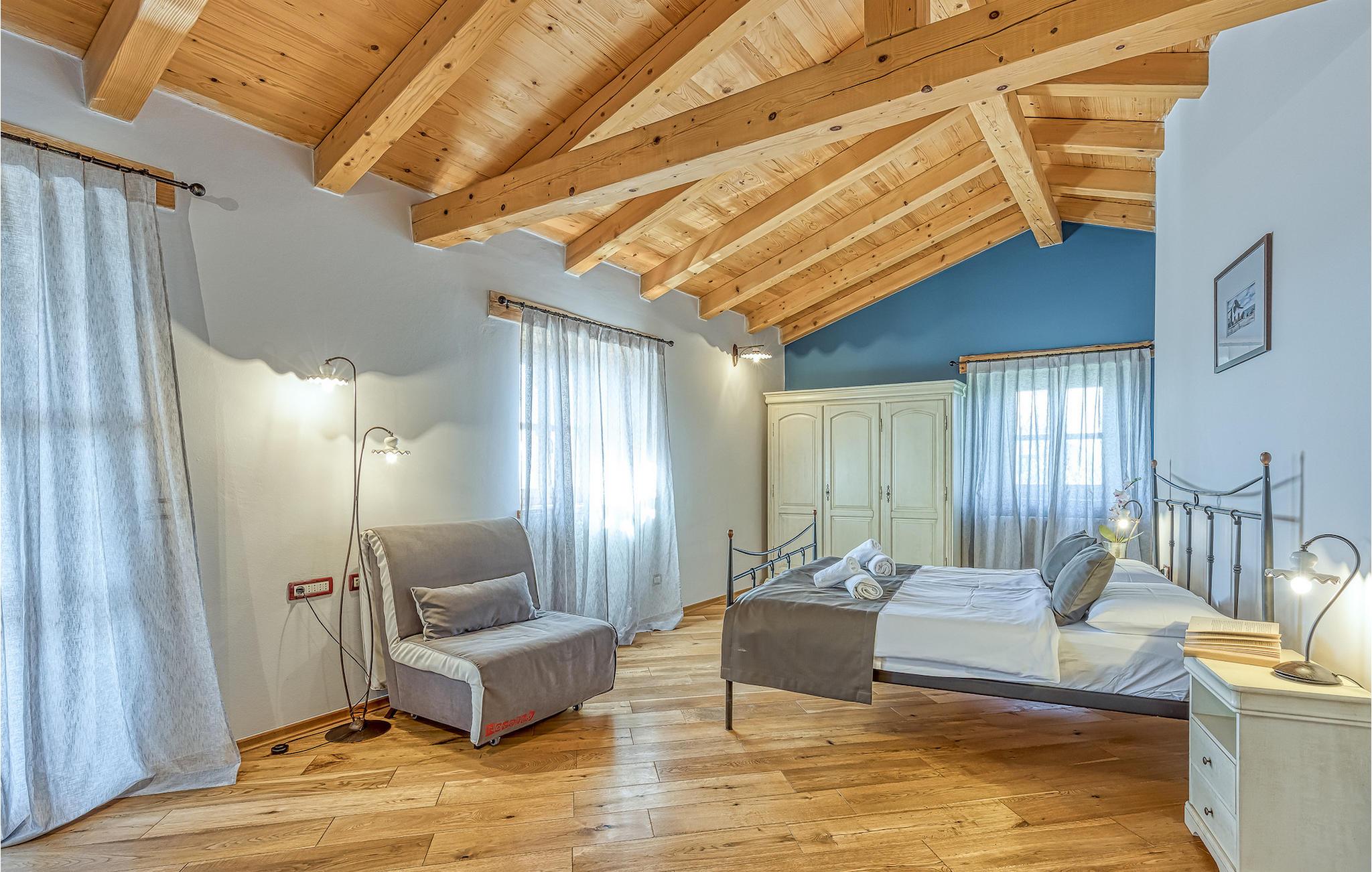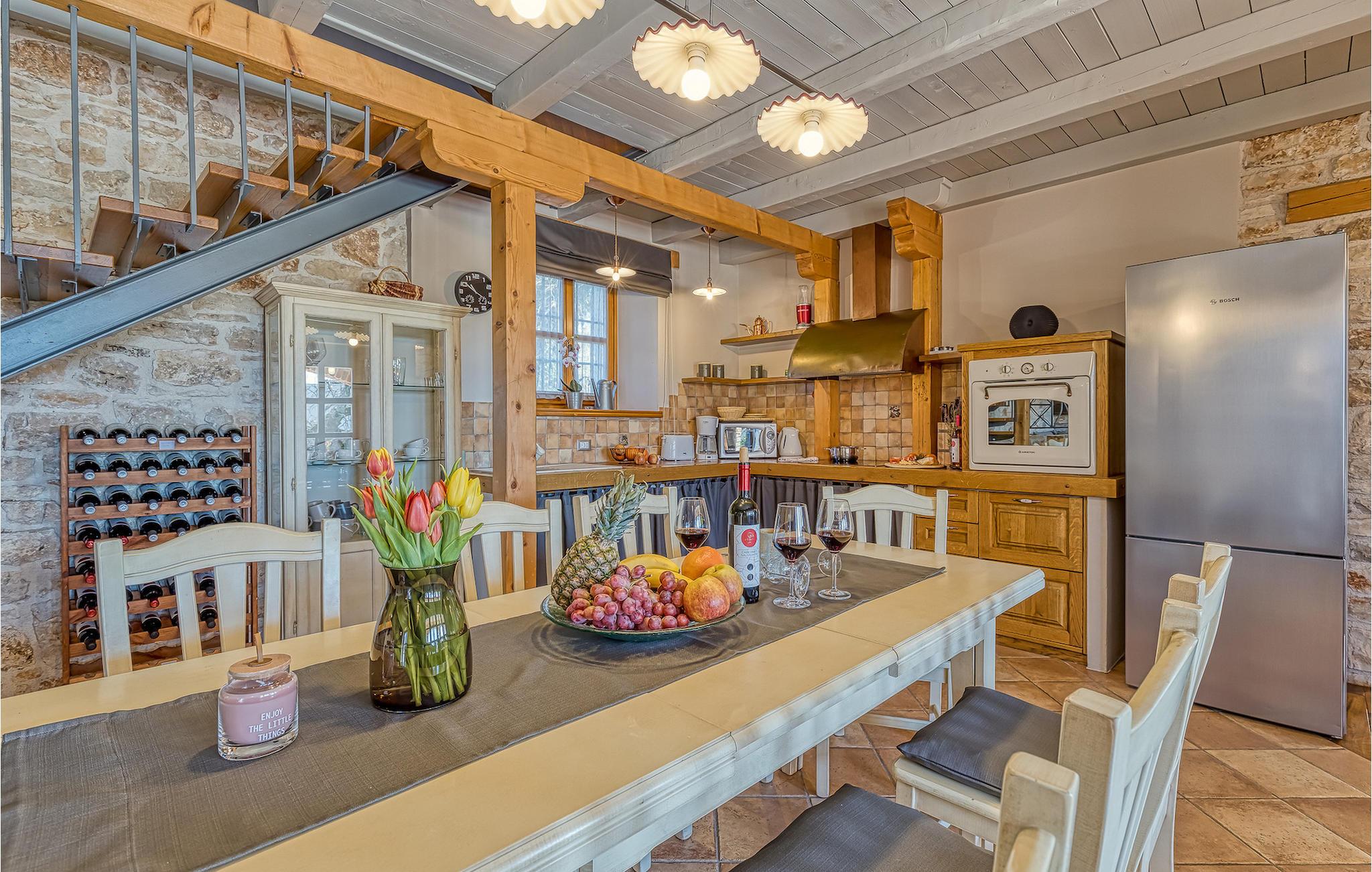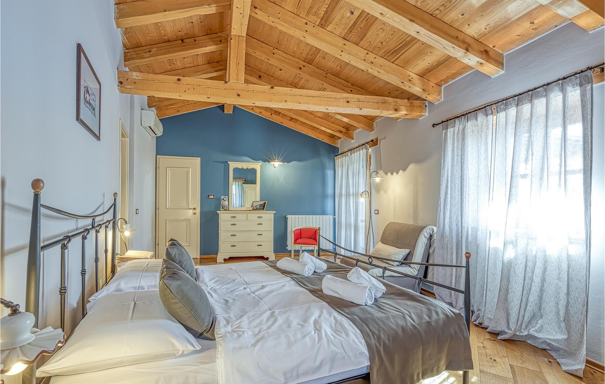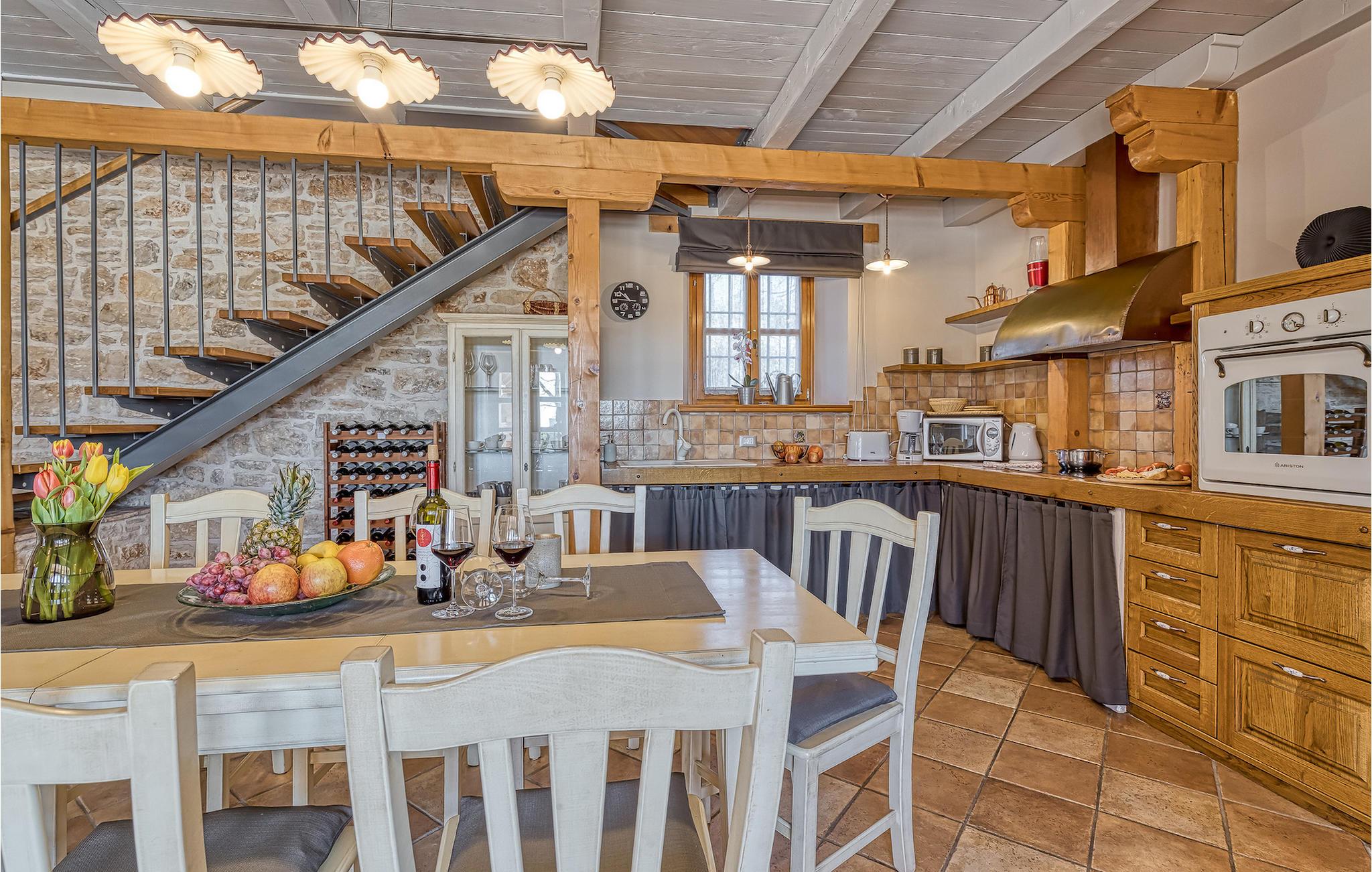 Villa Graziella er en traditionel istrisk ædelsten beliggende i landsbyen Baderna nær Porec. Huset er bygget i 1905 og totalrenoveret i 2008, uden at miste sin karakter. Du vil blive imponeret over det ydre med en omhyggeligt plejet have og den store pool. Et perfekt landskab til at få en kølig drink, ligge på en af solsengene og se børnene lege. Den overdækkede udendørs spiseplads med grill får dig straks til at drømme om frisklavede lækre måltider. Men lad os gå indenfor... Stueetagen har en hyggelig stue med pejs og et køkken med spiseplads til op til 8 gæster. Alt er holdt i en meget varm og rustik stil - giver dig en følelse af hjem. På samme etage finder du et soveværelse med eget badeværelse. Trætrapper fører til de 3 hyggelige soveværelser med moderne ensuite badeværelser på første sal. Et af soveværelserne har udgang til den smukke altan, hvor du kan nyde en stille morgenkaffe eller blot slappe af, mens du læser din yndlingsbog. Baderna er en charmerende istrisk, malerisk landsby nær byen Porec, Adriaterhavets berømte og prisbelønnede mesterperle. Baderna ligger 10 kilometer fra havet, isoleret fra byernes sus, samtidig med at det er strategisk beliggende nær krydset mellem de vigtigste turistruter i Istrien. Alt hvad du behøver er der: posthus, en købmand, en tankstation og et par restauranter. Istriske turistperler: Opatija, Rovinj, Pula, Trieste, Koper, Piran, Portoroz, Umag og Novigrad er mindre end en time væk, så du skal kun vælge, om du vil slappe af omgivet af olivenlunde og vinmarker, nyde den istriske eno-gastronomi delikatesser, eller gå på opdagelse i omgivelserne. Huset er perfekt for familier til at nyde en fantastisk ferie i et roligt sted, men ikke for langt væk fra seværdigheder, strande og attraktioner. En bil anbefales.