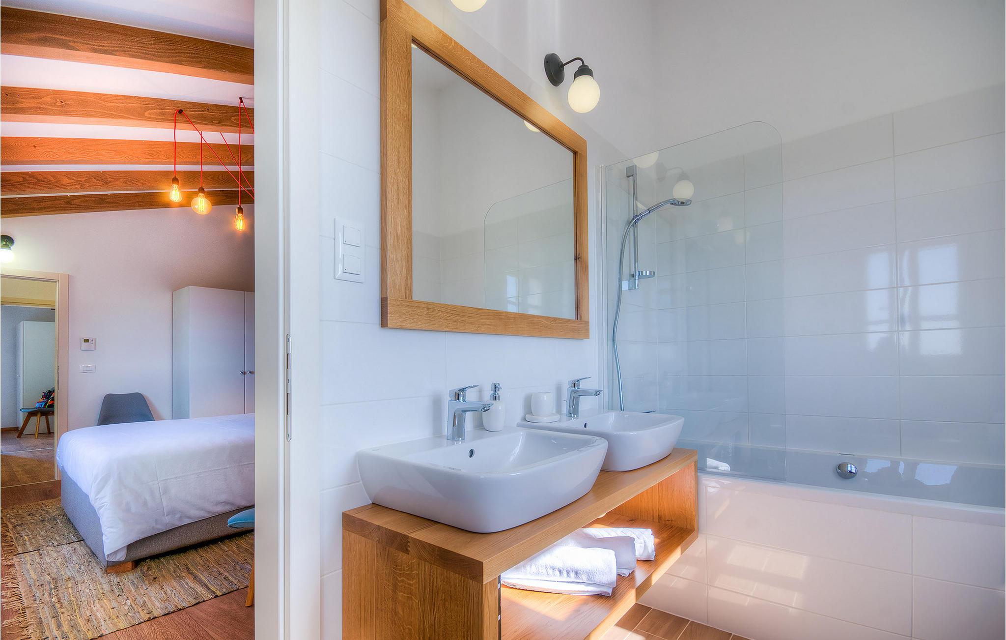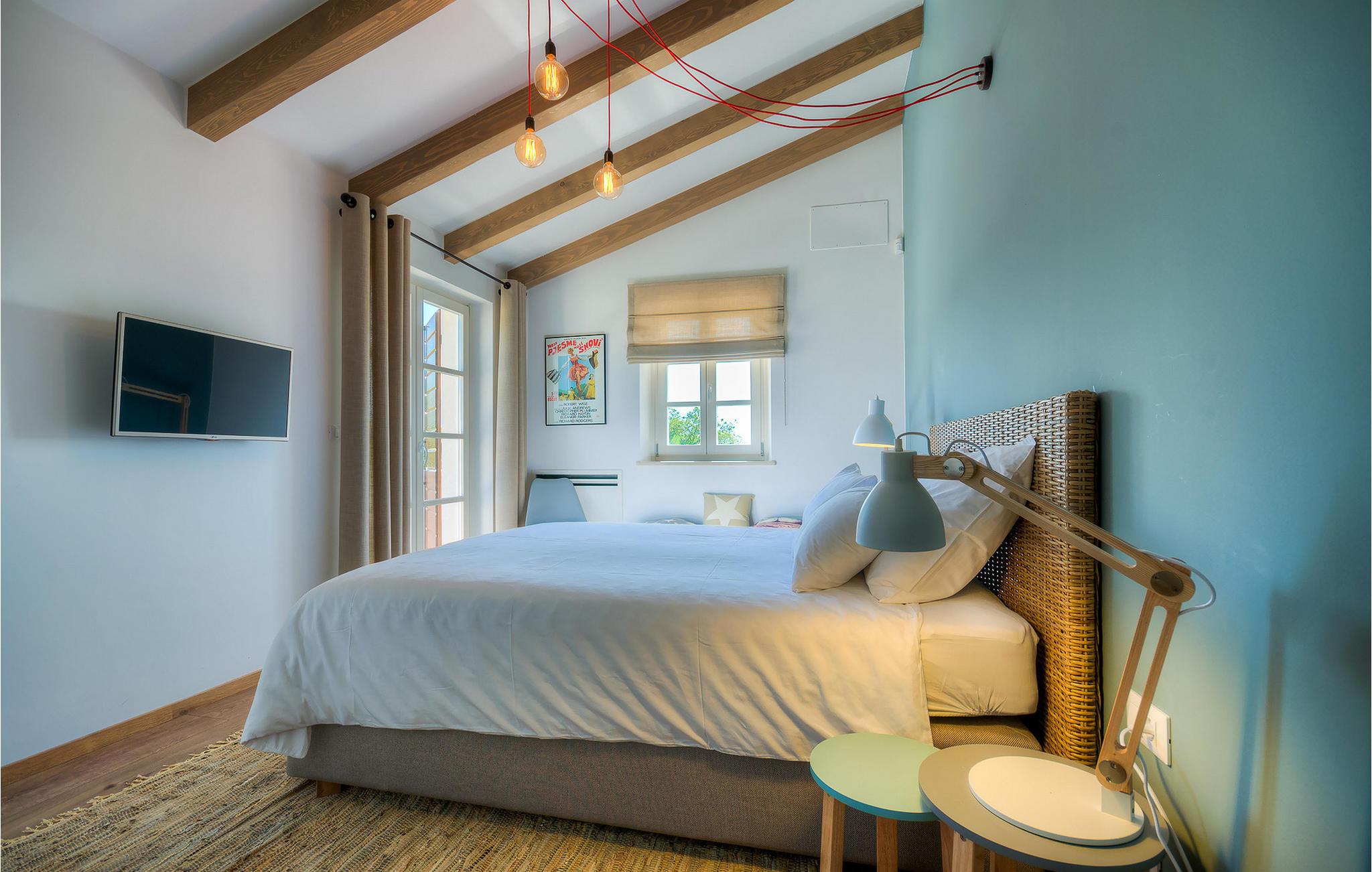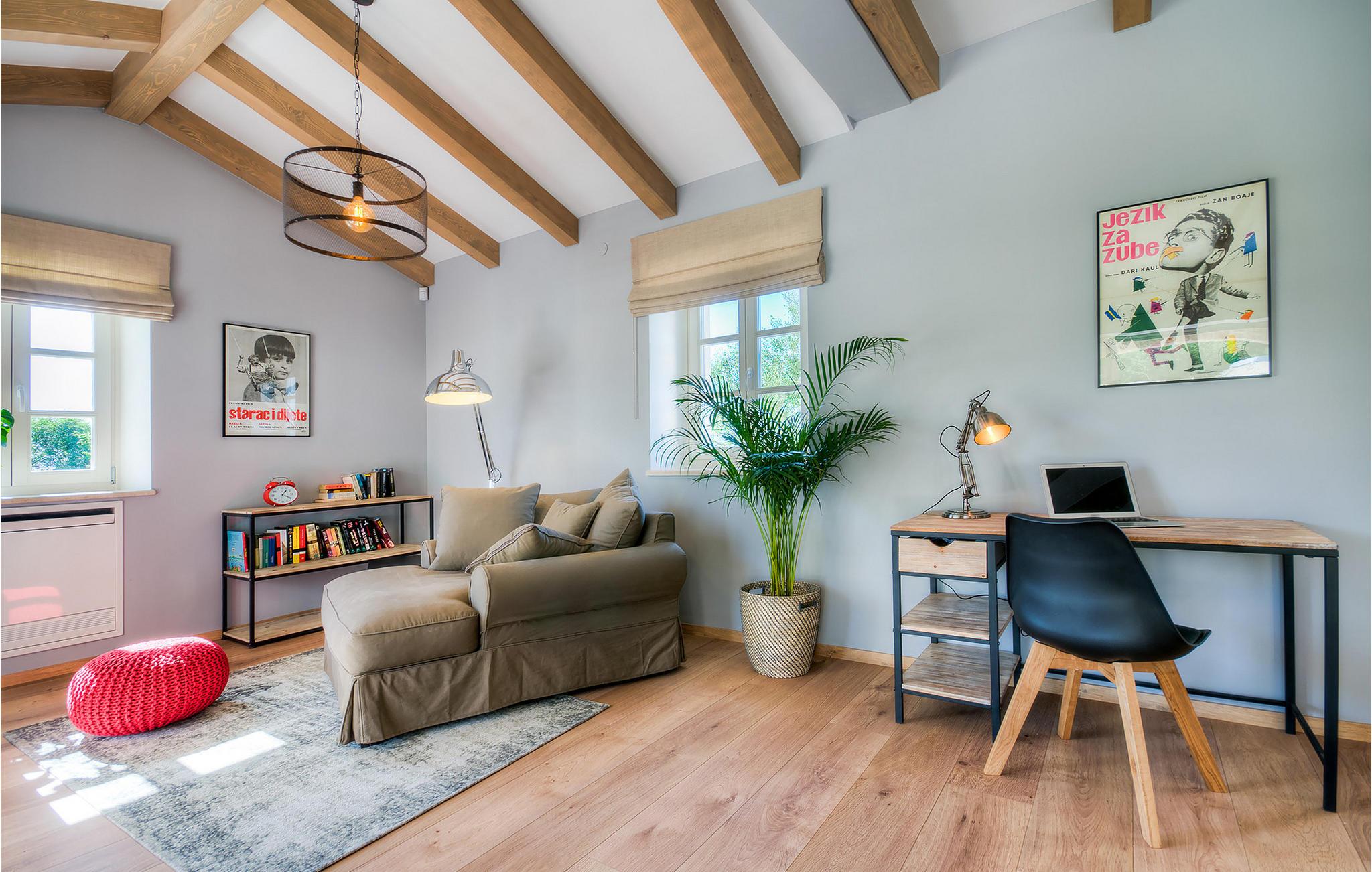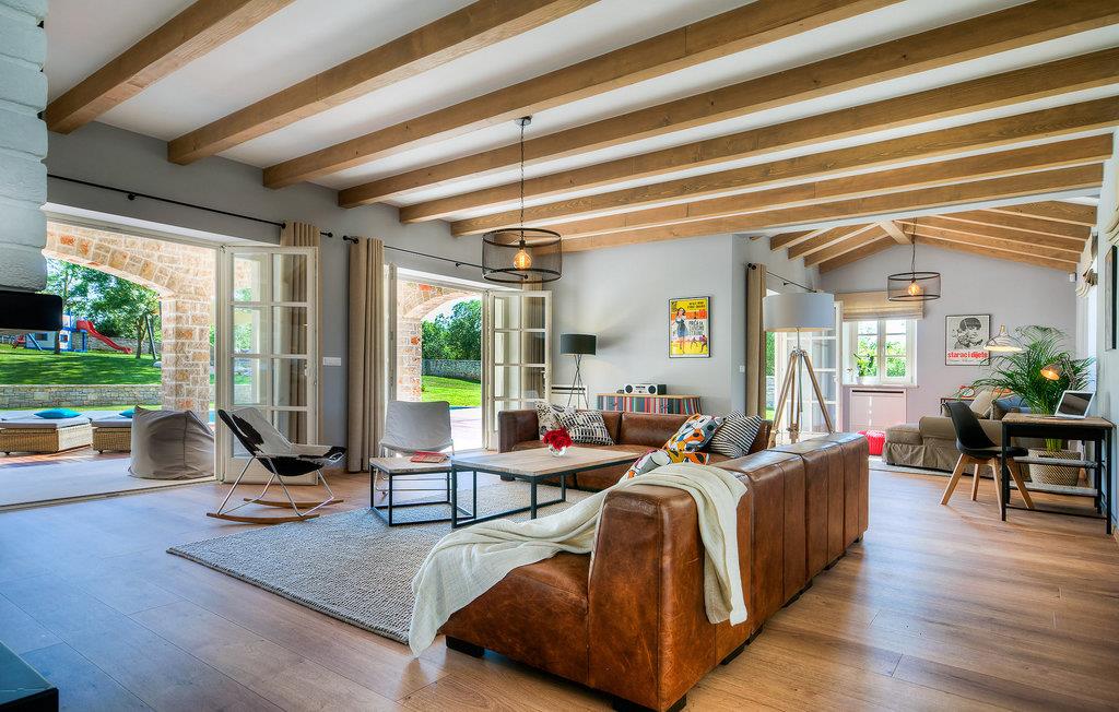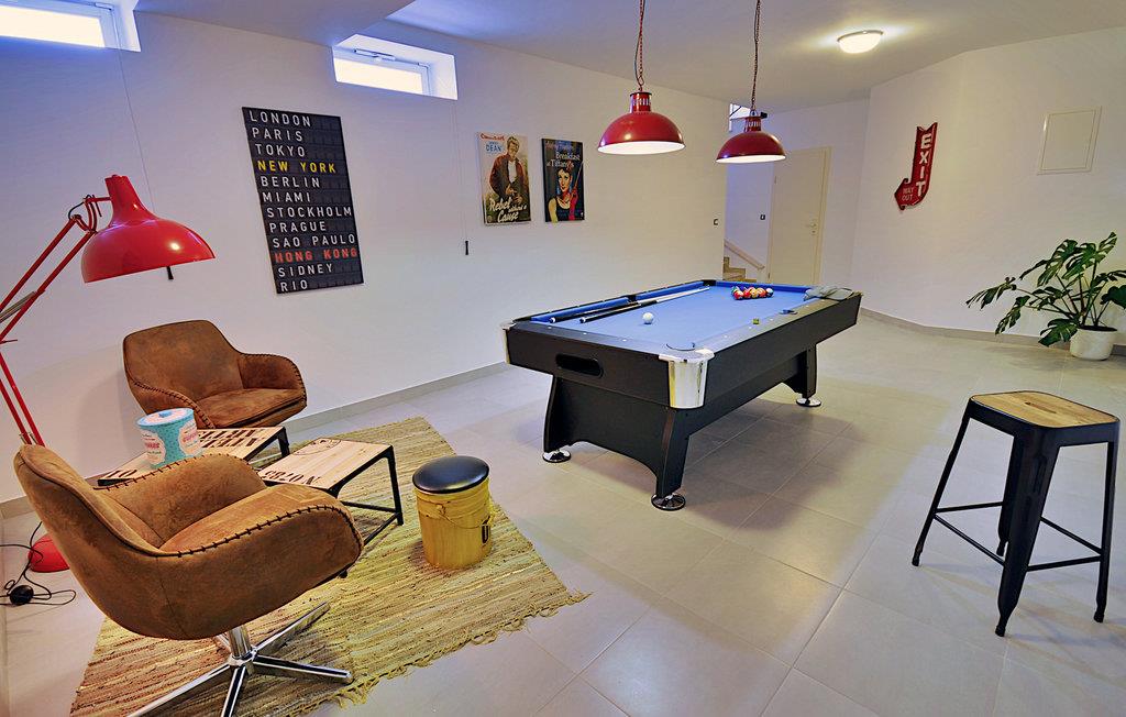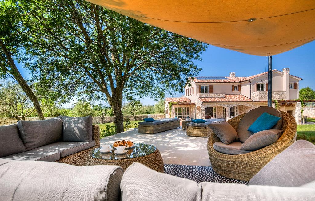 Denne charmerende nybyggede villa er det sidste hus i en lille traditionel stenhuslandsby nær Porec. Haven er stor og fuldstændig omgivet af mure og indhegnet for dit privatliv. Det har en dejlig pool, et loungeområde med udsigt over huset og en legeplads. Indgangen til poolen har brede trin, og teak terrassen er et meget behageligt område at nyde solen. Masser af naturlig skygge også fra de modne træer spredt ud i haven. Udendørsbelysningen skaber en rigtig hyggelig stemning om aftenen på den udendørs spiseplads med stort bord til 12 gæster og grill. Indenfor finder du en meget rummelig opholdsstue med åbent rum med en stor åben pejs. Fire store dobbeltdøre i glas forbinder interiøret med poolområdet udenfor. Hele huset er omhyggeligt indrettet med stor sans for detaljer og et strejf af industrielt design. Blandt andre funktioner er der de flotte træbjælker og de vintage udseende pærer. Alle de 5 soveværelser har aircondition/varme med separate kontroller. De har alle satellit-tv og eget badeværelse. To af soveværelserne kan udstyres med ekstra senge til børn, og det største har en sovesofa til to børn. I køkkenet finder du alt det moderne udstyr og masser af fint porcelænsservice og bestik. Kælderen har et poolbord og et ekstra køleskab. Wi-Fi er tilgængeligt, og du kan streame din musik til det udendørs højttalersystem fra din telefon. Plænevandingssystemet vil holde græsset pænt og grønt. Bagved er der en stor parkeringsplads med automatiserede porte, og du kan gå til en dejlig restaurant meget nærliggende.
