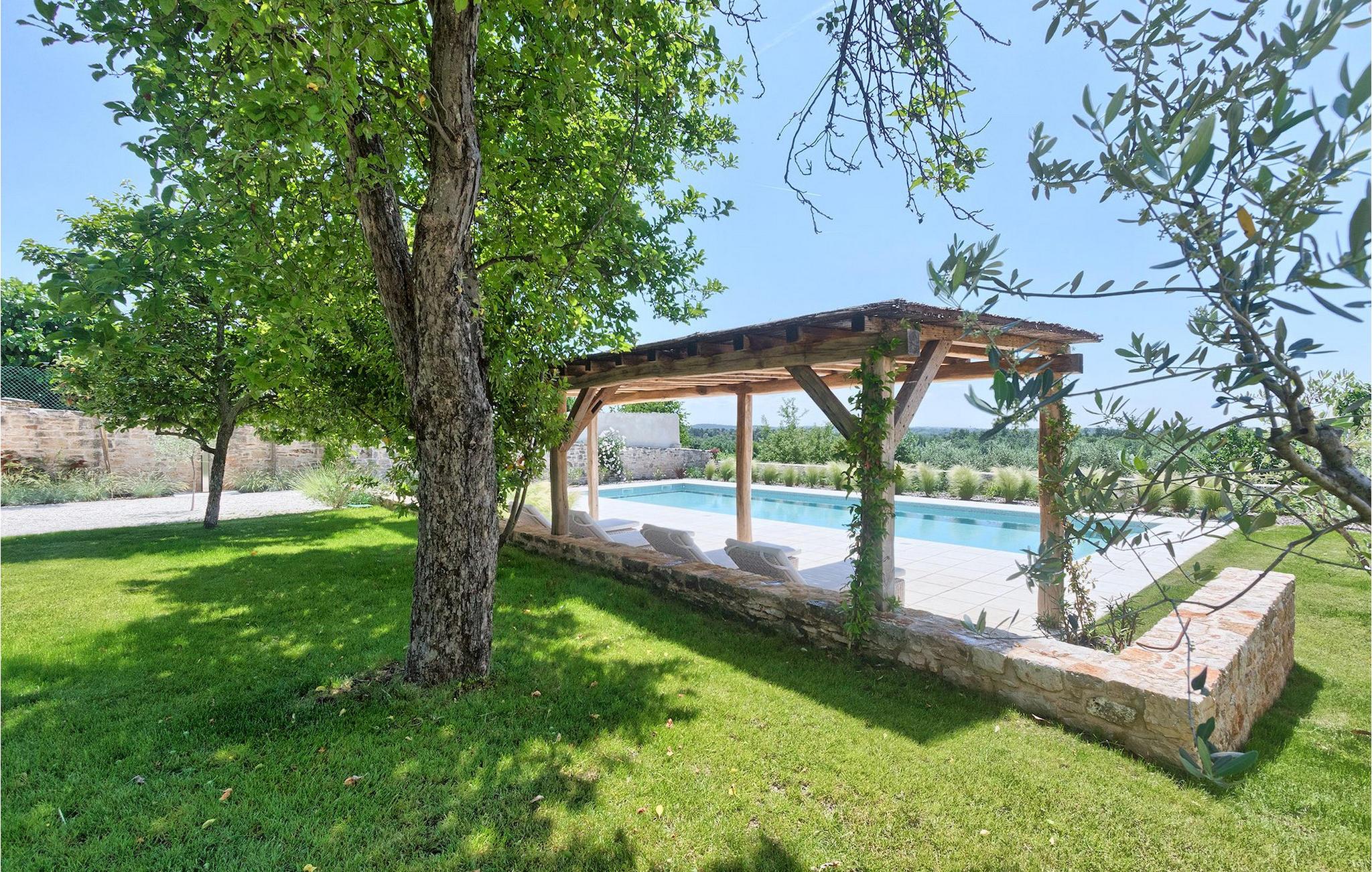 Villa Charlotta er en rummelig ejendom, med en smukt vedligeholdt have og flere gårdhaver, der byder på mange afsondrede steder at nyde. Villaen byder på en stor, næsten 200m2 stor terrasse - 150m2 er overdækket. En overdækket terrasse med højkvalitets loungemøbler og en grill er ideel til at nyde udendørs middage. Overdådige grønne grunde omgiver den store pool. Liggestolene er spredt ud over poolterrassen og under det overdækkede skyggeområde, og tilbyder et afsondret sted for ultimativ afslapning, mens du solbader eller svømmer i poolen, med udsigt over Istriens fascinerende stedsegrønne natur. Der er en udendørs bruser for din komfort og bekvemt også et køleskab til drinks ved siden af poolen. Alt dette gør det til et ideelt sted for familier, større eller endda mindre grupper. Villa Charlotta har sikret privat parkering til 4 biler og er også udstyret med Wi-Fi, for din bekvemmelighed.
