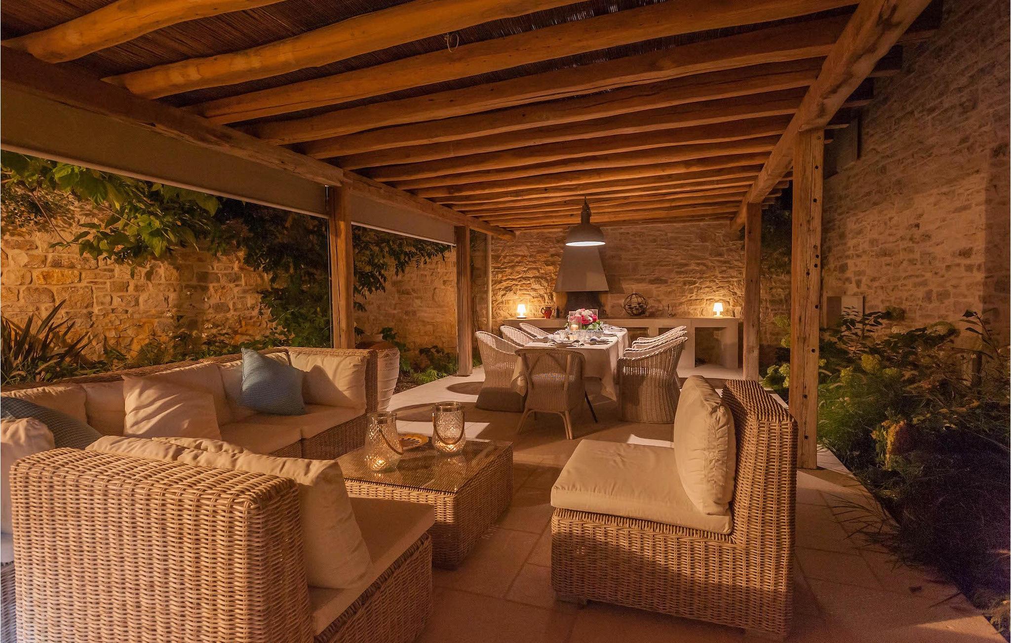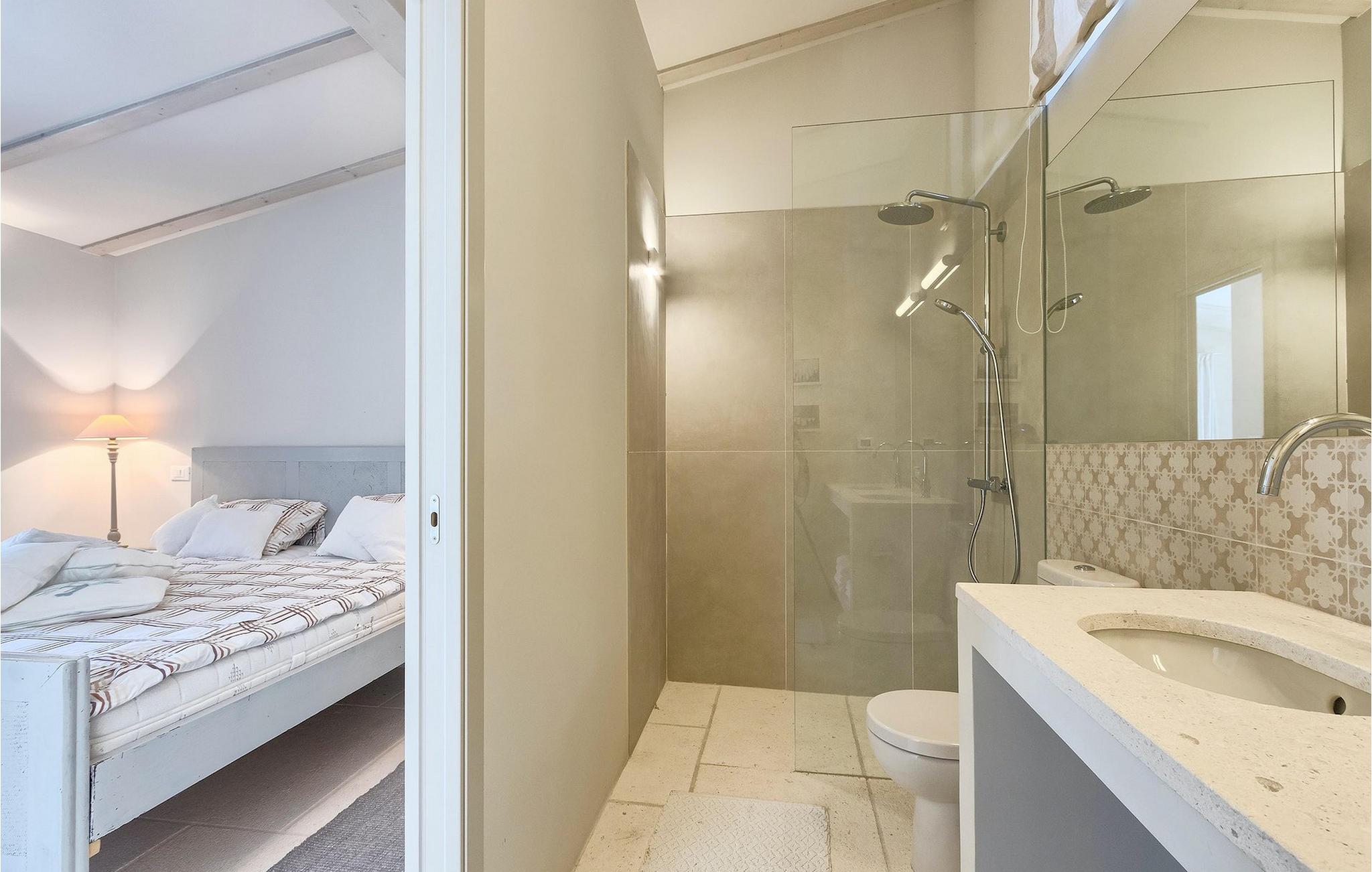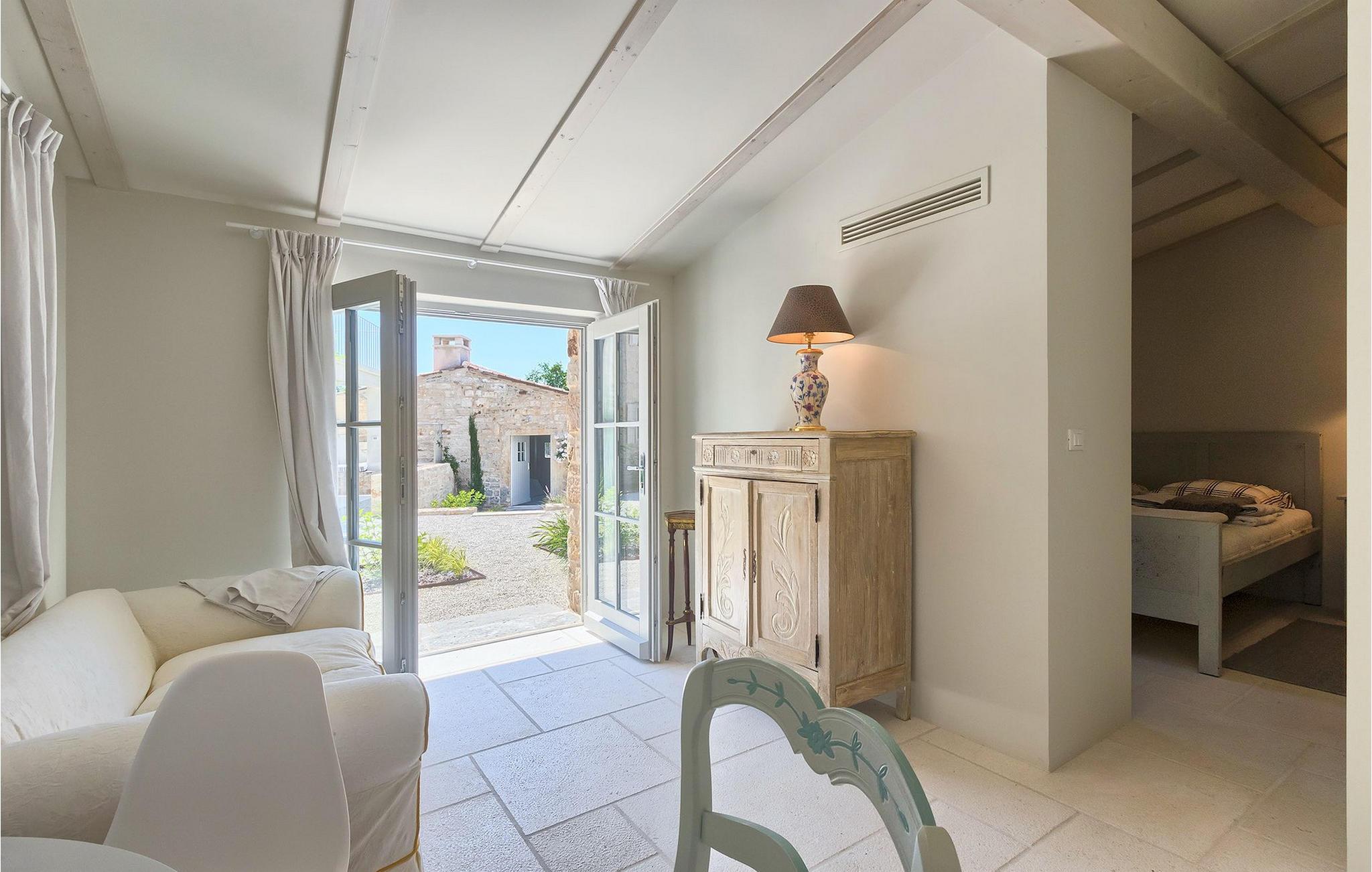 Hus nr. 4 er faktisk poolhuset - også smukt renoveret, og tilbyder en sovesofa til en gæst, en toilet, og direkte udgang til poolområdet.