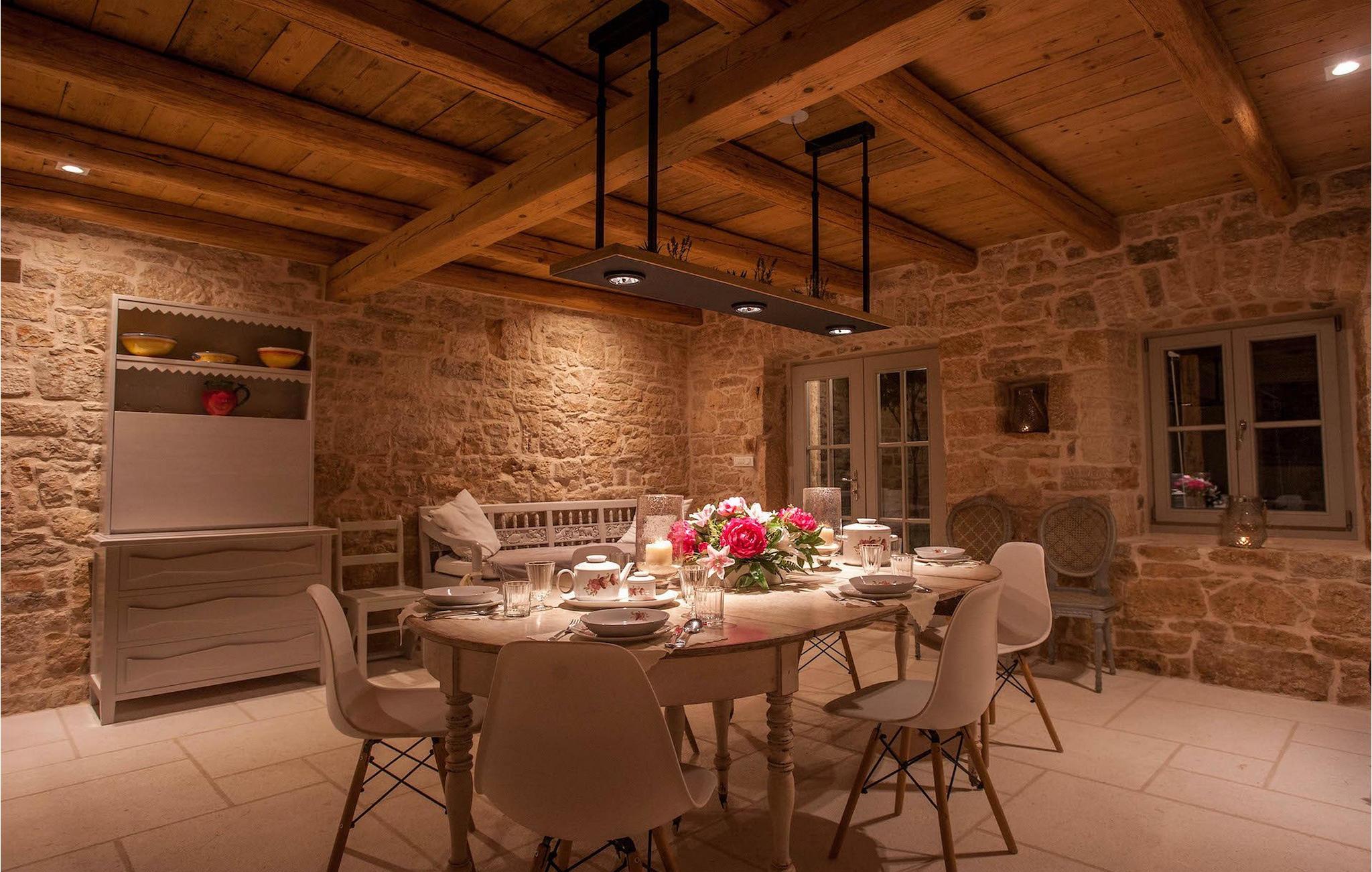 Villa Charlotta er bestemt et sted for en særlig form for ferie. Det er en luksuriøst renoveret gammel sten ejendom, beliggende i det rolige og drømmende miljø i det centrale Istrien, midt i en lille landsby. Den traditionelle istriske stenmur omkring ejendommen sikrer afsondrethed og privatliv. Ejendommen blev renoveret med håndværk og særlig sans for detaljer, kun ved at bruge materialer af høj kvalitet, hvilket sørgede for, at den oprindelige traditionelle arkitektoniske stil i husene ikke blev kompromitteret. Interiøret var indrettet med en masse stil, med en fusion af vintage og moderne detaljer.