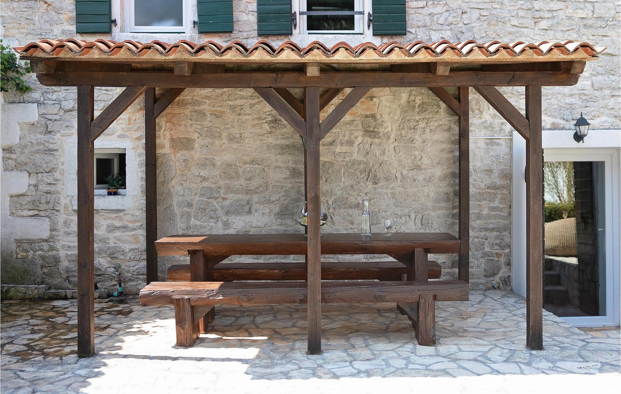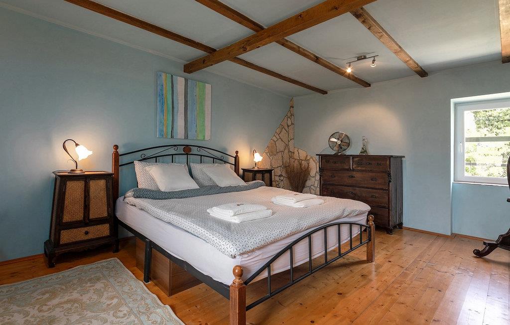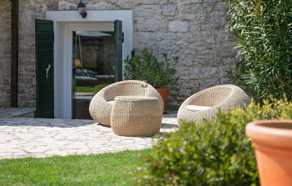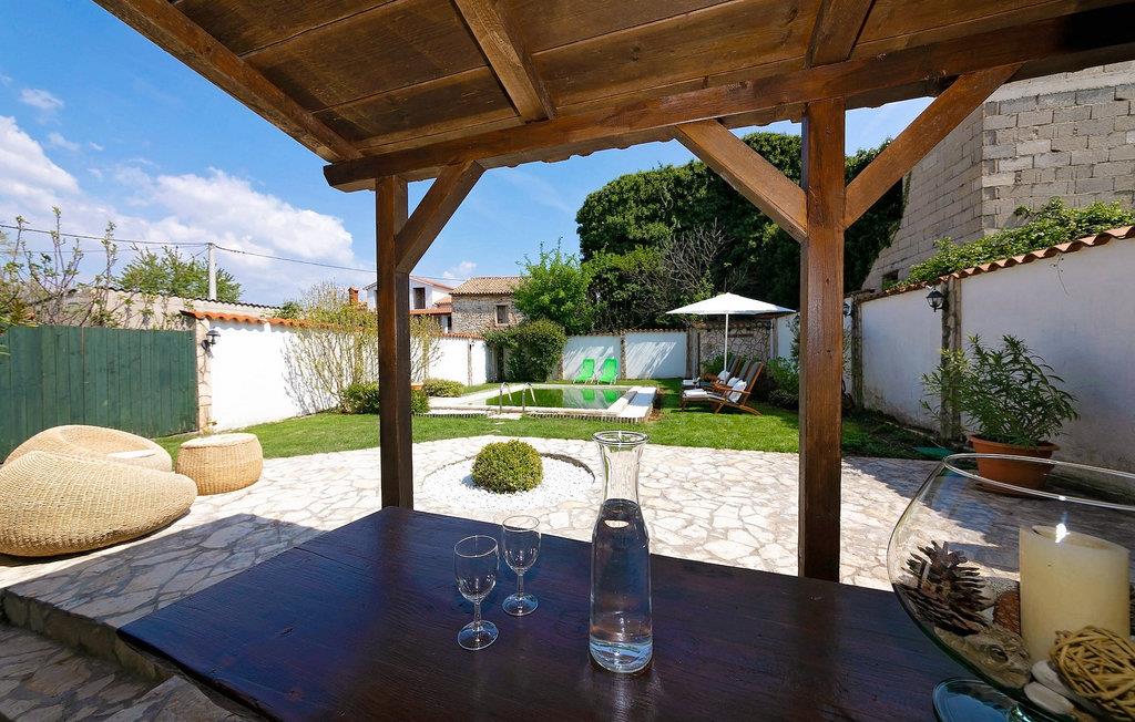 Selve villaen er indrettet i traditionel istrisk stil og trædetaljer kombineret med lyse toner skaber en hjemlig følelse.