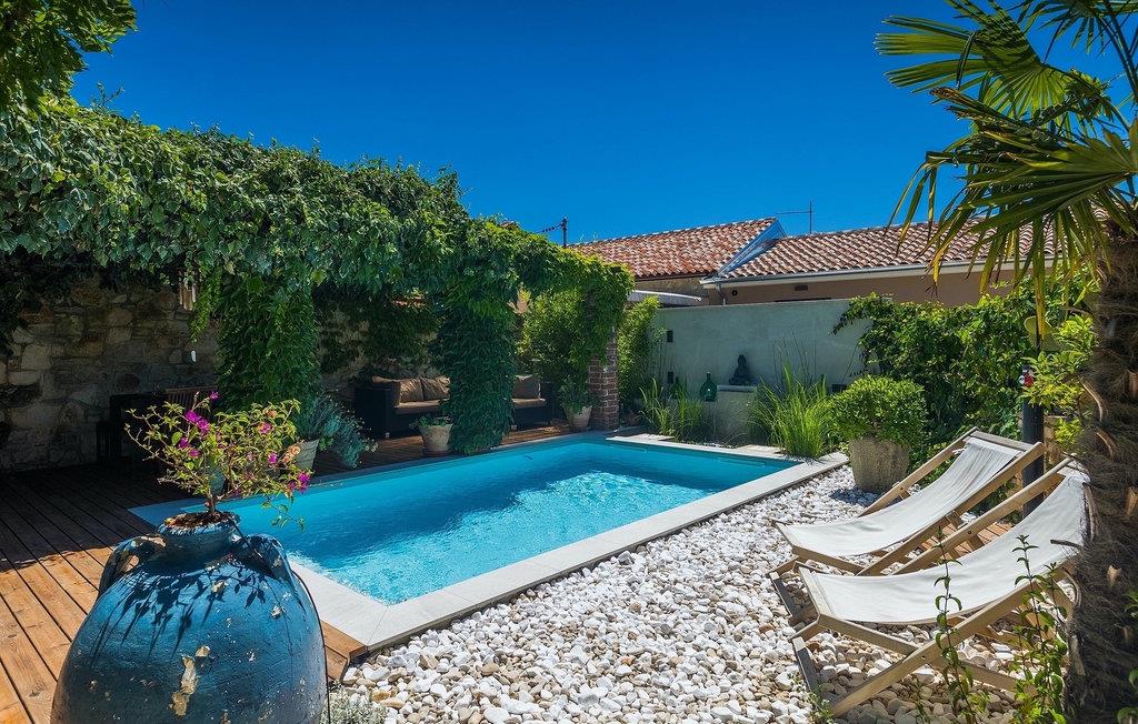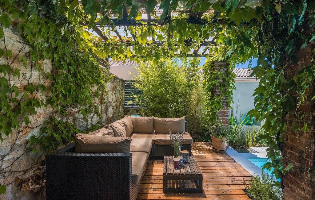 Udendørsområdet omfatter en fuldstændig lukket grøn have med en privat swimmingpool, hvor du kan slappe af i den naturlige skygge eller nyde solen og indånde duften af middelhavsplanter.
