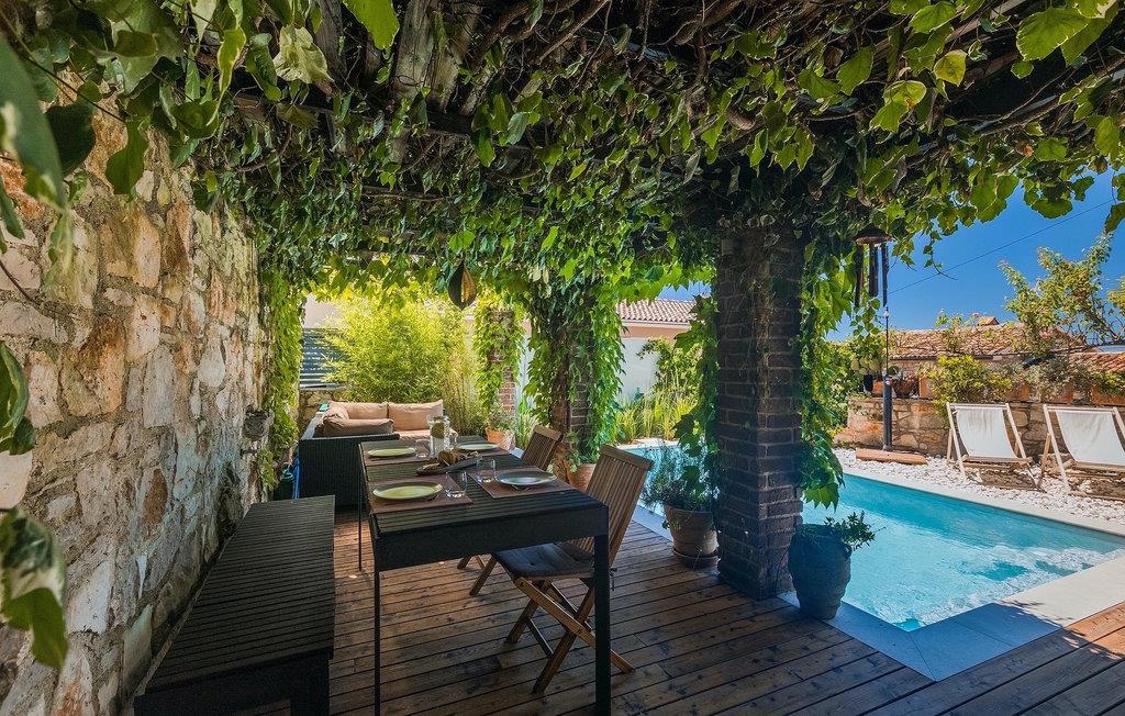 Smuk og renoveret sten Villa Mosaici tilbyder en ideel ferie for venner eller familie, der gerne vil tilbringe den i en unik atmosfære af naturen. Villa Mosaici er bygget i traditionel istrisk stil og kan rumme op til 5 gæster. Da der under renoveringen blev opdaget mosaikker, blev disse bevaret, og villaen fik sit navn. Til din rådighed er 2 soveværelser, 1 badeværelse, stue med sovesofa og fuldt udstyret køkken med spiseplads.