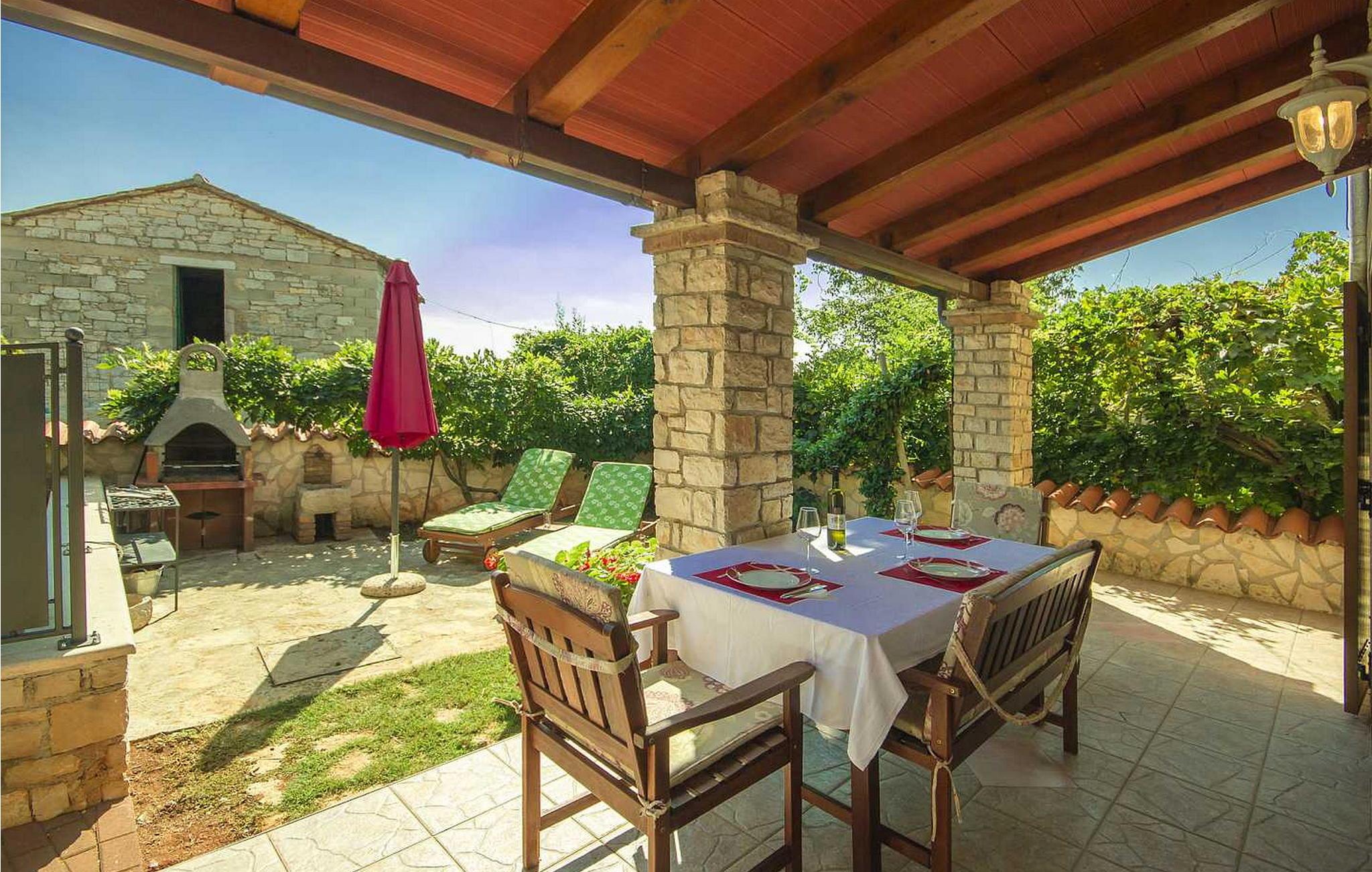 Oplev Casa Nadija, et charmerende istrisk stenhus i Tadini, nær Kastelir og kun 9 km fra den fantastiske kyst. Denne dejlige villa blev oprindeligt bygget i 1900 og omhyggeligt renoveret i 2008. Det tilbyder en unik blanding af historisk karakter og moderne komfort. På en privat 100 m² stor grund finder du en overdækket terrasse perfekt til afslapning med komfortable siddepladser, en grill til uforglemmelige måltider under åben himmel, liggestole til solbadning og en parasol for ekstra komfort. Du kan også bruge to cykler til at udforske de naturskønne omgivelser og to parkeringspladser for din bekvemmelighed. Kastelir tilbyder med sin rige historie og smukke landskab et vidunderligt udgangspunkt for dine ferieeventyr. Fordyb dig i Casa Nadijas rolige charme og oplev det bedste fra livet i Istrien. Bemærk venligst, at denne ejendom ikke accepterer ungdomsgrupper eller polterabender. En ungdomsgruppe på denne ejendom består af personer på 26 år eller derunder.