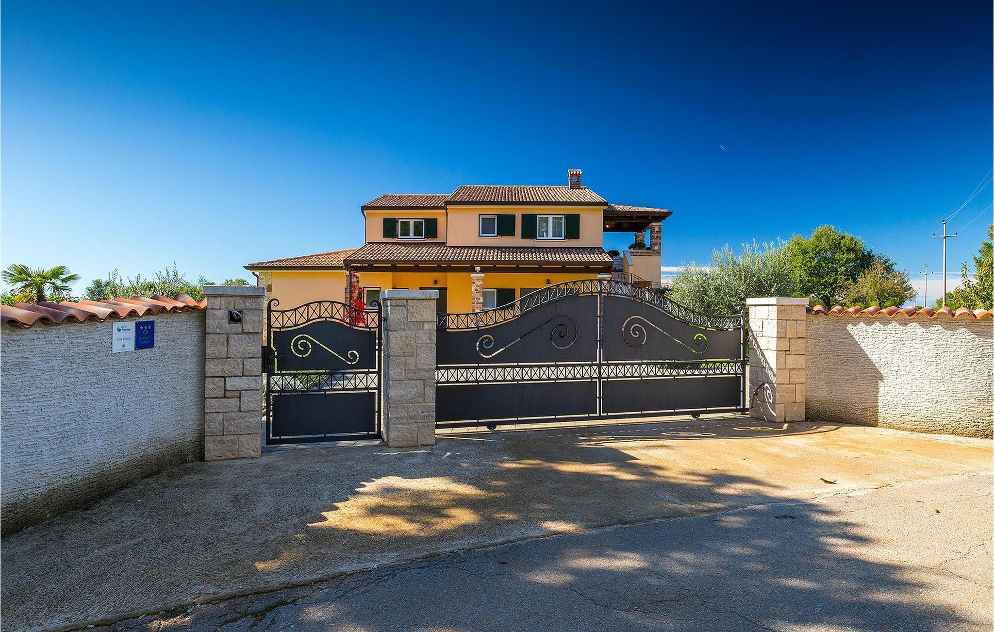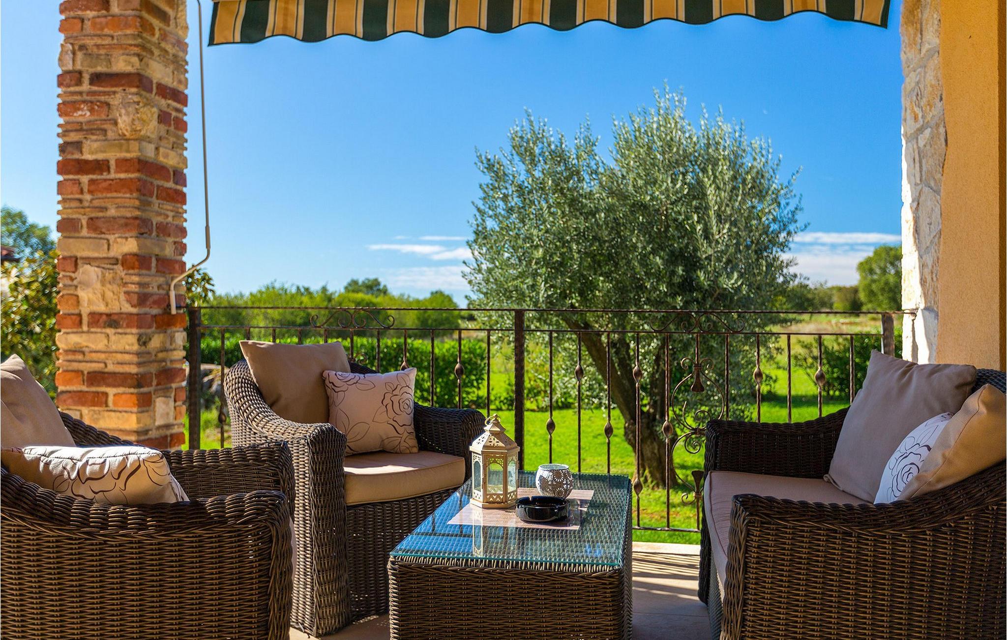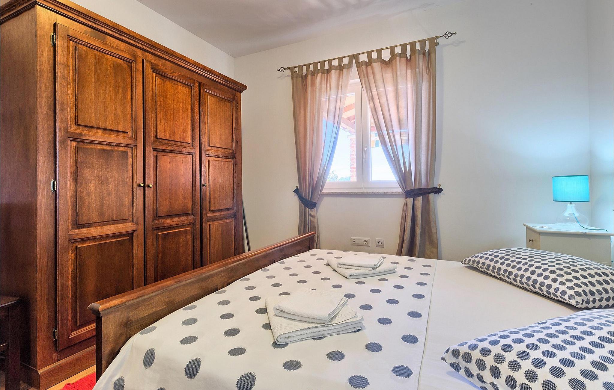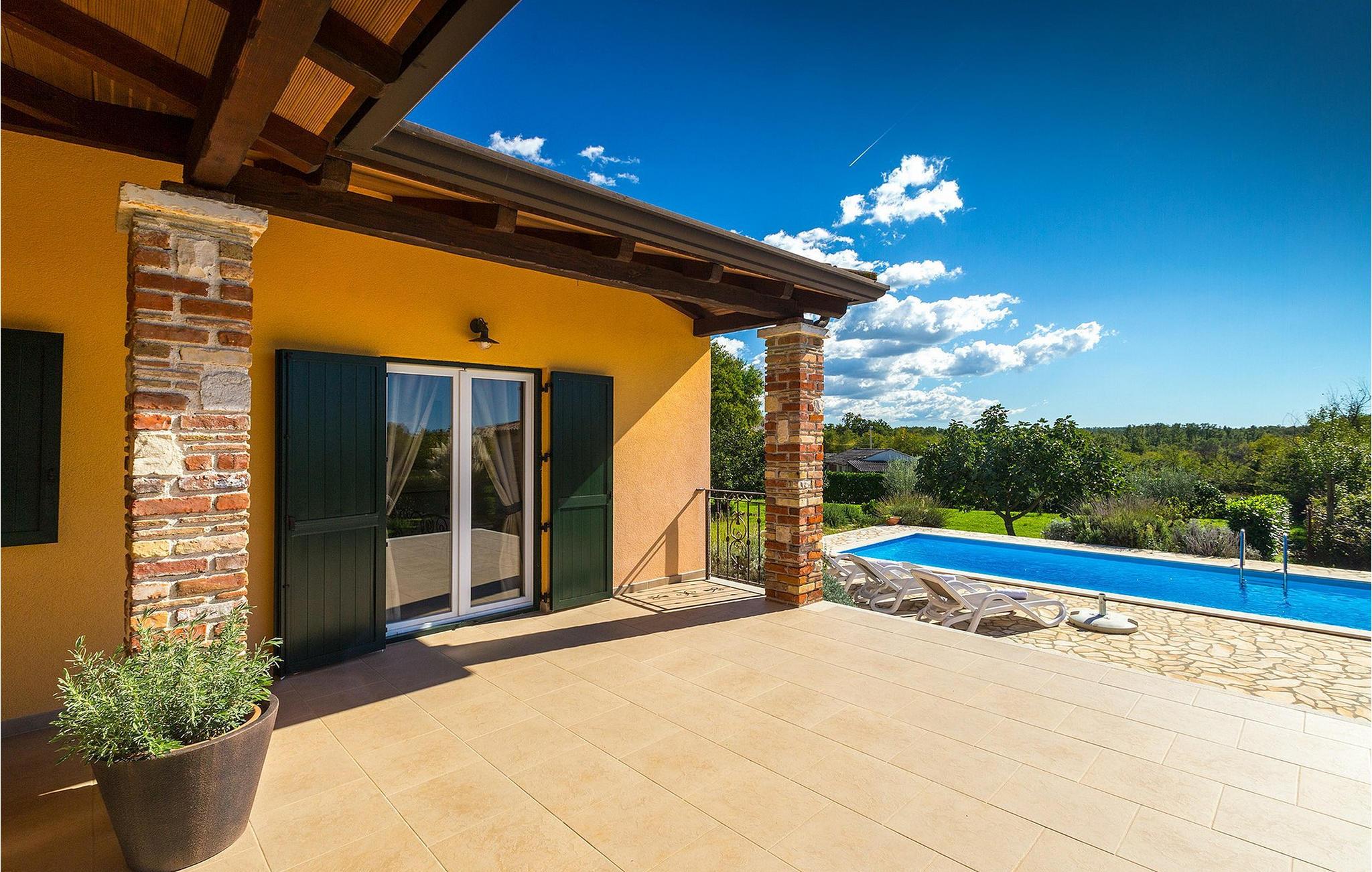 Denne ferielejlighed nær Porec ligger på første sal. Lejligheden byder på en hyggelig åben stue og spisestue med et fuldt udstyret køkken. Fra opholdsstuen har I direkte adgang til den smukke, store, grønne have, hvor I kan slappe af på en liggestol. Foran lejligheden er der en indbydende privat pool, hvor I kan forfriske jer på varme sommerdage. Udendørsområdet byder også på et veludstyret sommerkøkken med en kulgrill og en spiseplads.