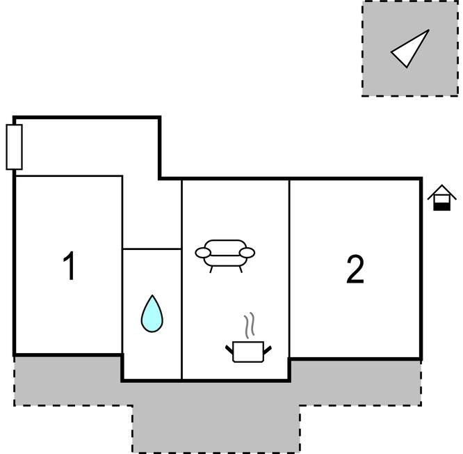 Soveværelse (nr. 1) - 2 Sovepladser. (Dobbeltseng(e)). 1 Soveplads. (Sofa, madras eller lignende).
